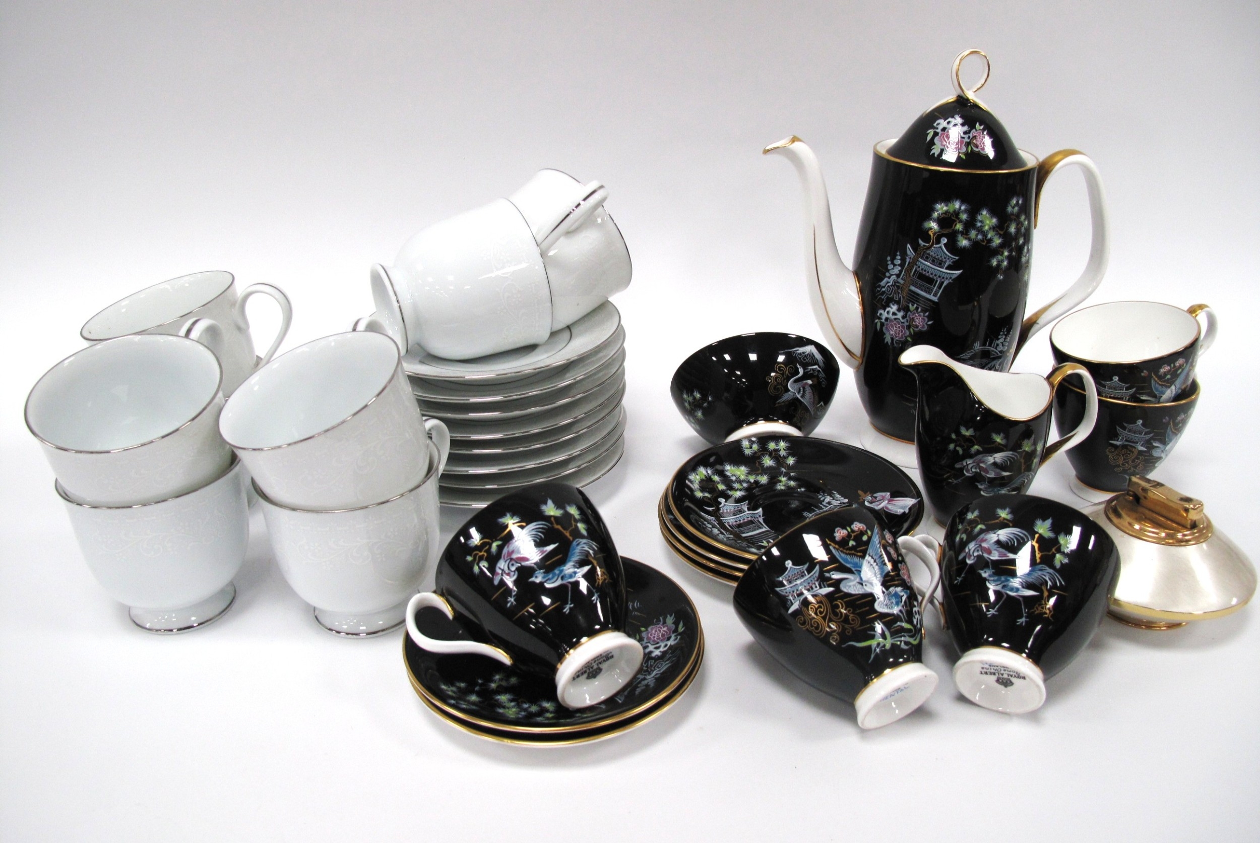 Royal Albert 'Oriental' Coffee Service of Fourteen Pieces Including Coffee Pot, Noritake 'Guenevere' teaware, Colibri lighter - One Tray.