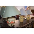 Three Table Lamps having Aztec Design Decoration - with Shades