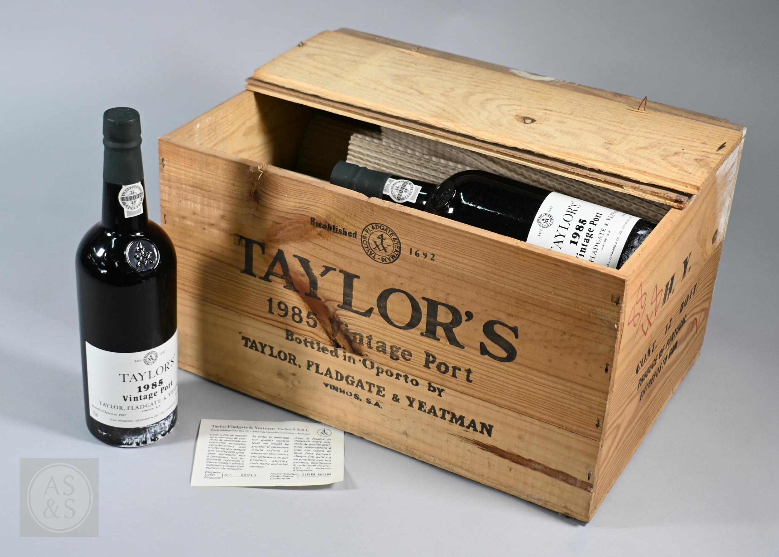Eleven bottles 1985 vintage Taylors Port, in original wooden case