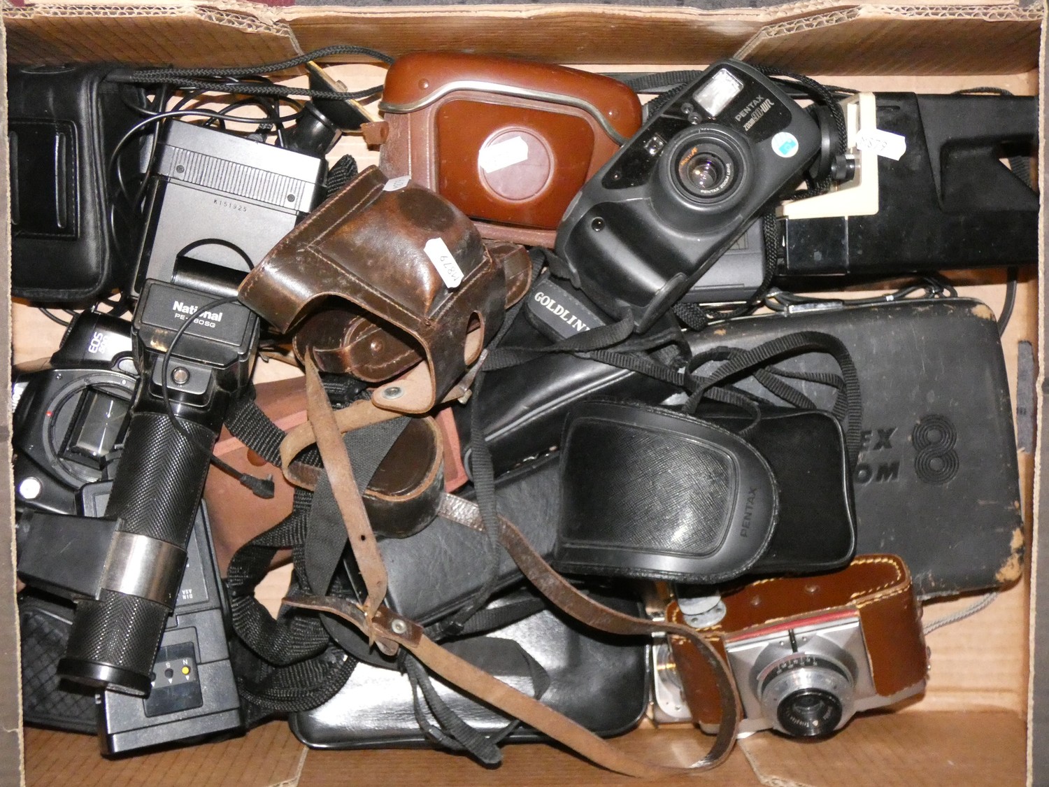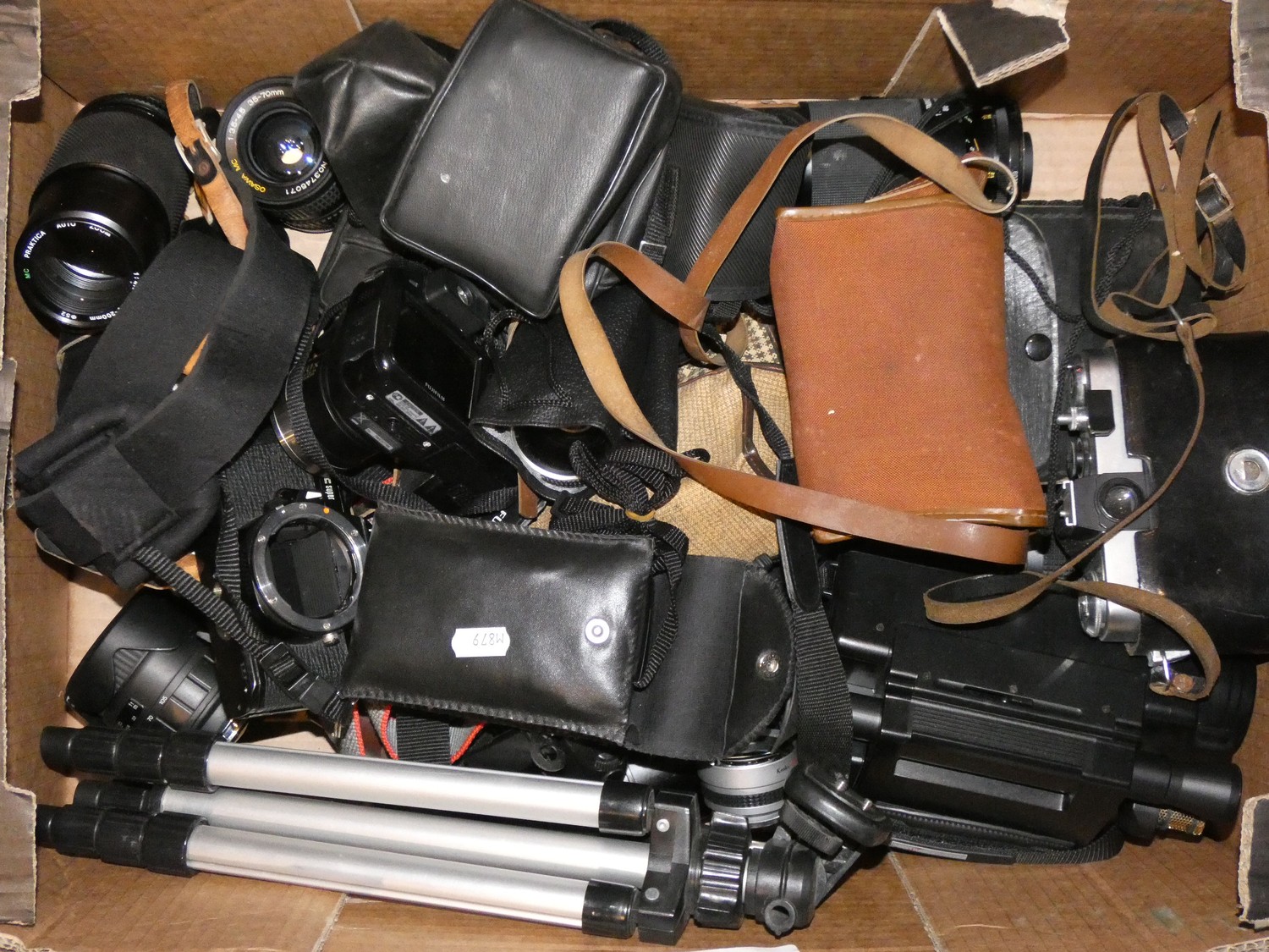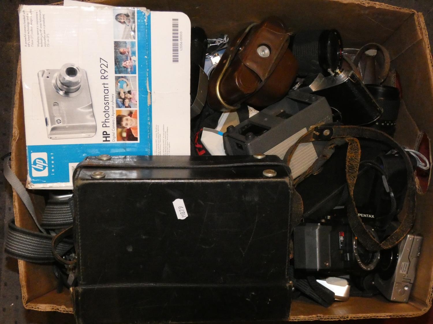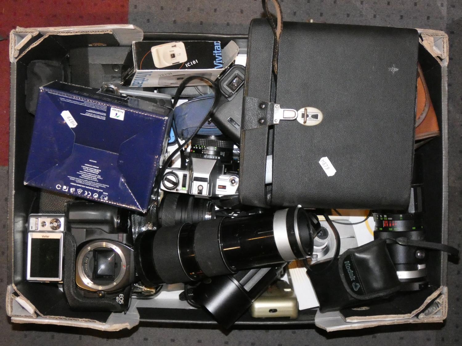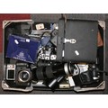 A collection of 35mm film cameras and lenses to include- Minolta X-300, Sigma 28-70mm lens, Pentax body and accessories (4)