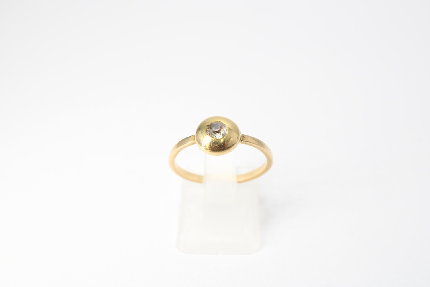 An old cut diamond single stone ring. Tests 18ct. Size O. Weight 2.50 grams