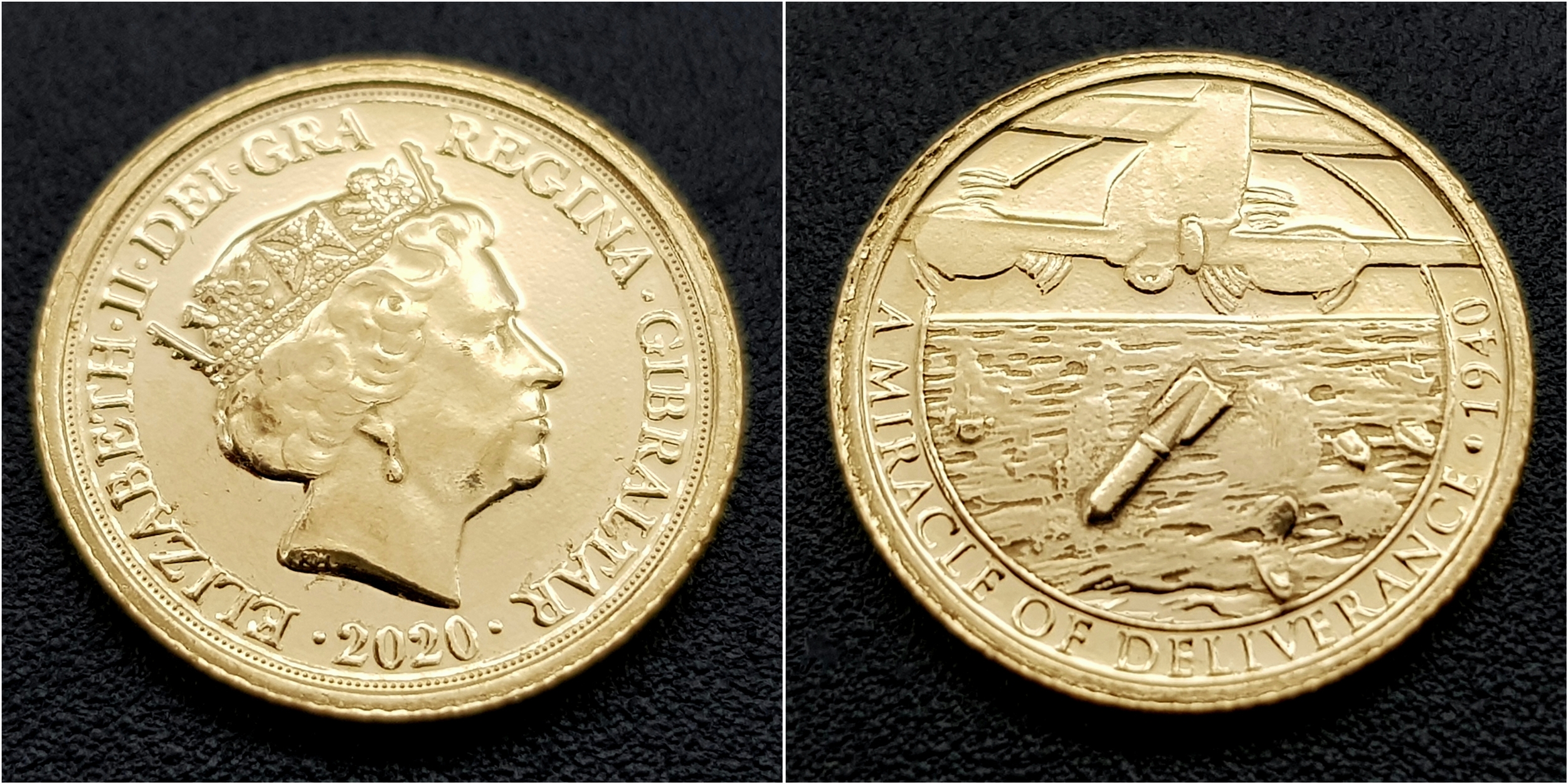 A 2020, QUEEN ELIZABETH II, GIBRALTAR, MIRACLE OF DUNKIRK, PROOF 1/4 SOVEREIGN COIN. C 8010. Ref: C 8010