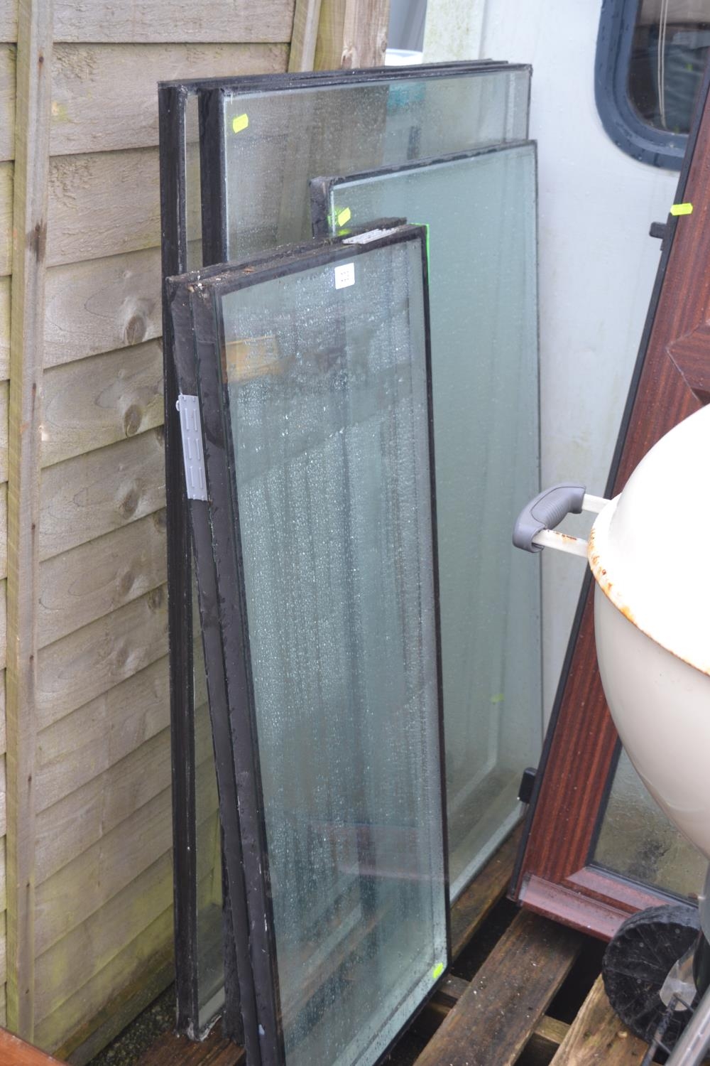 Selection of double glazed glass. 2x @ 78cm x 113cm. 2x @ 43cm x 99cm & 1 @ 60cm x 104cm