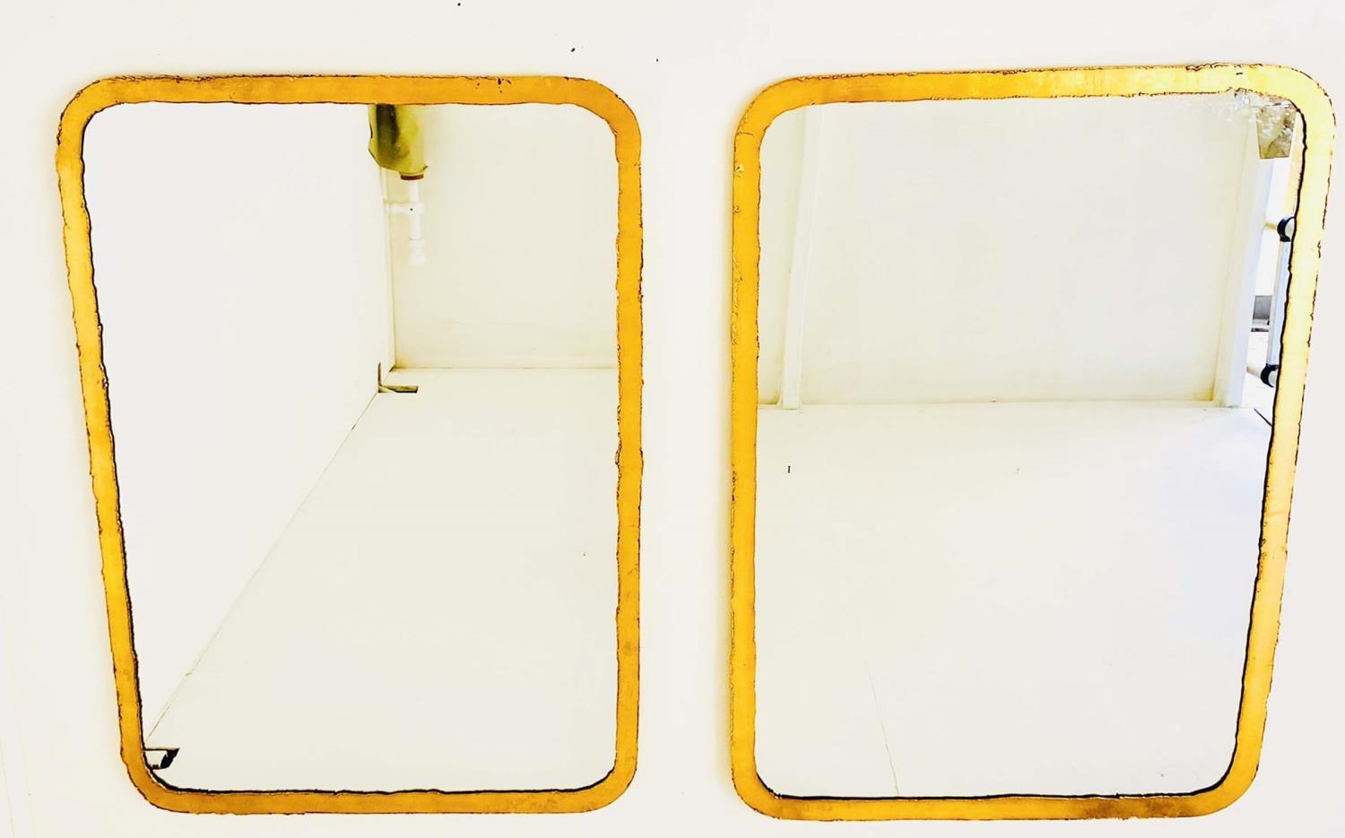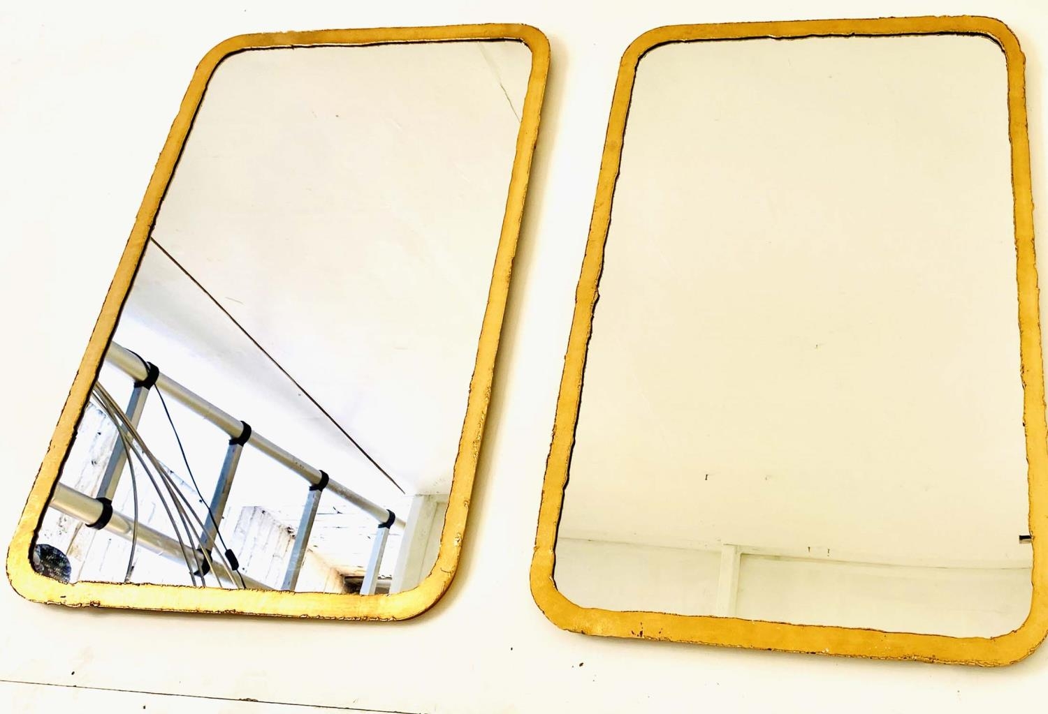 WALL MIRRORS, a pair, 97cm H x 68cm W, gilt metal frames. (2)