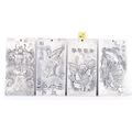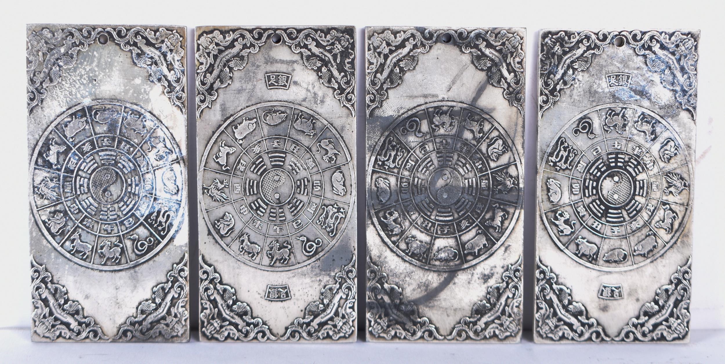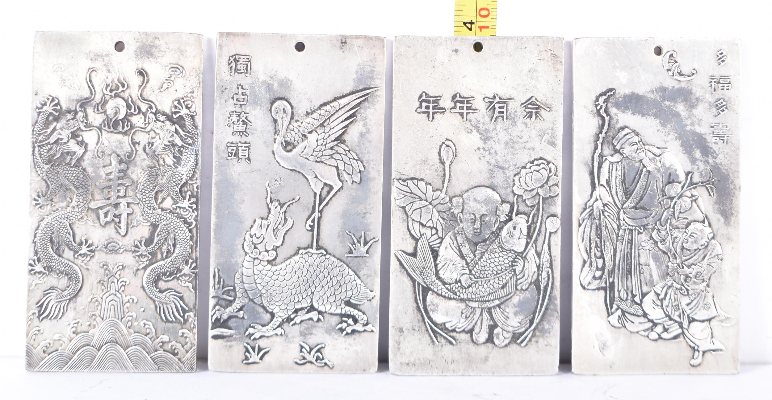 A collection of Chinese white metal embossed Plaques 10 x 5cm (4)