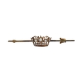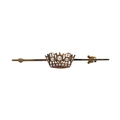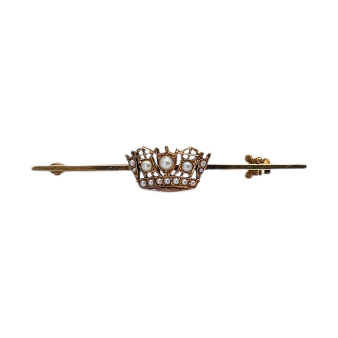 AN EARLY 20TH CENTURY 14CT GOLD AND SEED PEARL ROYAL NAVY CROWN BROOCH.
