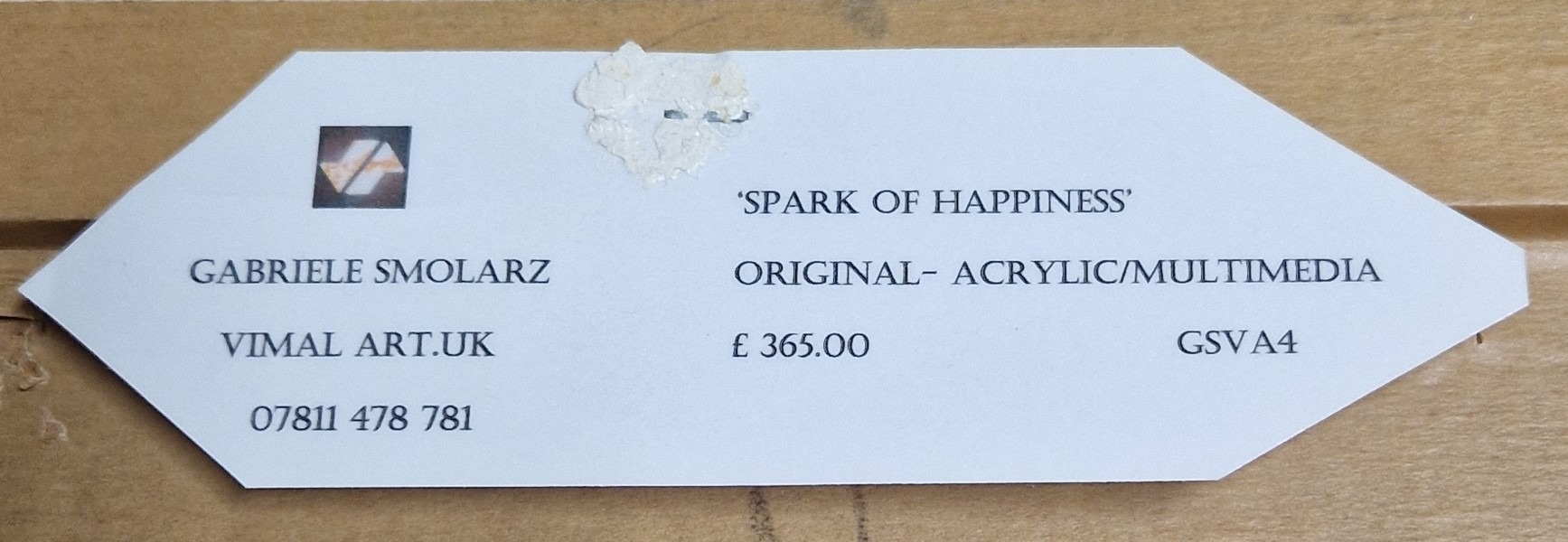 FRAMED Extra Large 46cm x 46cm ORIGINAL ACRYLIC/MULTIMEDIA PAINTING "SPARK OF HAPPINESS" GSV A4 By Artist Gabriele Smolarz VIMAL.ART.UK R.R.P. £365.00