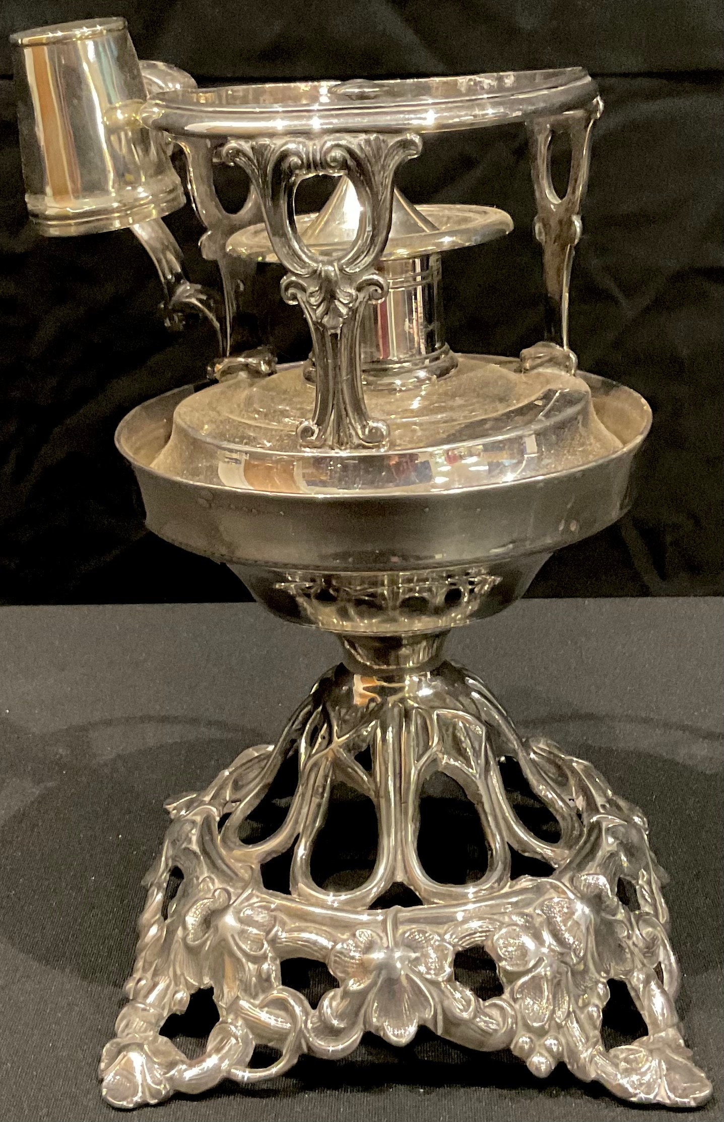 A James Dixon & Son Chamber stick, open cast foliate base, with snuffer, c.1885