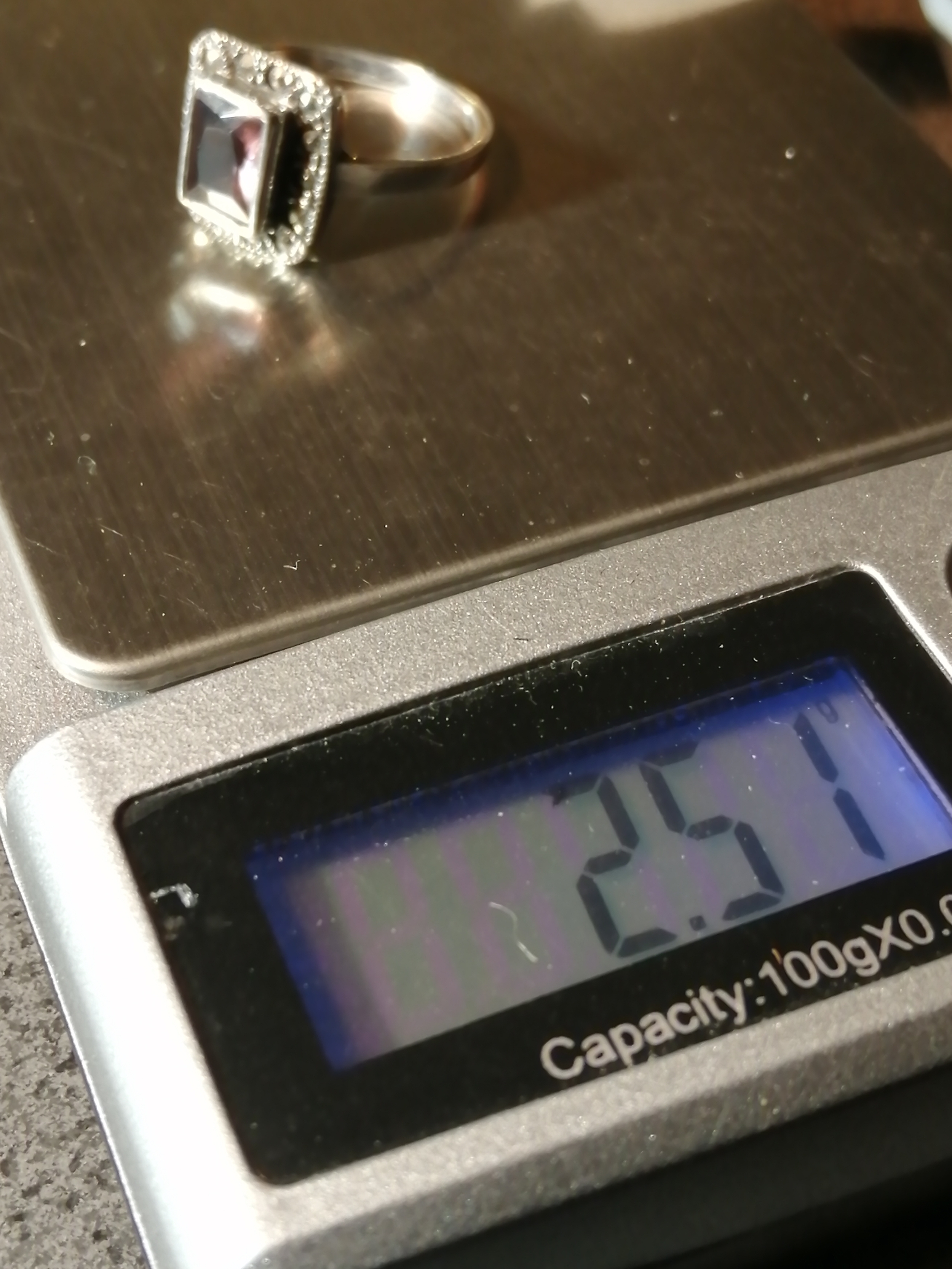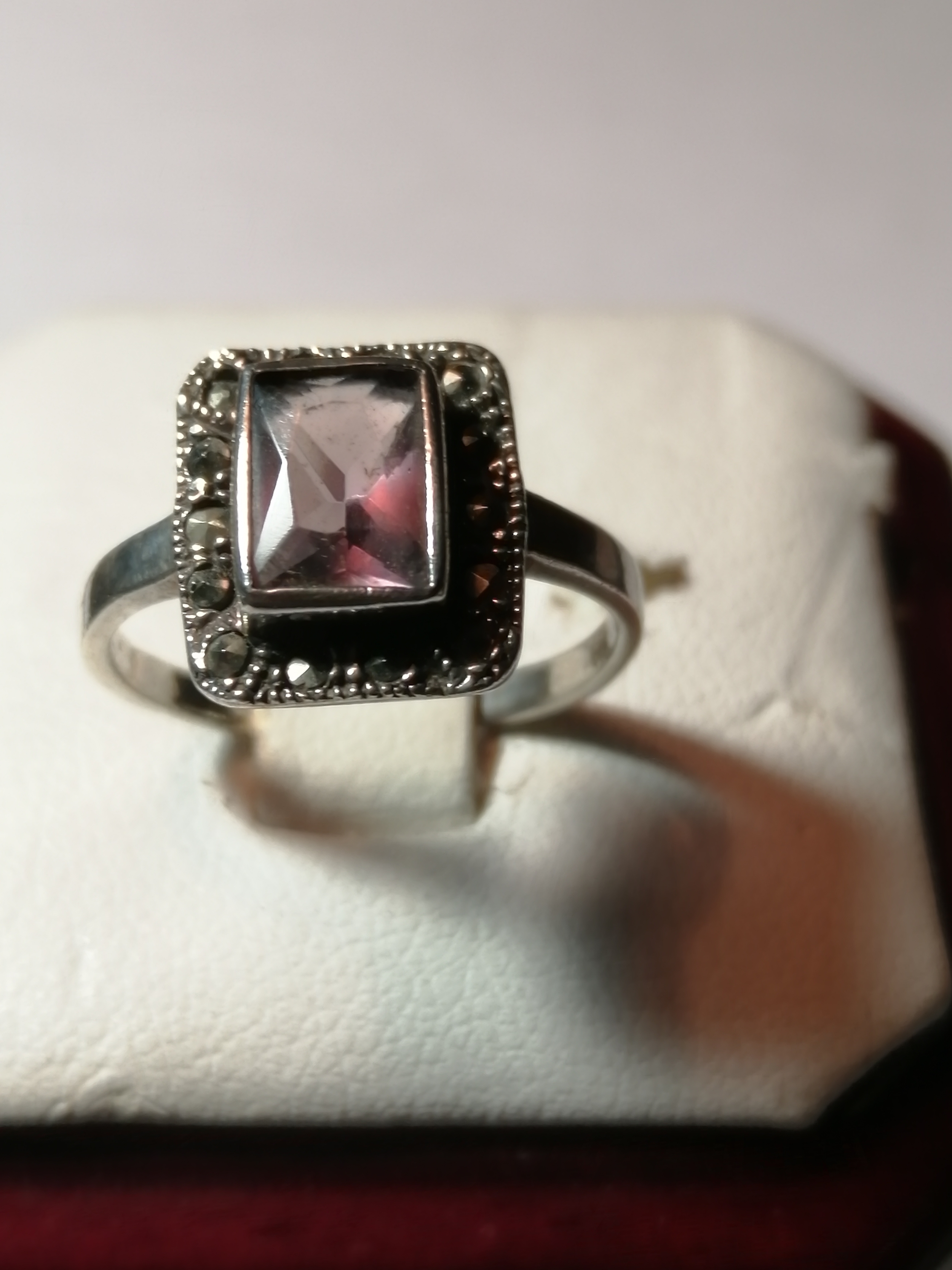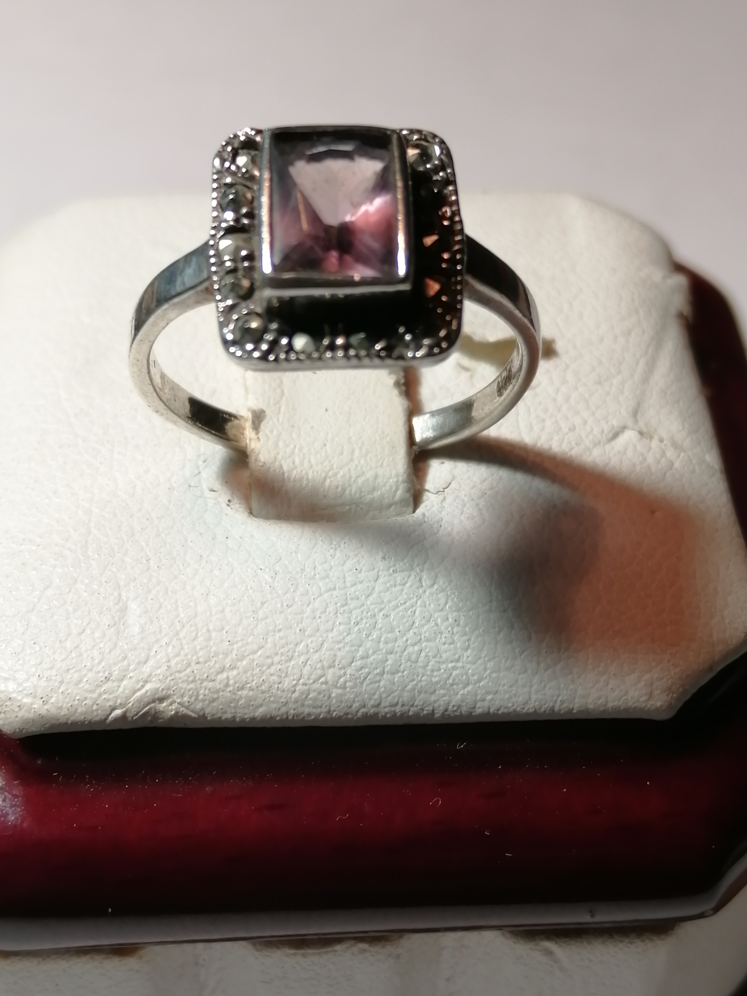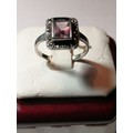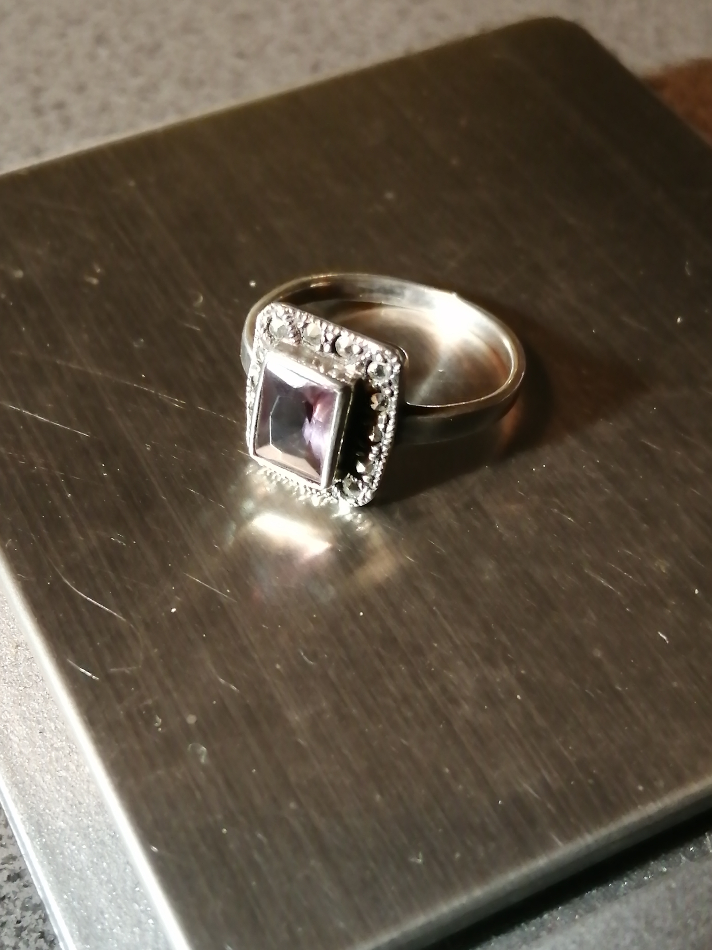 Silver ring set with single purple gemstone 2.51 grams Size M
