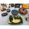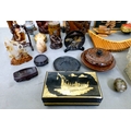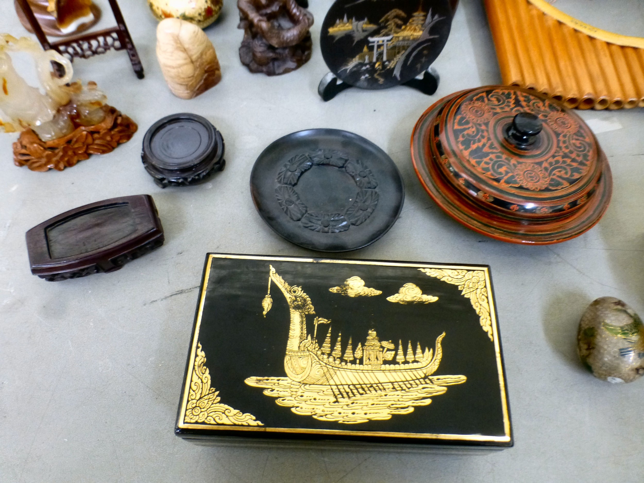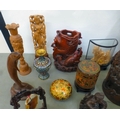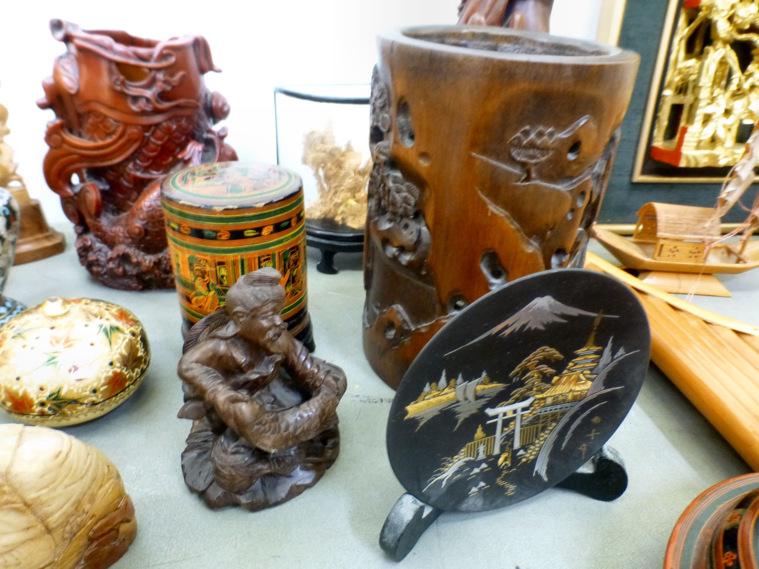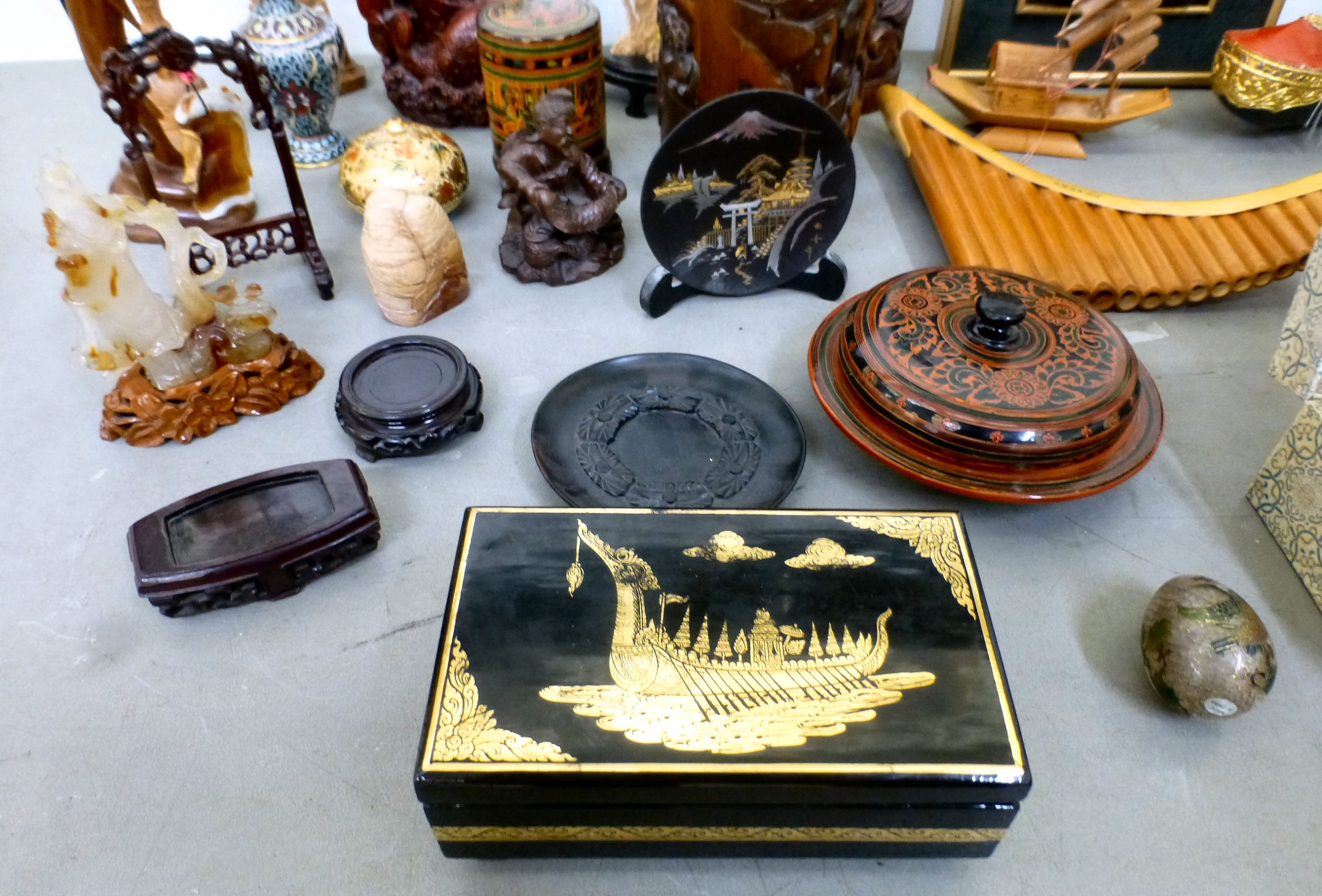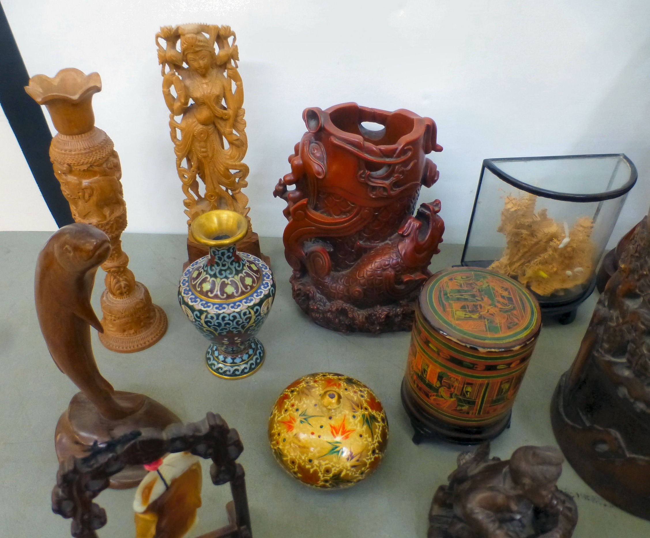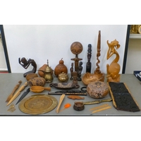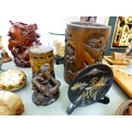A mixed lot: to include a Saung-Guak harp, decorated with gilding 13"h; and a carved wooden model, two horses fighting 12"h