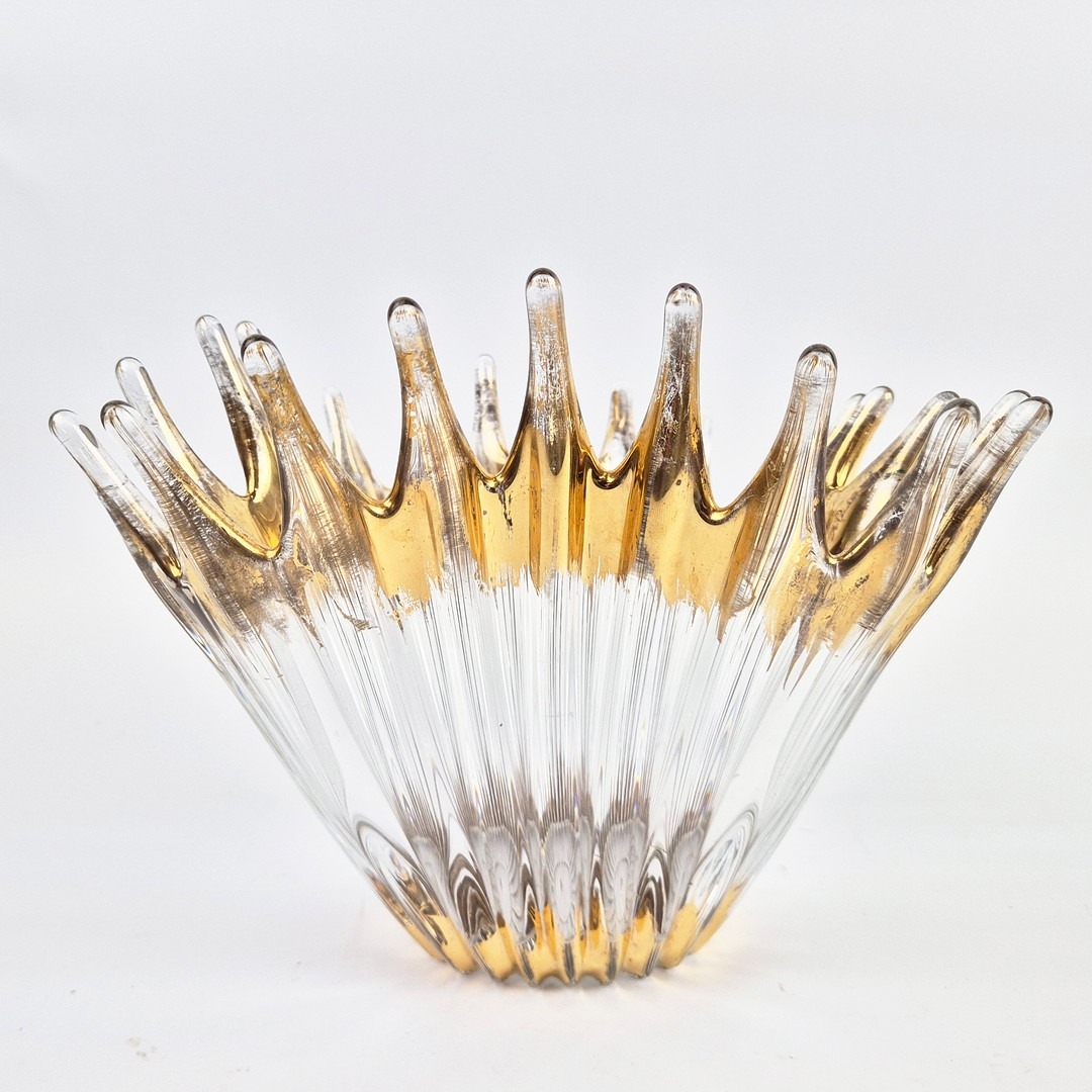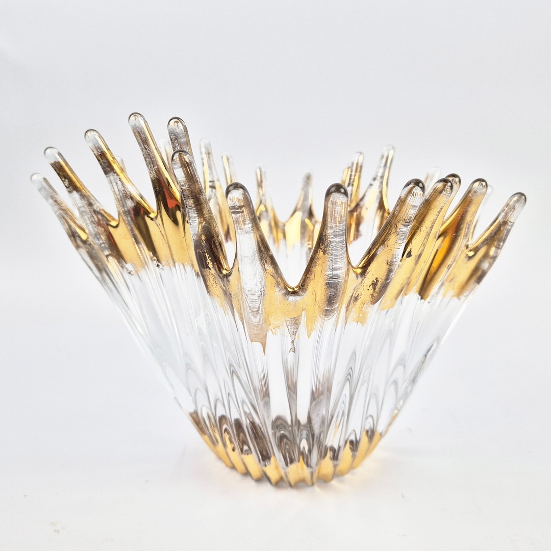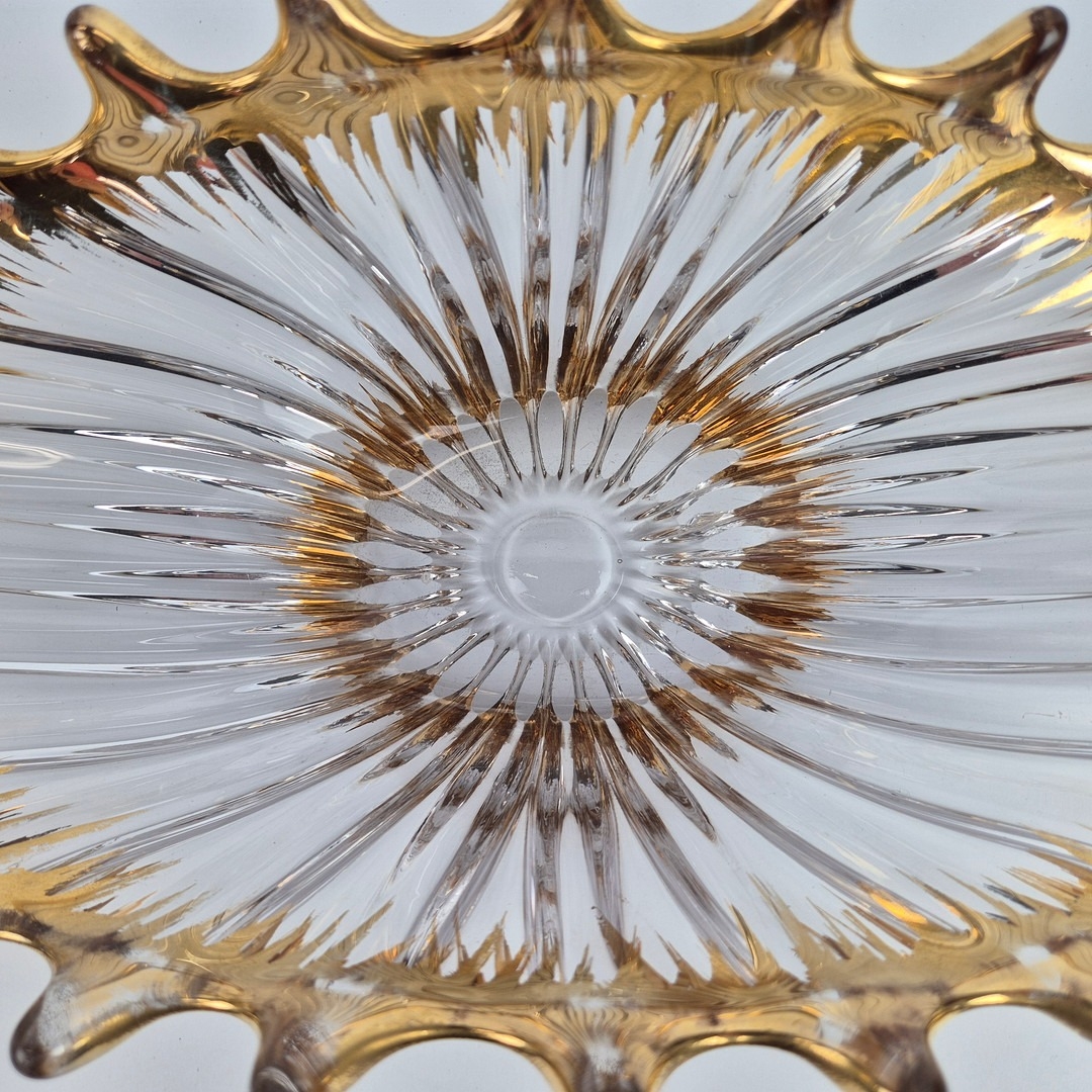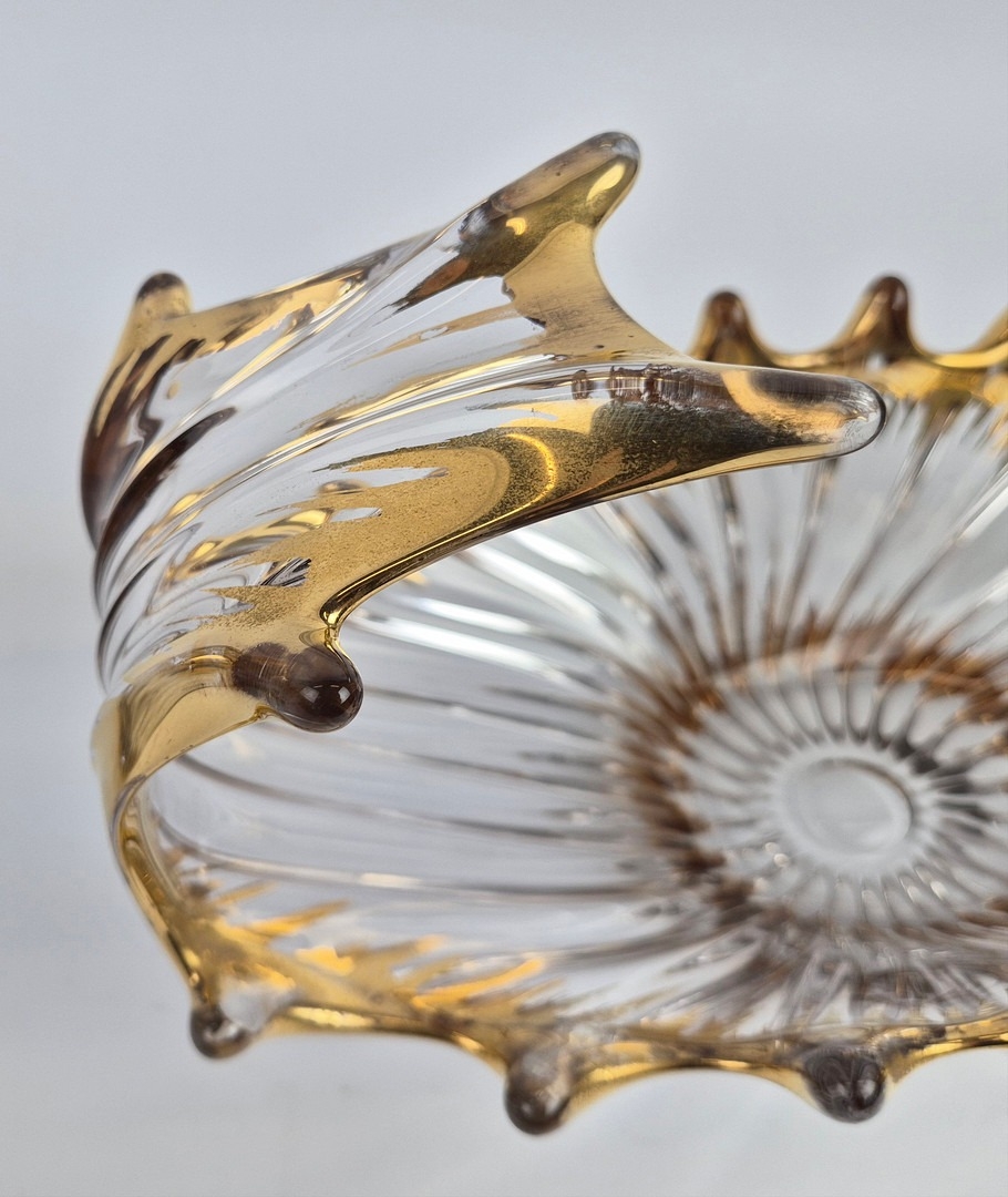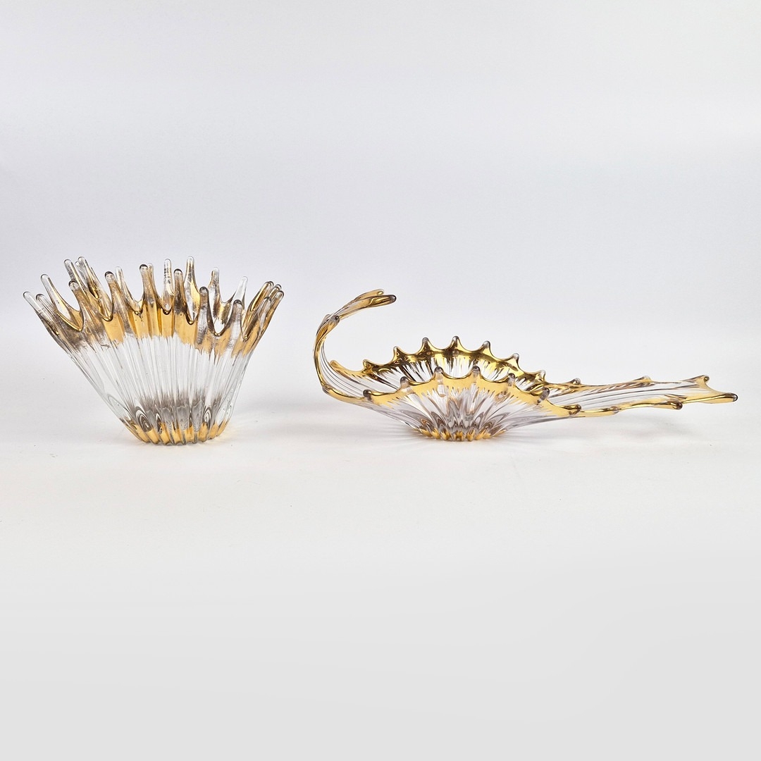 TWO MID-CENTURY BAYEL ROYAL CHAMPAGNE CRYSTALWORKS CENTER PIECES. (2). with gilt highlights. bowl 26cm x 24cm x 21cm H.
