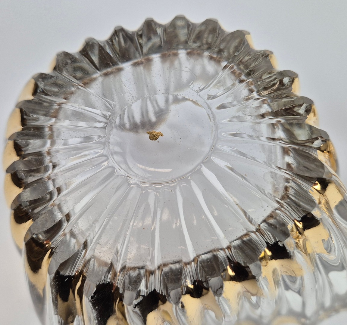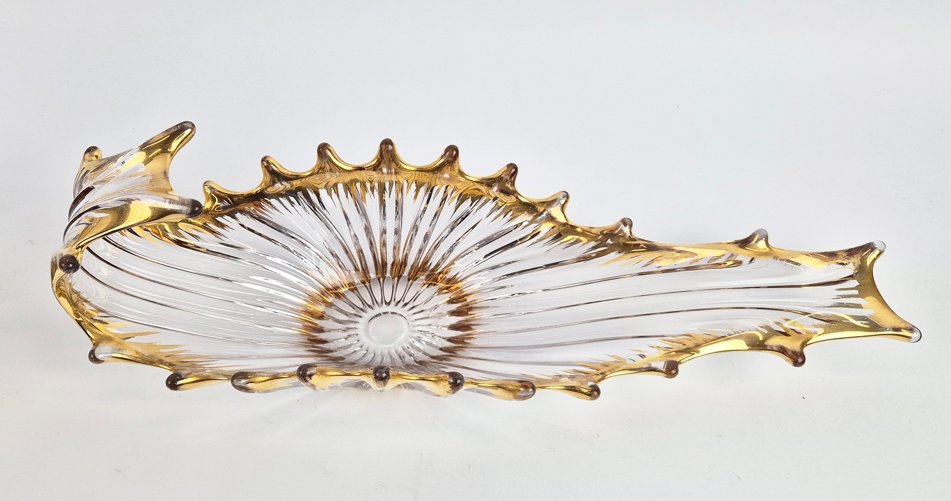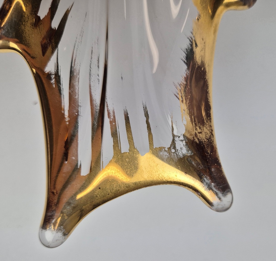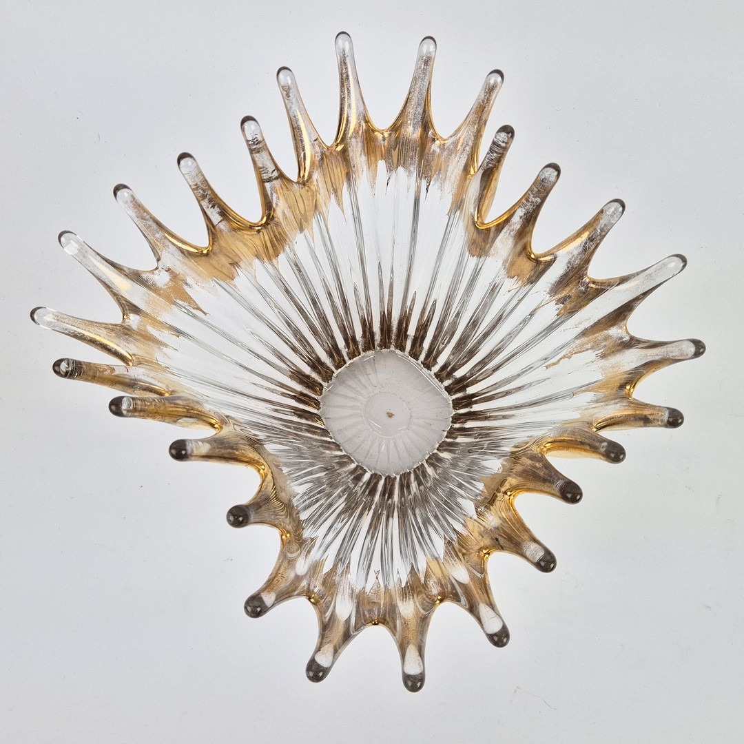 TWO MID-CENTURY BAYEL ROYAL CHAMPAGNE CRYSTALWORKS CENTER PIECES. (2). with gilt highlights. bowl 26cm x 24cm x 21cm H.