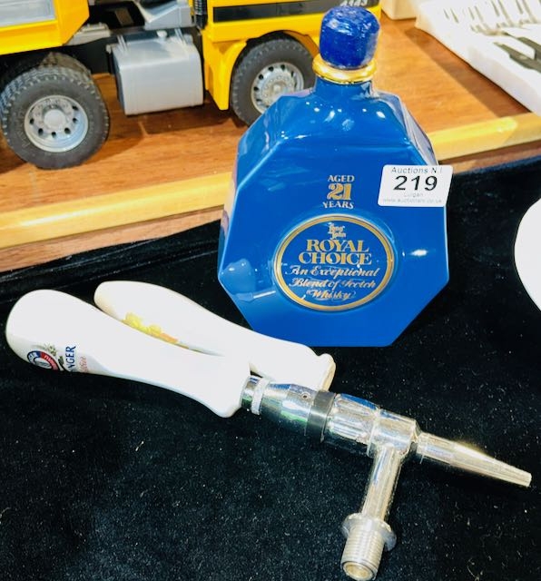 Spode Royal Choice Whisky Decanter + Ceramic Erdinger Beer Faucet + Extra Handle