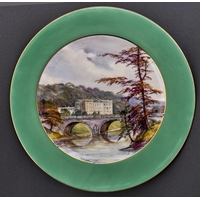 A Royal Crown Derby plate, 1938, painted by W E J Dean, signed, with Monsall Dale reserved on a primrose ground, 24.5cm daim, printed mark, painted title