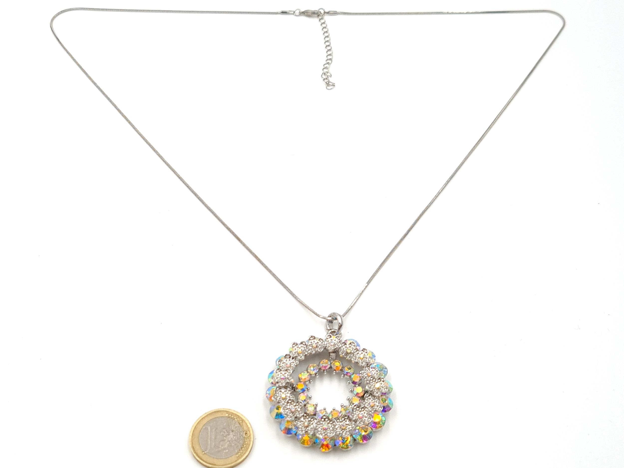 A very pretty three strand drop pendant necklace set with iridescent gemstones.
