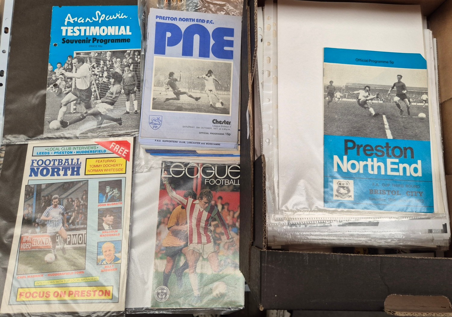 A box of assorted Preston North End memorabilia to include programmes etc.