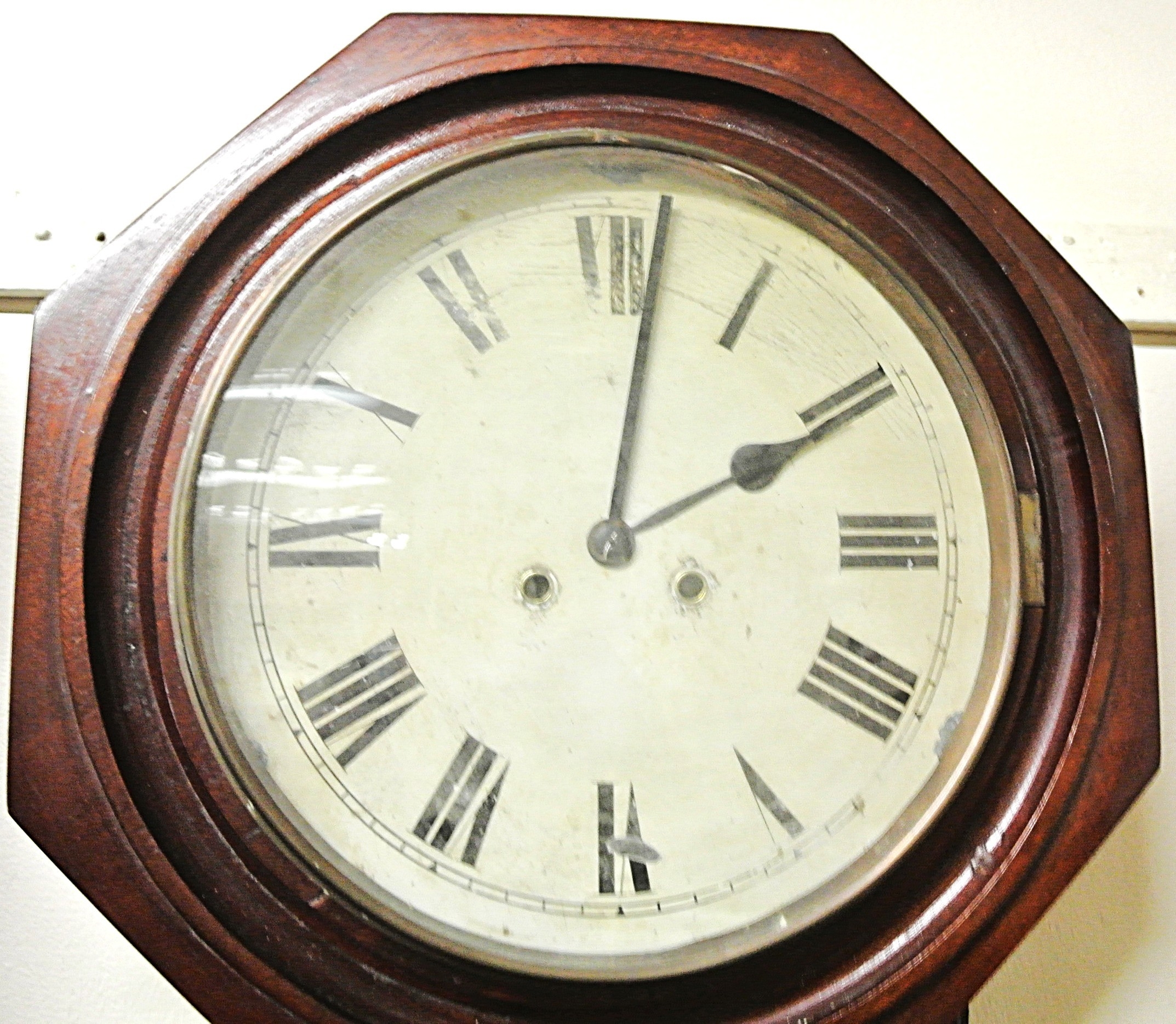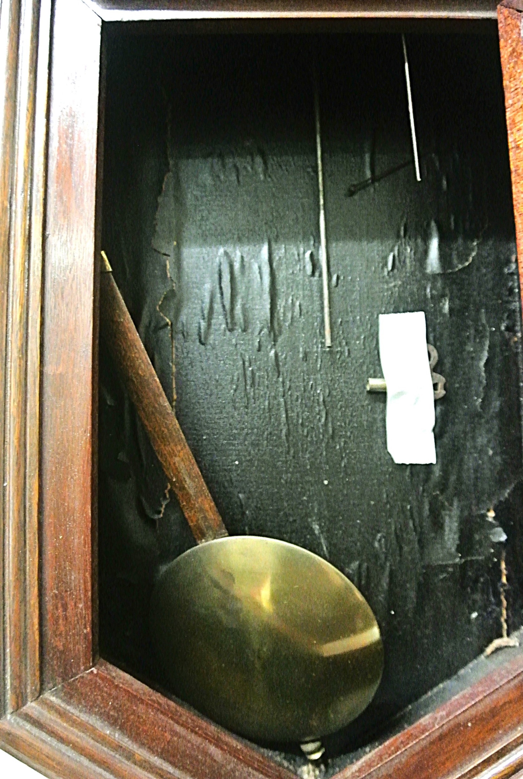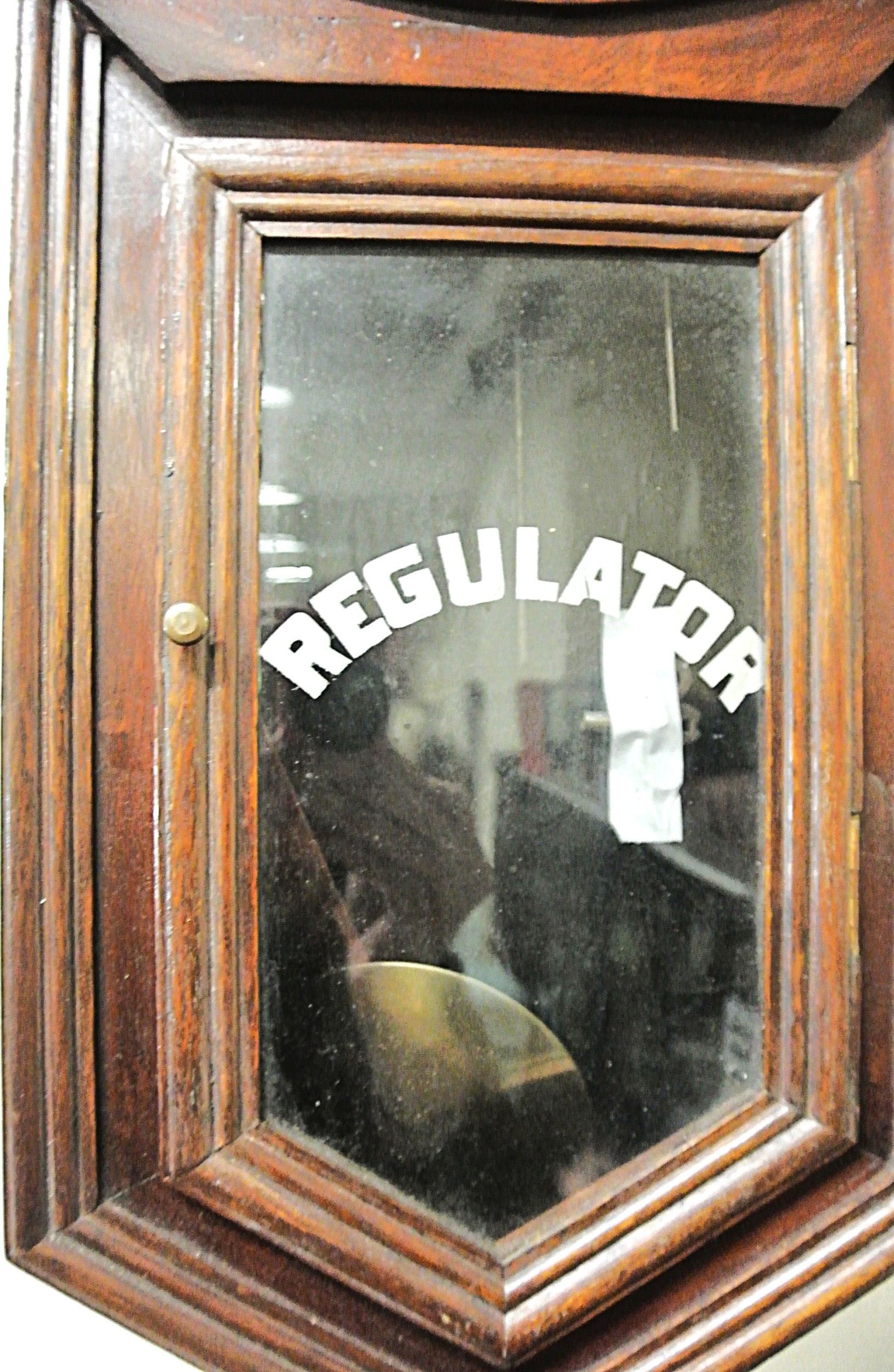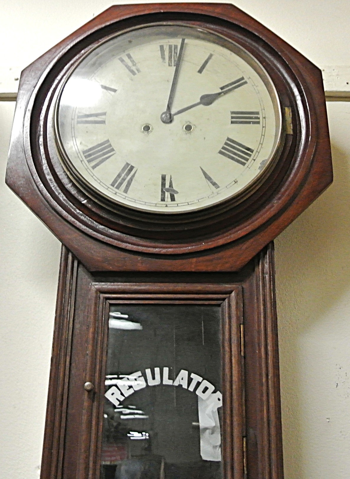 Edwardian style regulator wall clock with brass framed dial and pendulum