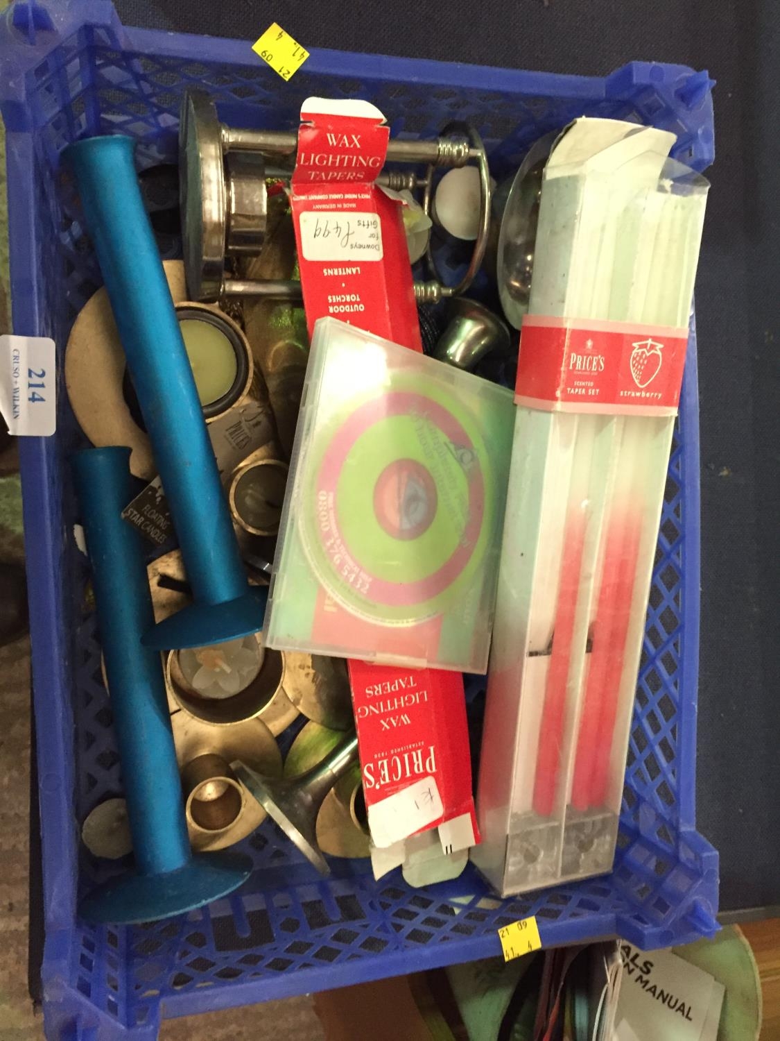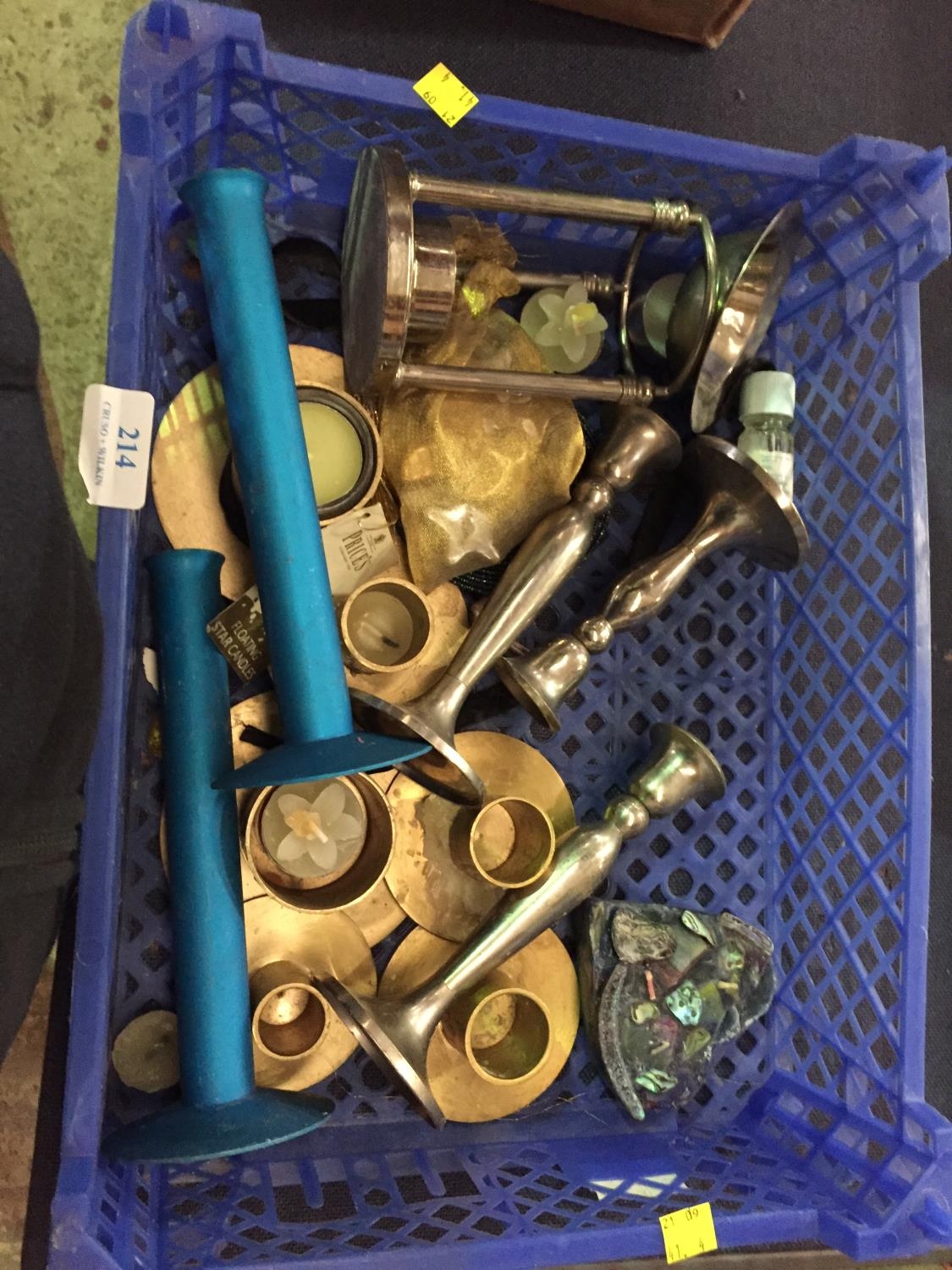 BOX OF VARIOUS CANDLE HOLDERS