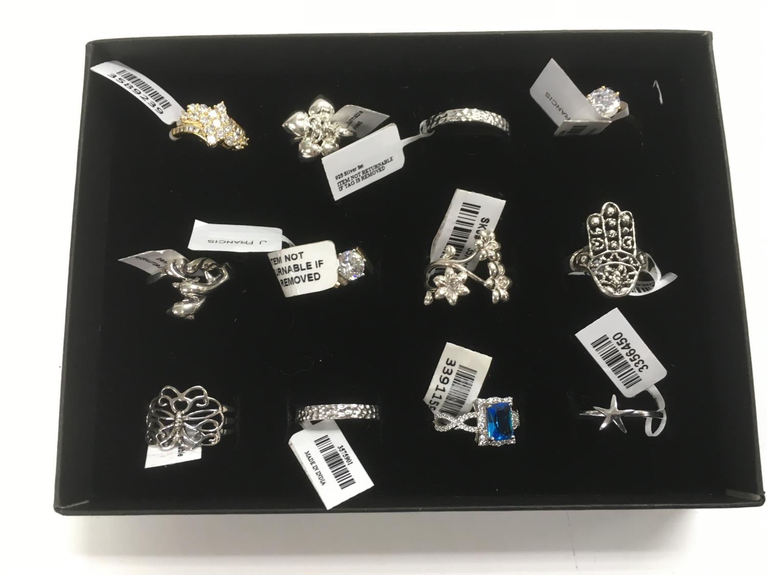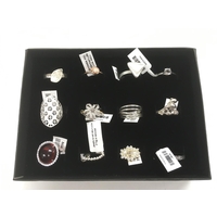 A collection of 12 new silver rings.