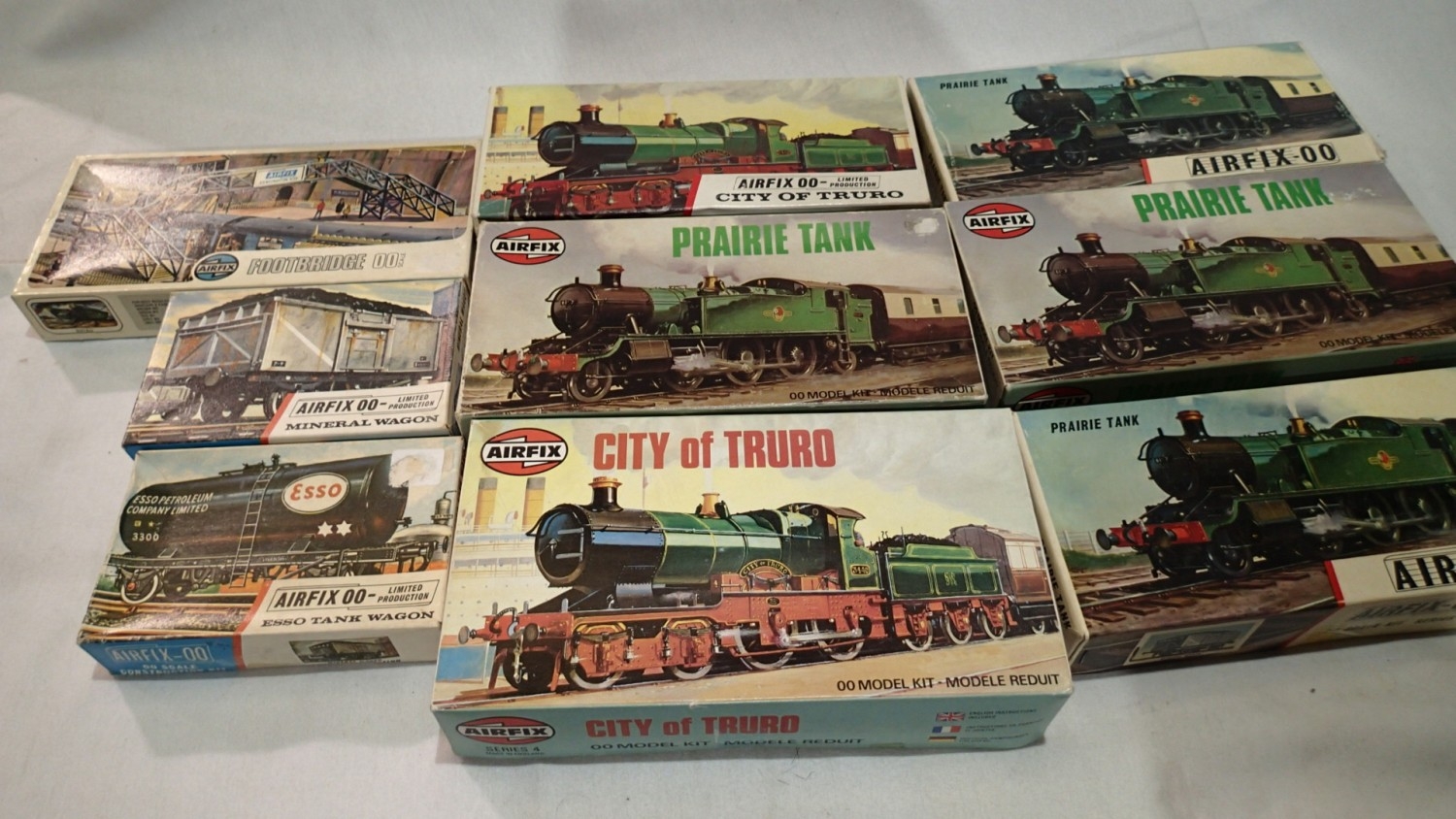 9 Airfix railway related kits, prairie tank x4, 'City of Truro' x2 plus 2 wagons and footbridge, contents unchecked. UK P&P Group 2 (£24+VAT for the first lot and £5+VAT for subsequent lots)