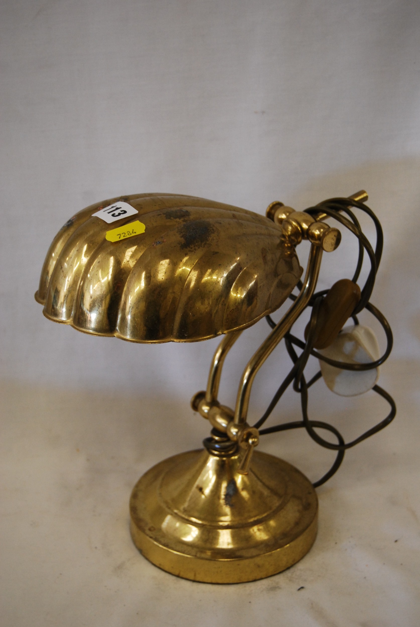 VINTAGE BRASS DESK LAMP WITH SHELL SHAPED SHADE