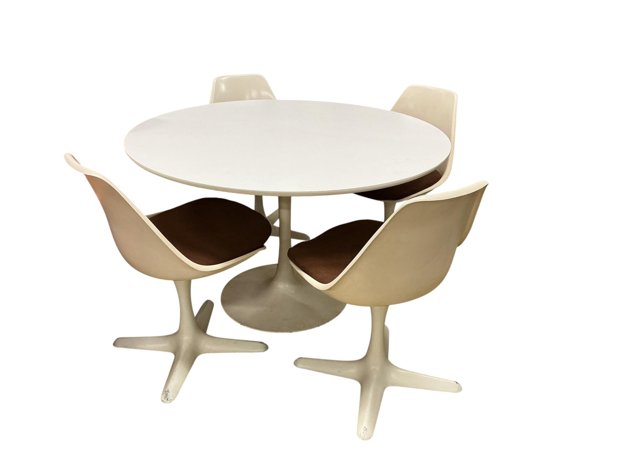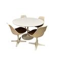An Arkana Tulip table, diameter 121cm, height 72cm and four chairs