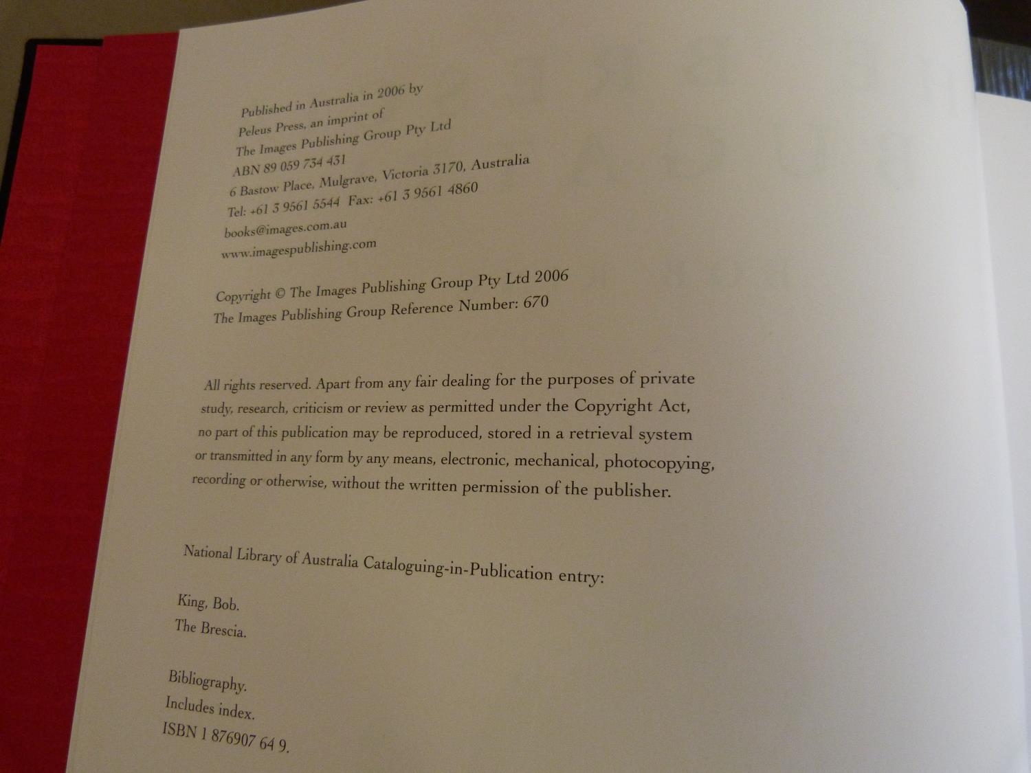 KING BOB. The Brescia Bugatti. Illus. Quarto. Orig. dec. dark cloth in slip case, as new cond. Peleus Press, 2006.