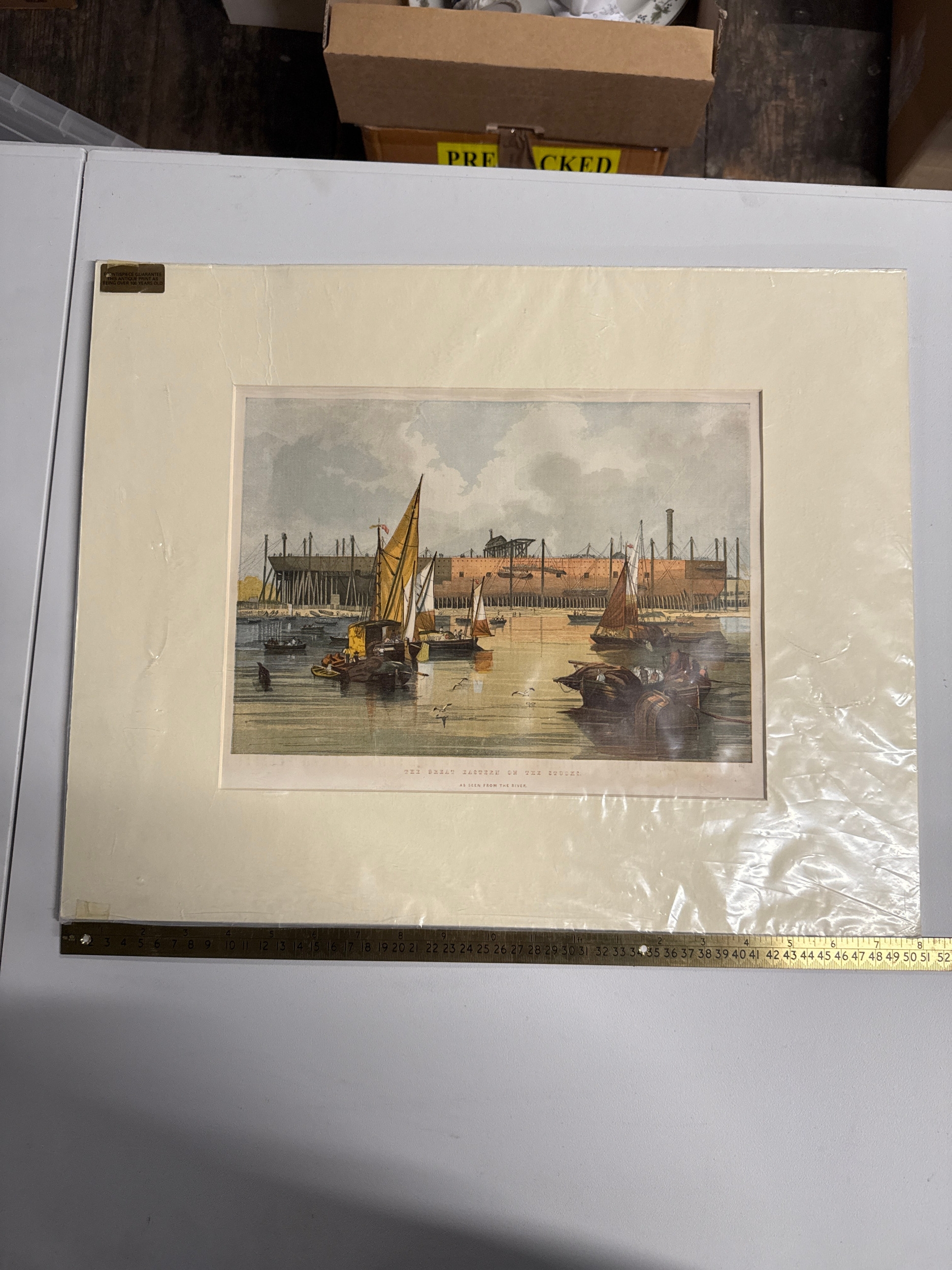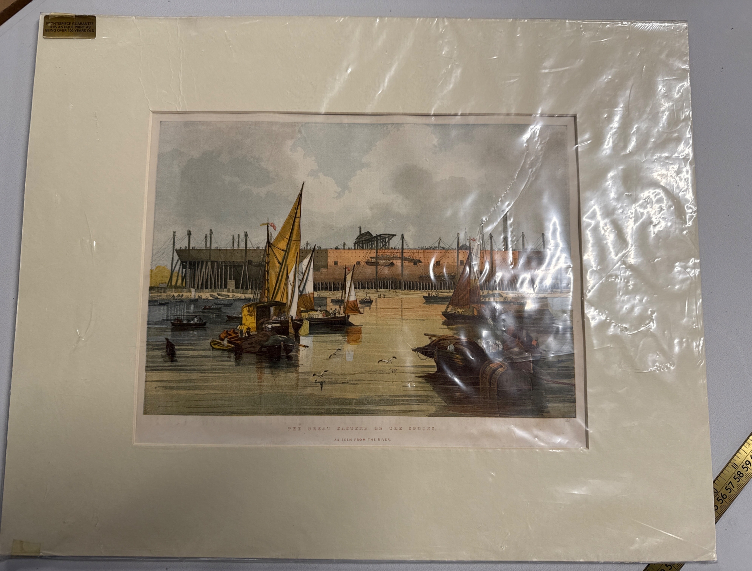 James Wilson Carmichael, 'The Great Eastern on the Stocks. As Seen from the River', Antique Print