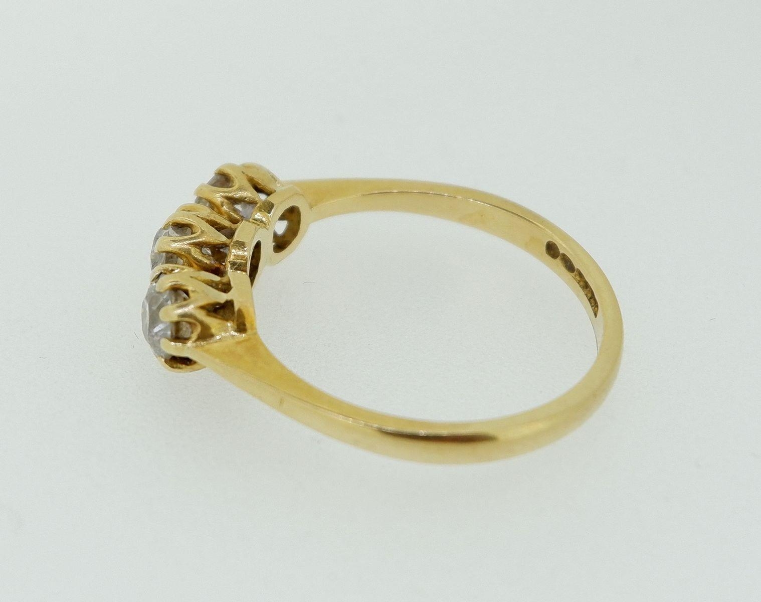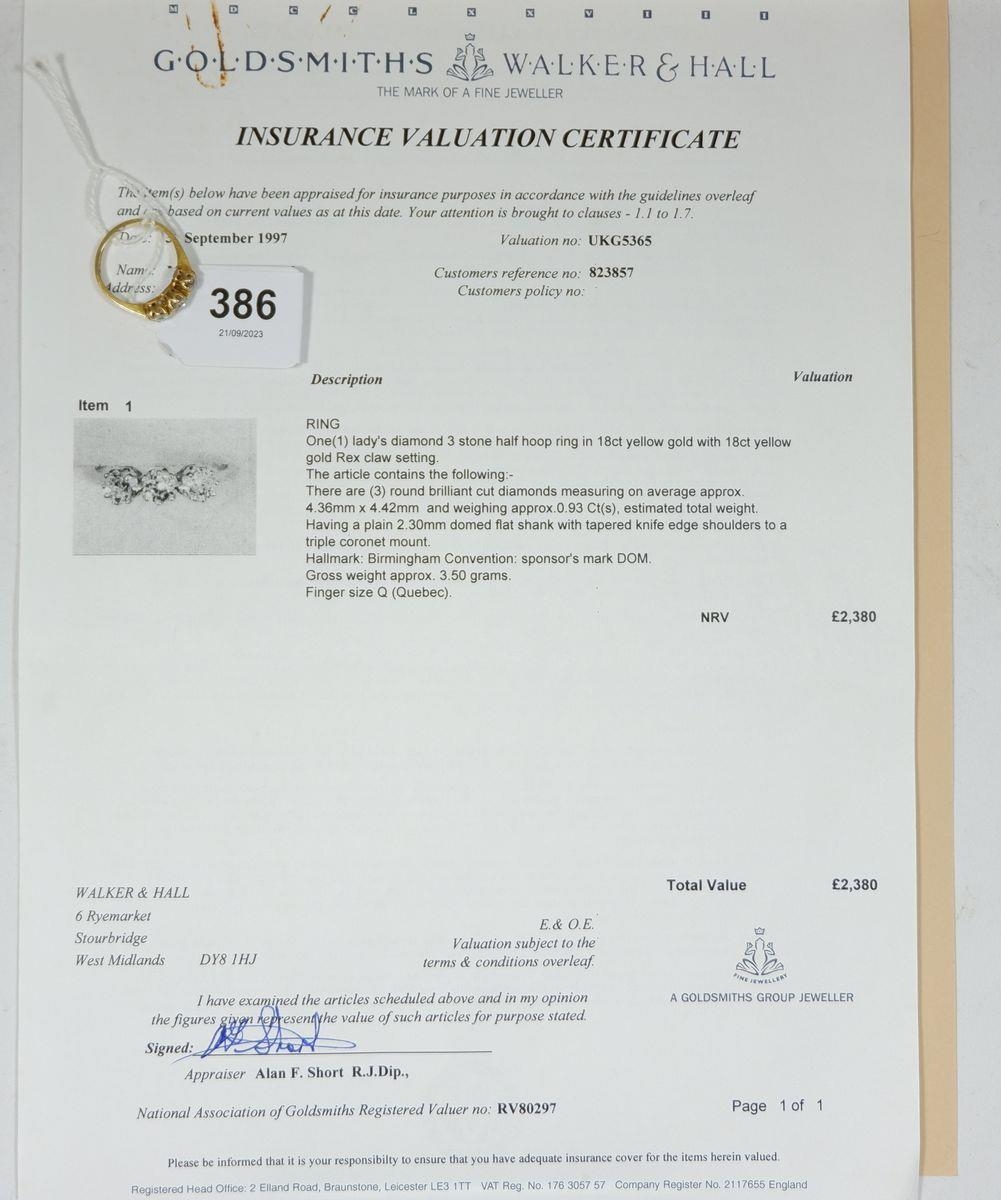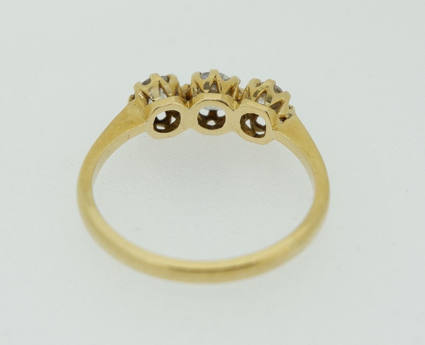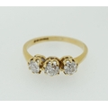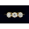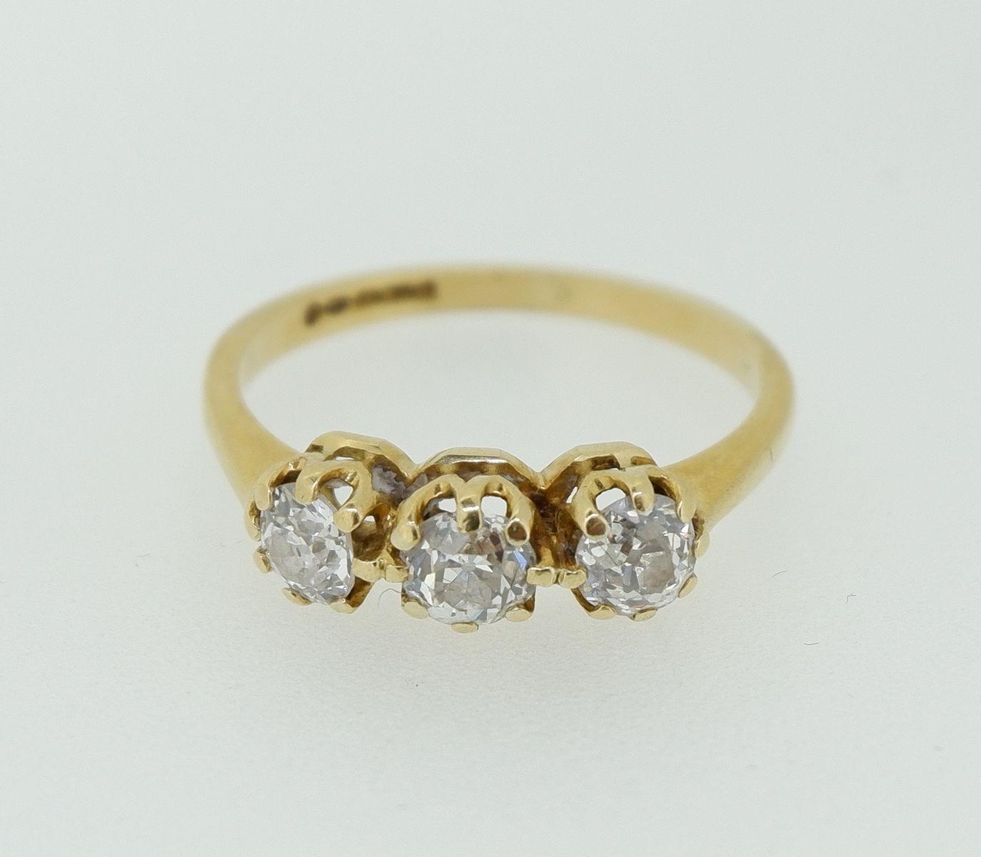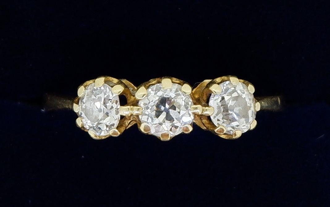 An 18 carat gold three stone diamond ring (total weight 0.93 cts) size Q