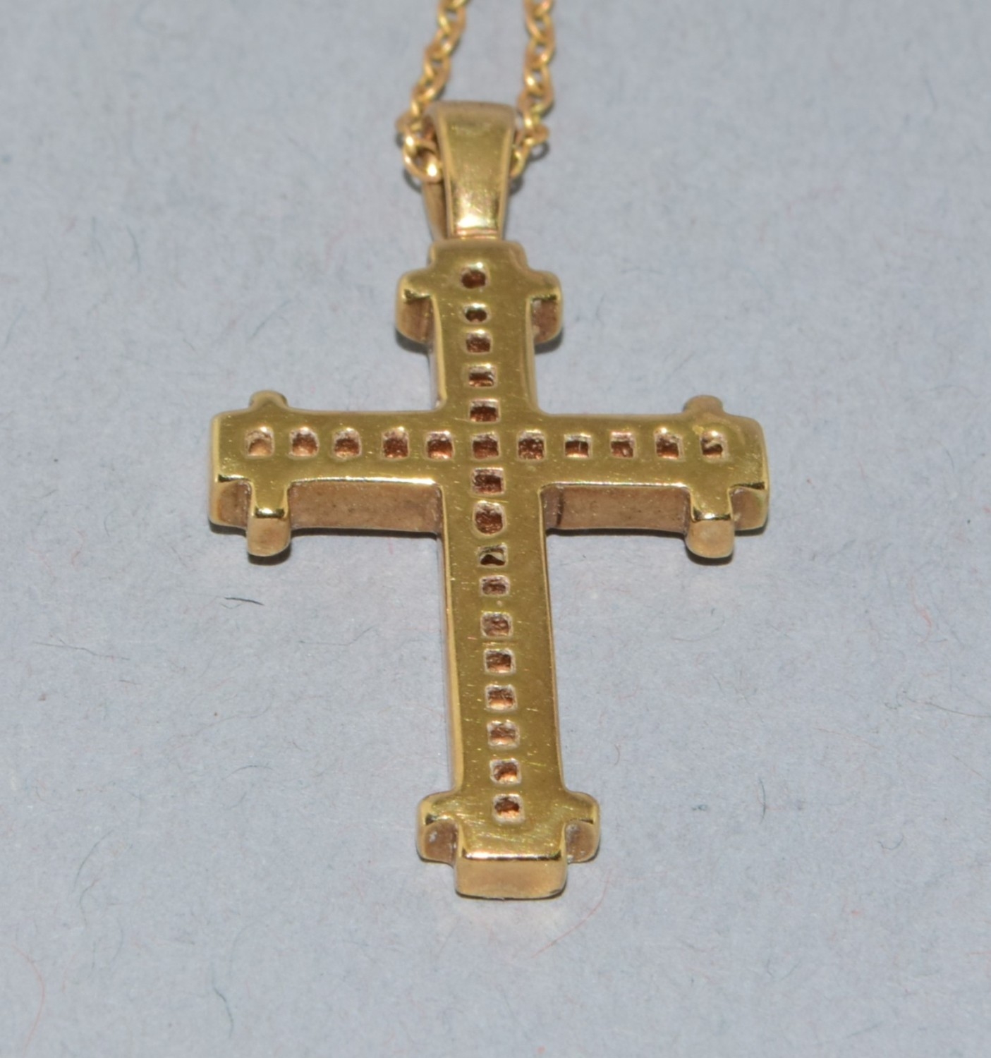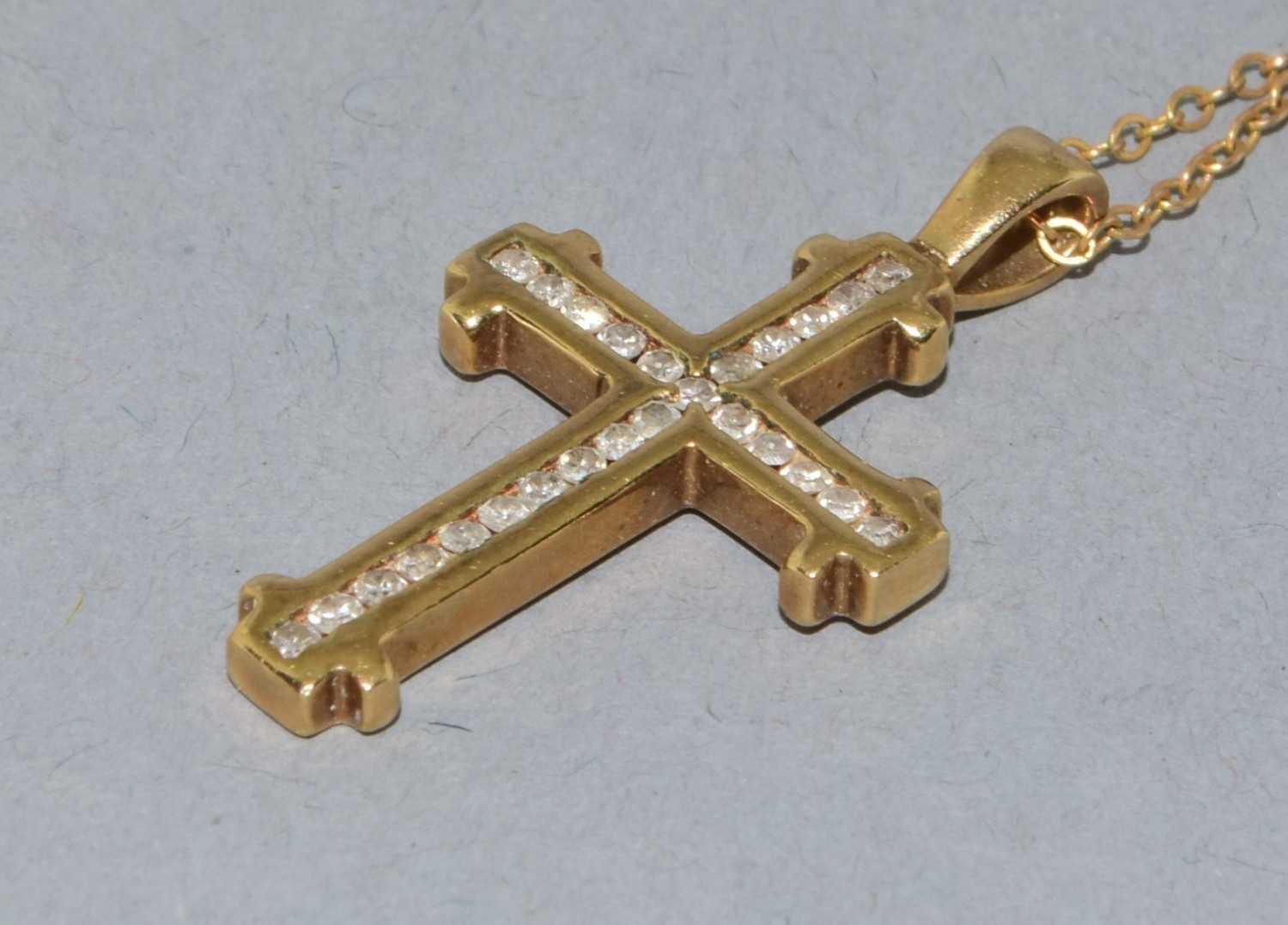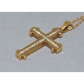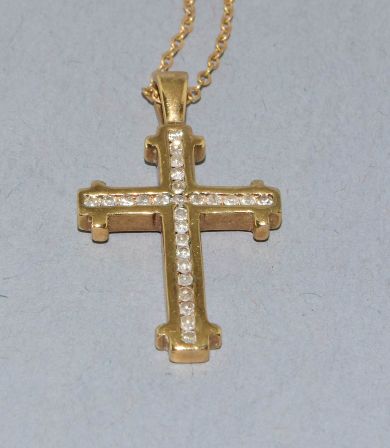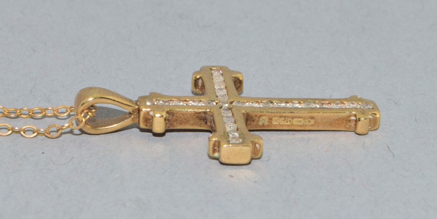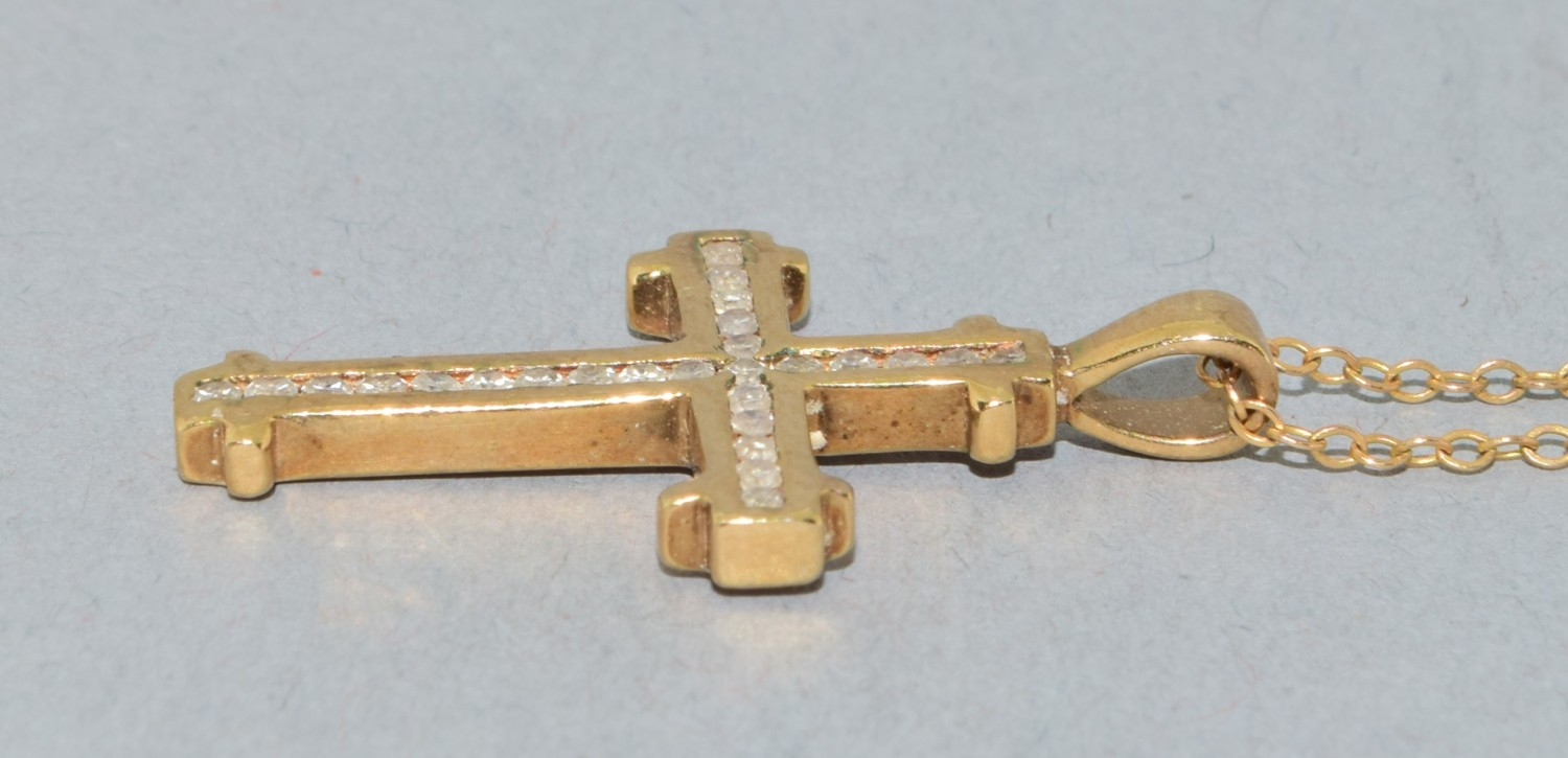 9ct gold Diamond set crucifix pendant necklace the Diamonds in a fix channel setting estimated as 0.50cts held on 9ct gold neck chain of 40cm long