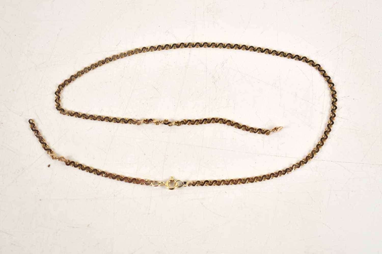 A 9ct gold flat link necklace, a/f, 7.7g.