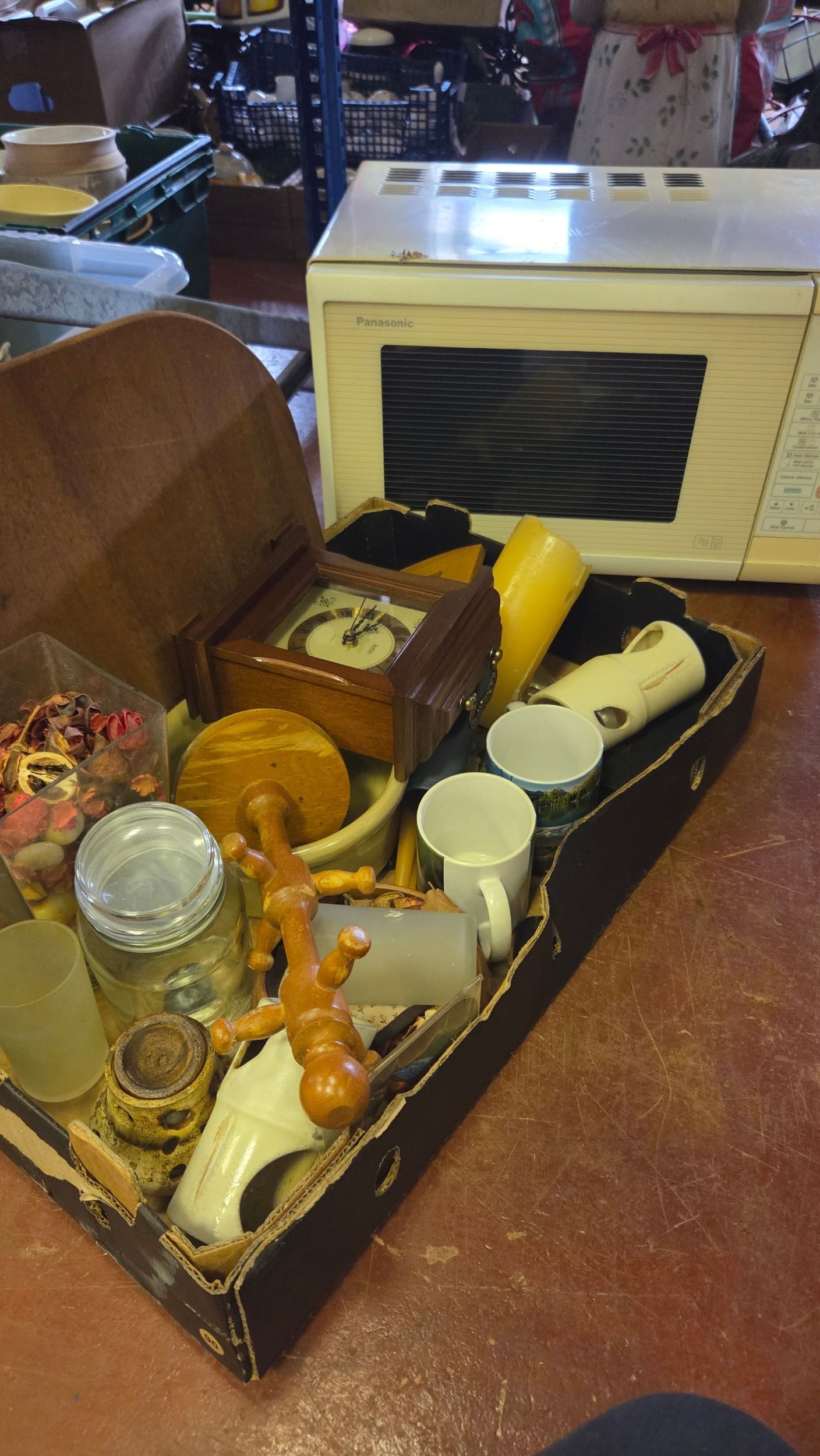 Panasonic Microwave Oven and Two Boxes of Household Goods