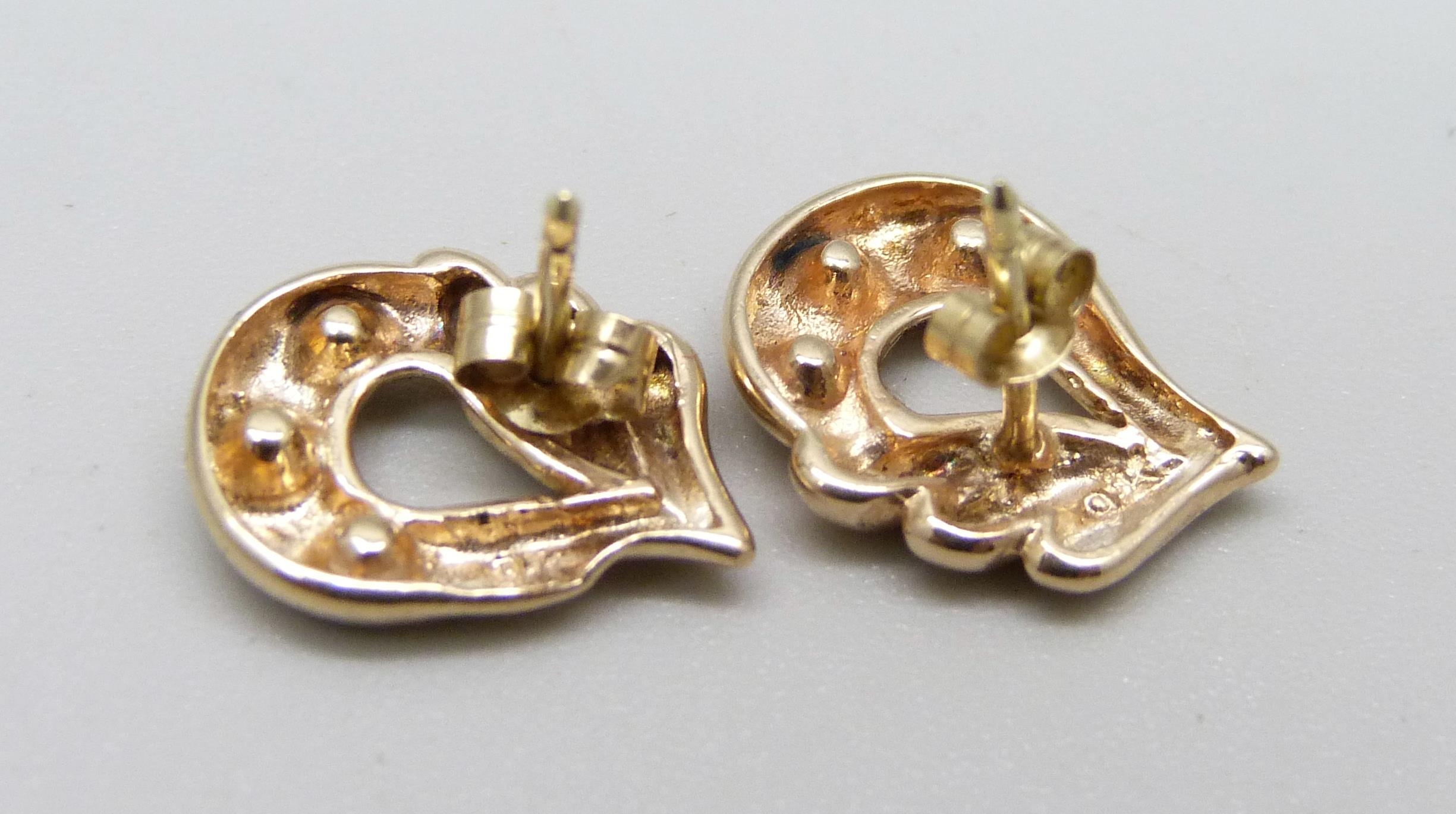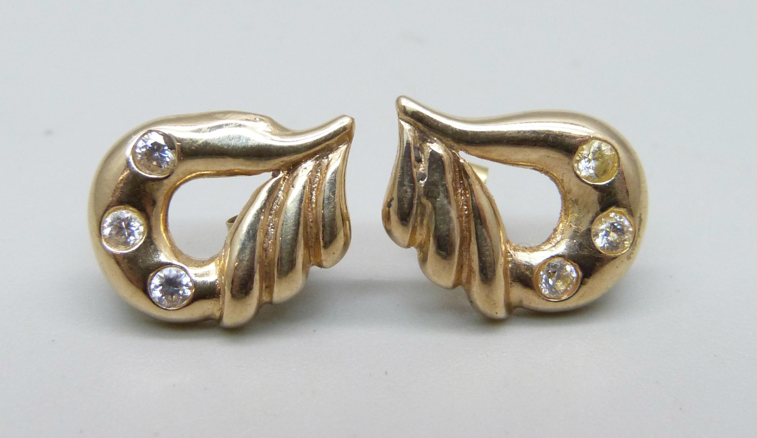 A pair of 9ct gold and zircon earrings, 2.4g