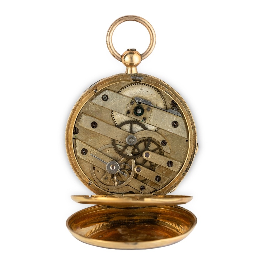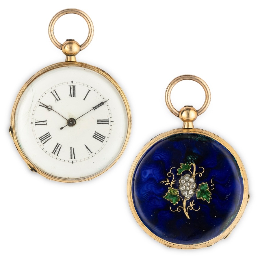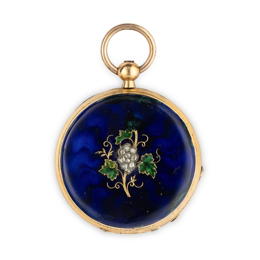 ALEX CONRE ET CIE, GEVEVE, OROLOGIO DA TASCA IN ORO CON SMALTI E DIAMANTI, SVIZZERA 1870 CIRCA