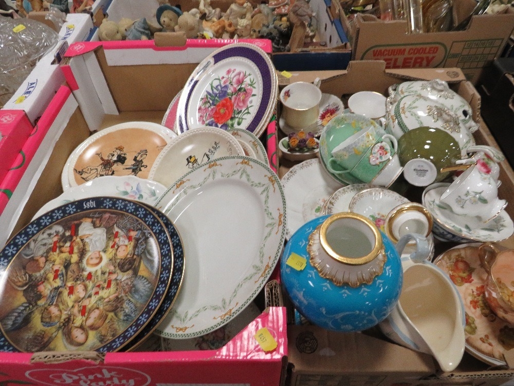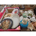 A tray of assorted ceramics to include a Minton's vase - with damage to lid together with a tray of assorted plates (2)