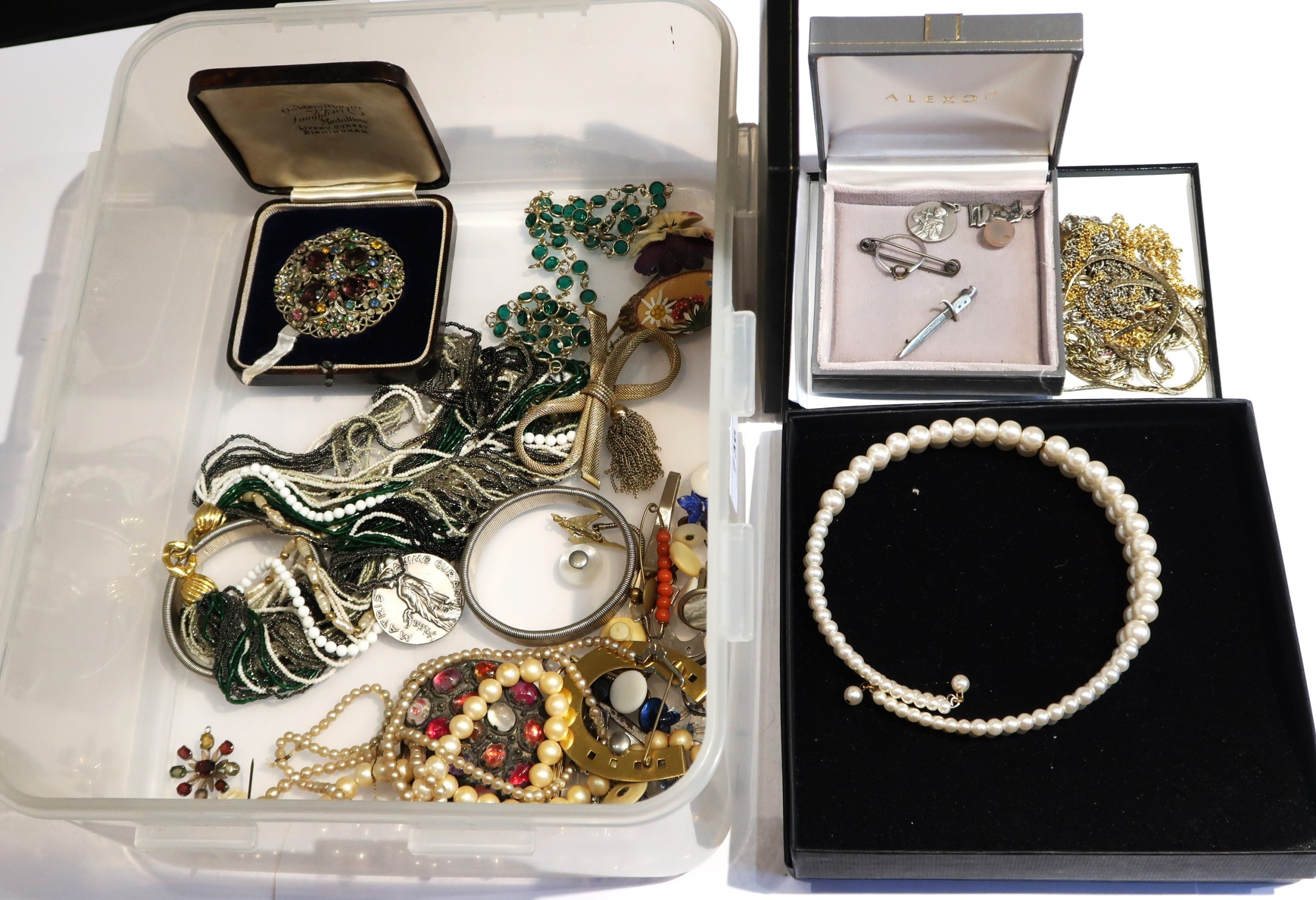 Three simulated pearl necklaces and sundry jewellery