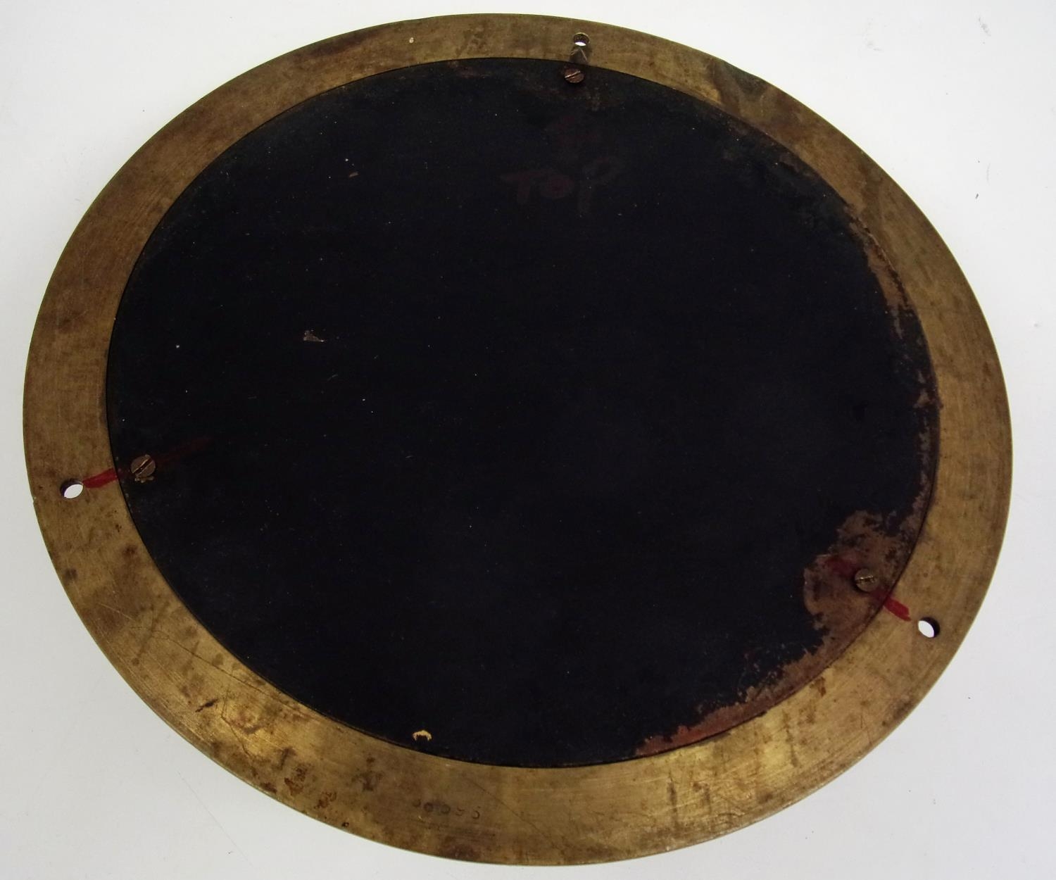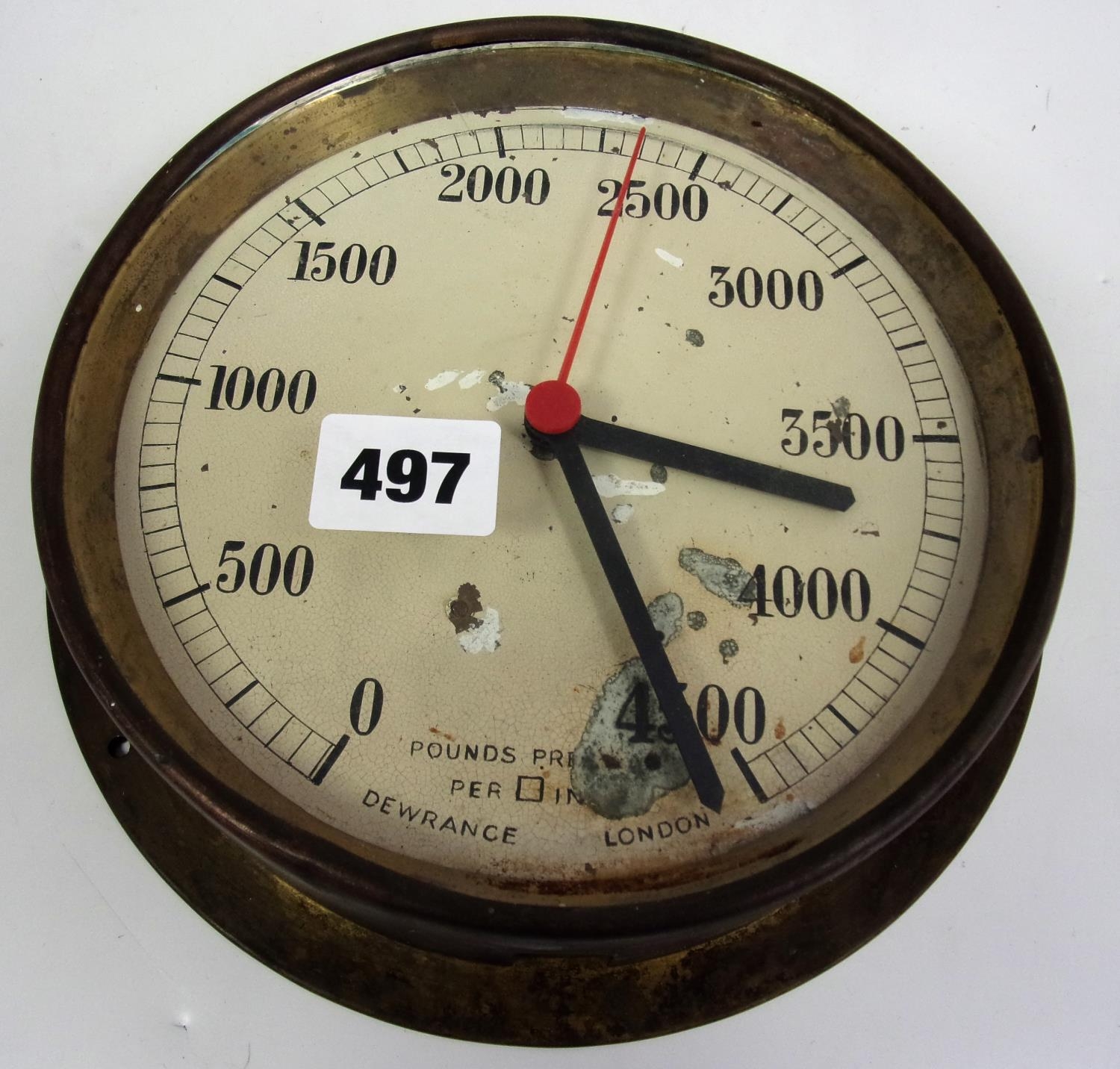 A HEAVY BRASS PRESSURE GAUGE BY DEWANCE, LONDON, CONVERTED TO A CLOCK, APPROX. 20 cm DIA.