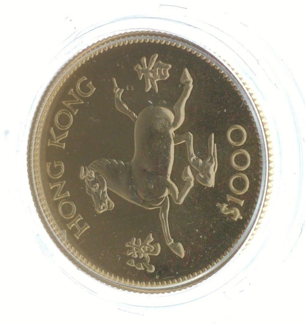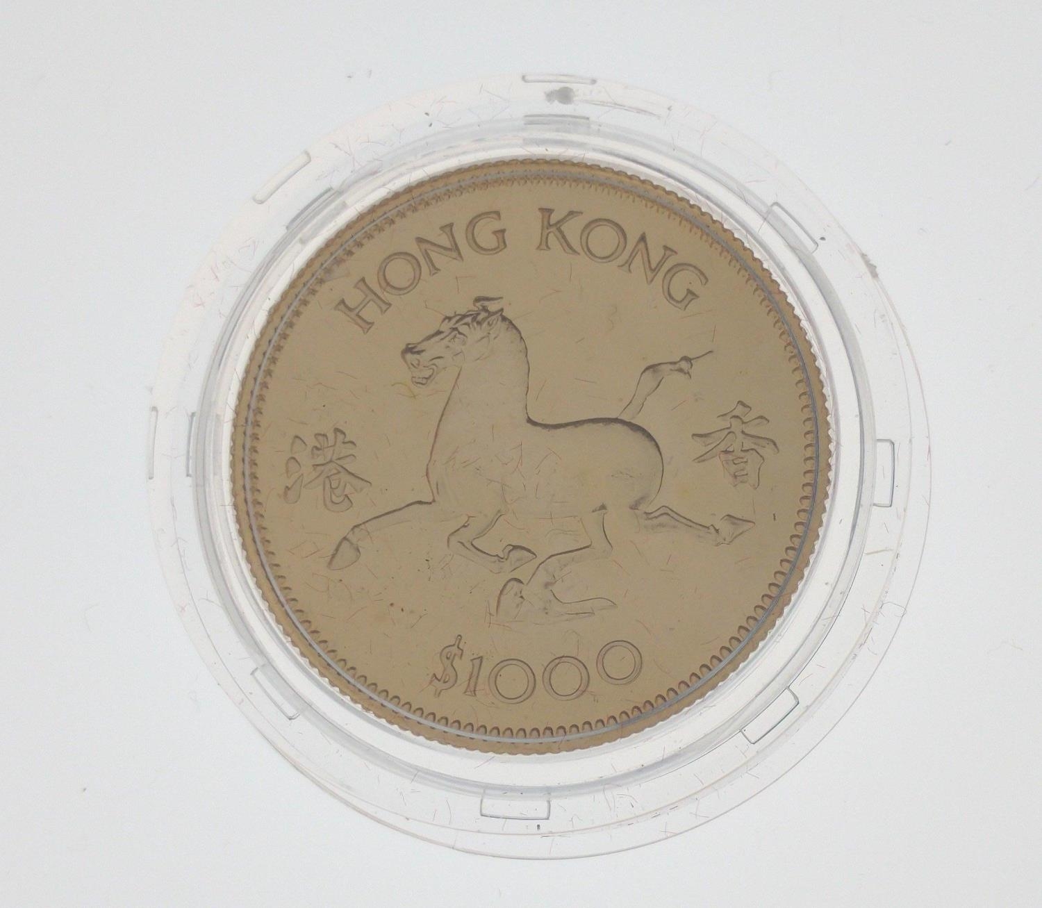 A 1978 HONG KONG $1000 Lunar Year Coin 'The Year Of The Horse' struck in 22ct yellow gold within its protective case In 1978 to celebrate the Lunar Year of the Horse, the Royal Mint released a very Limited Issue Lunar Horse $1000 One Thousand Dollar Gold Proof ...weight 15.95g - comes in original presentation case and protective plastic cover