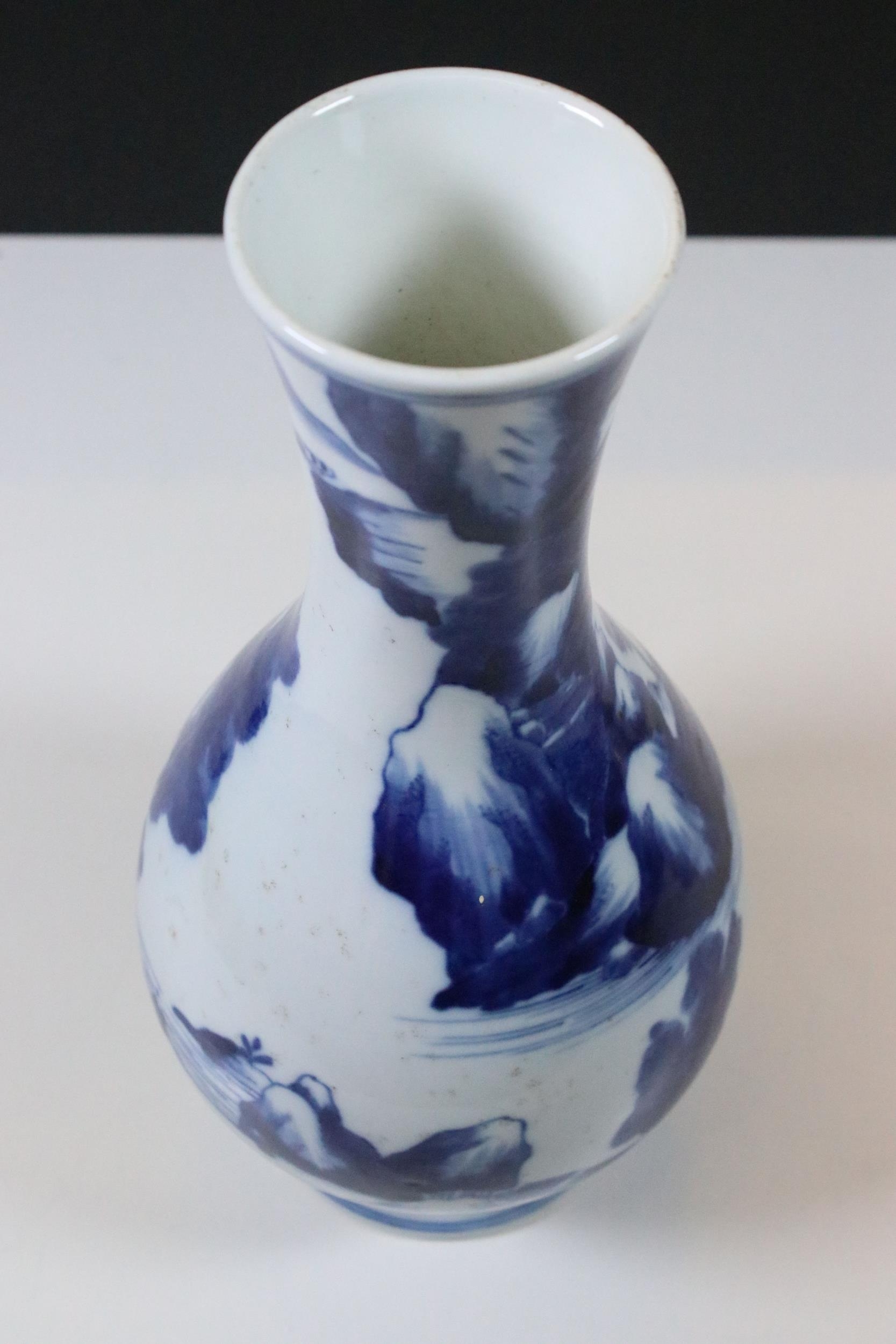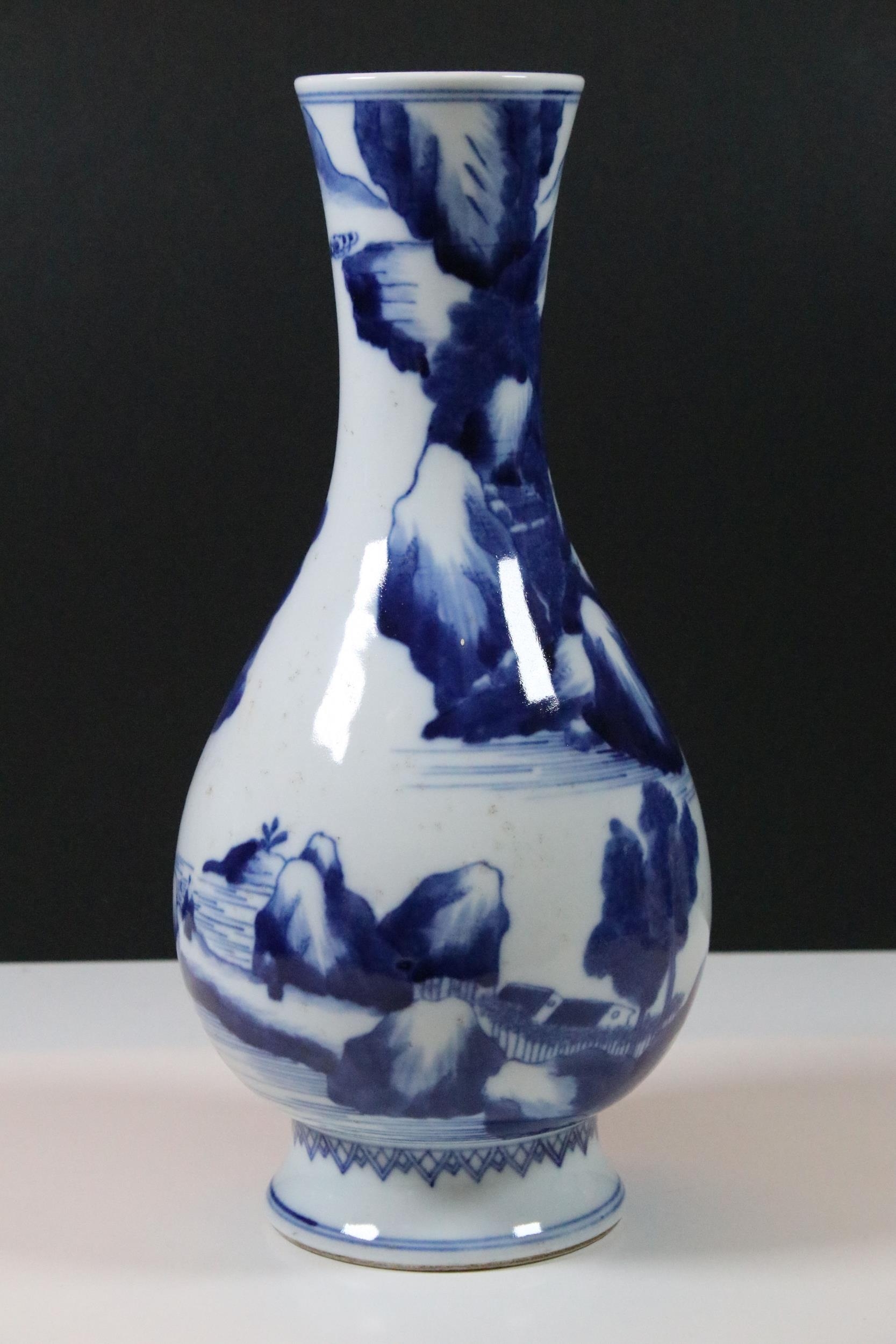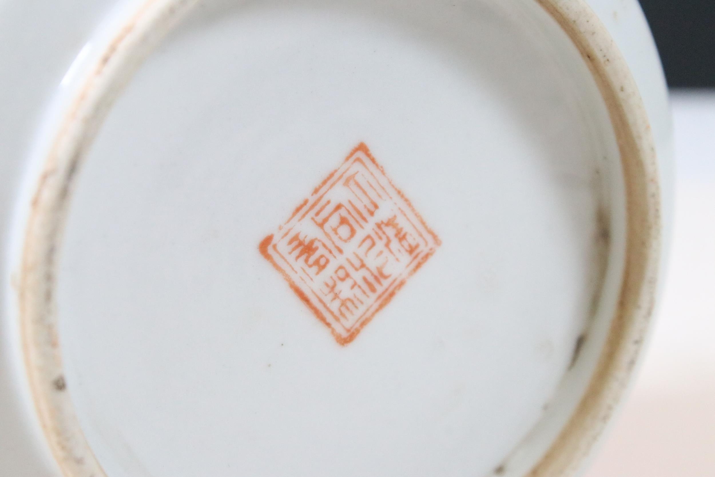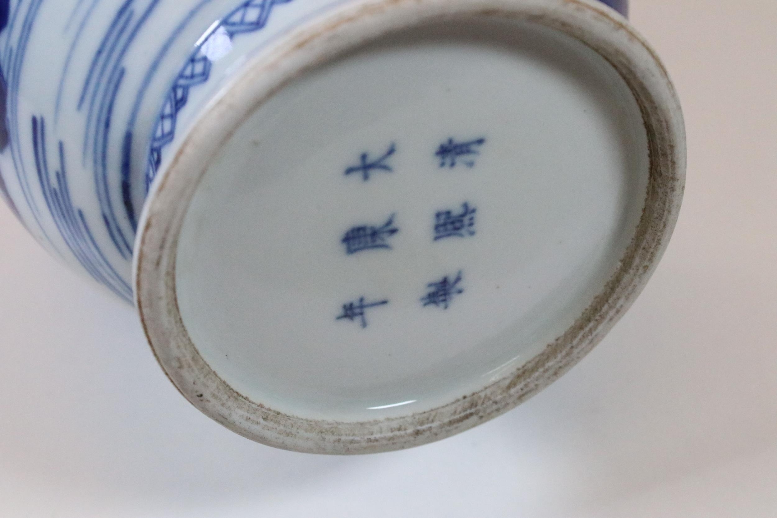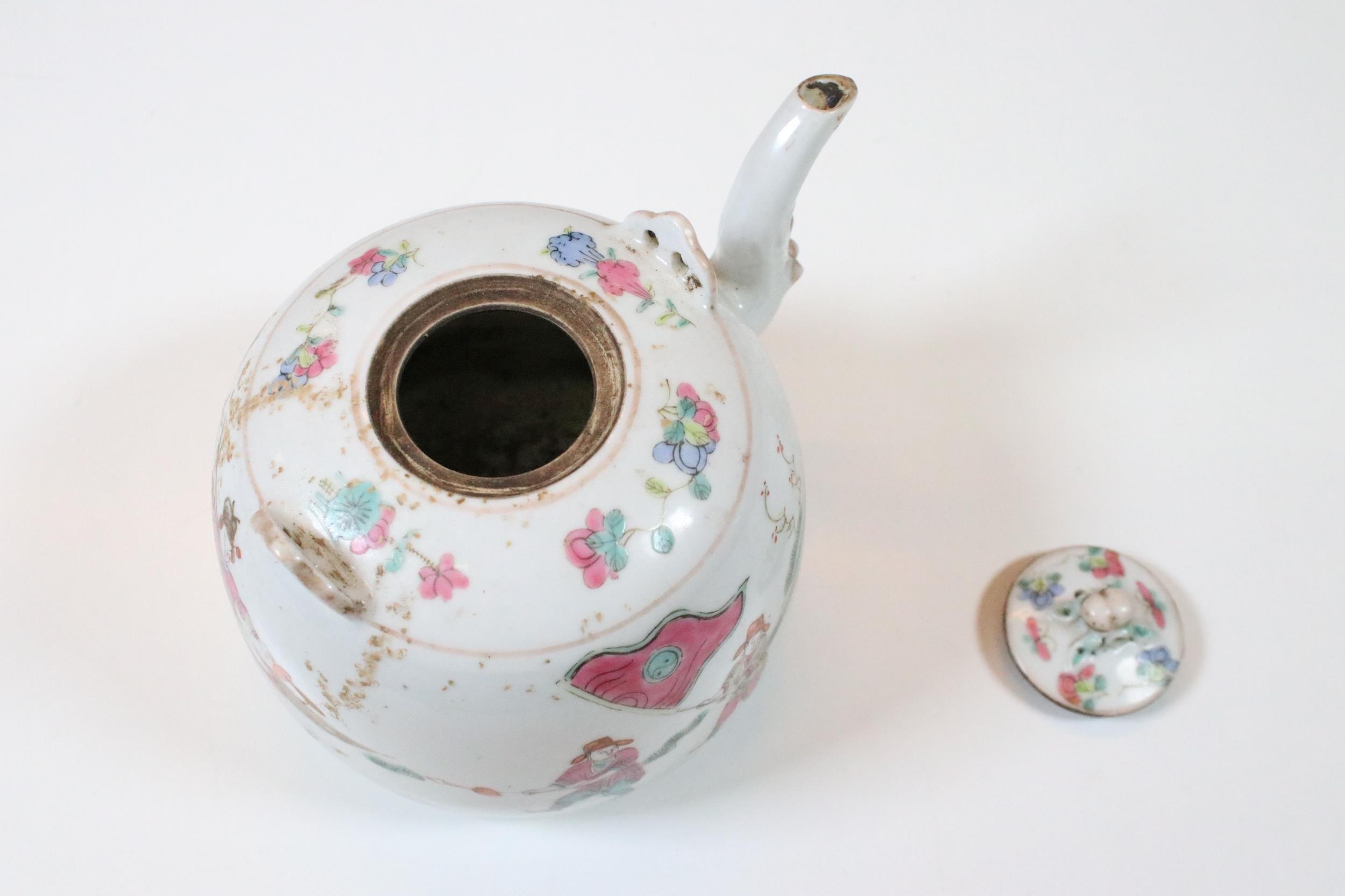 Collection of three Chinese ceramic items to include Late 19th Century Qing Dynasty blue and white vase with mountain and water decoration, Famille Rose ginger jar and Famille Rose lidded teapot with figural decoration