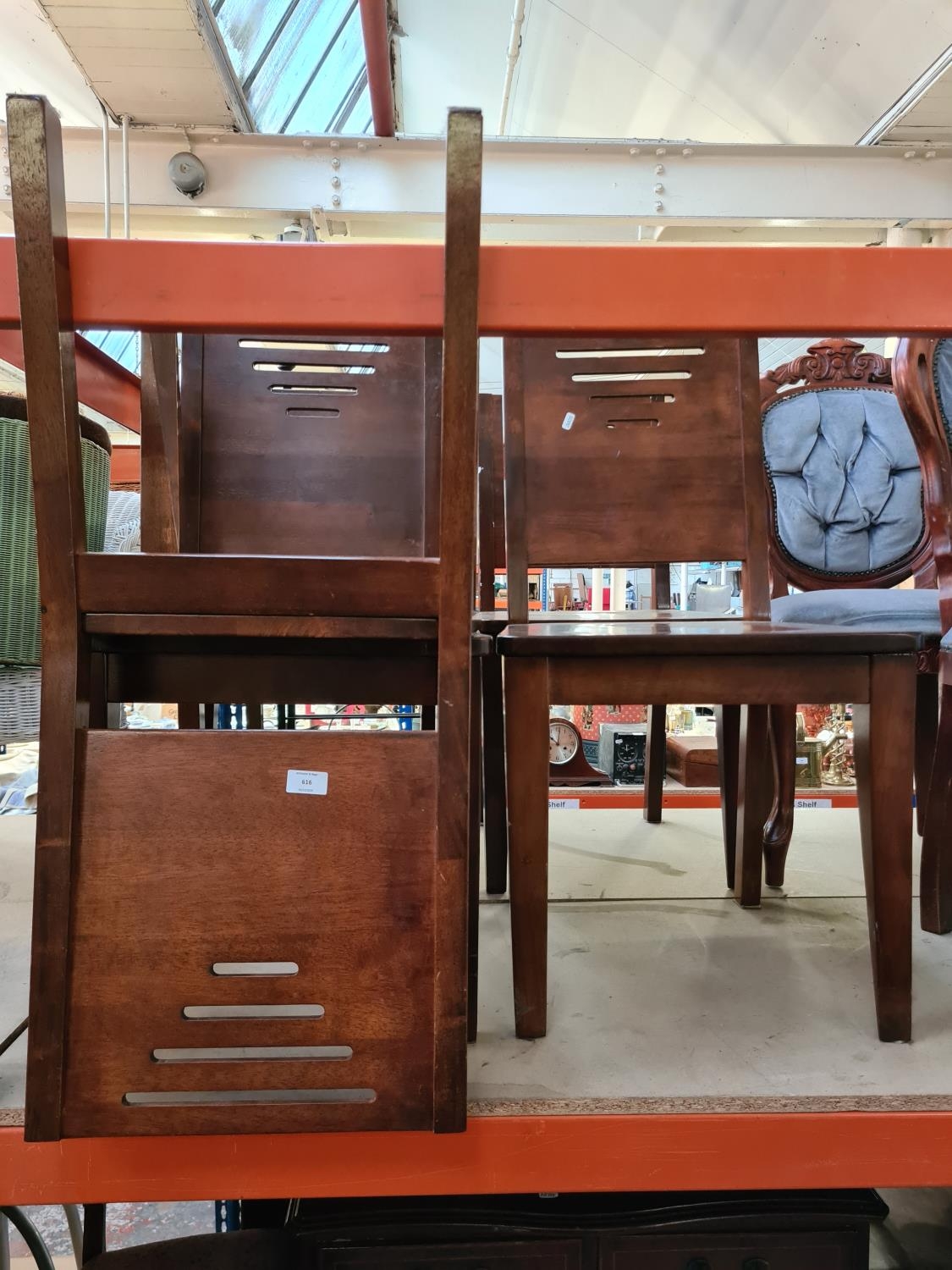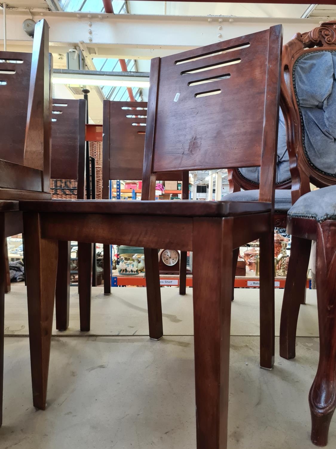 Five modern hardwood dining chairs
