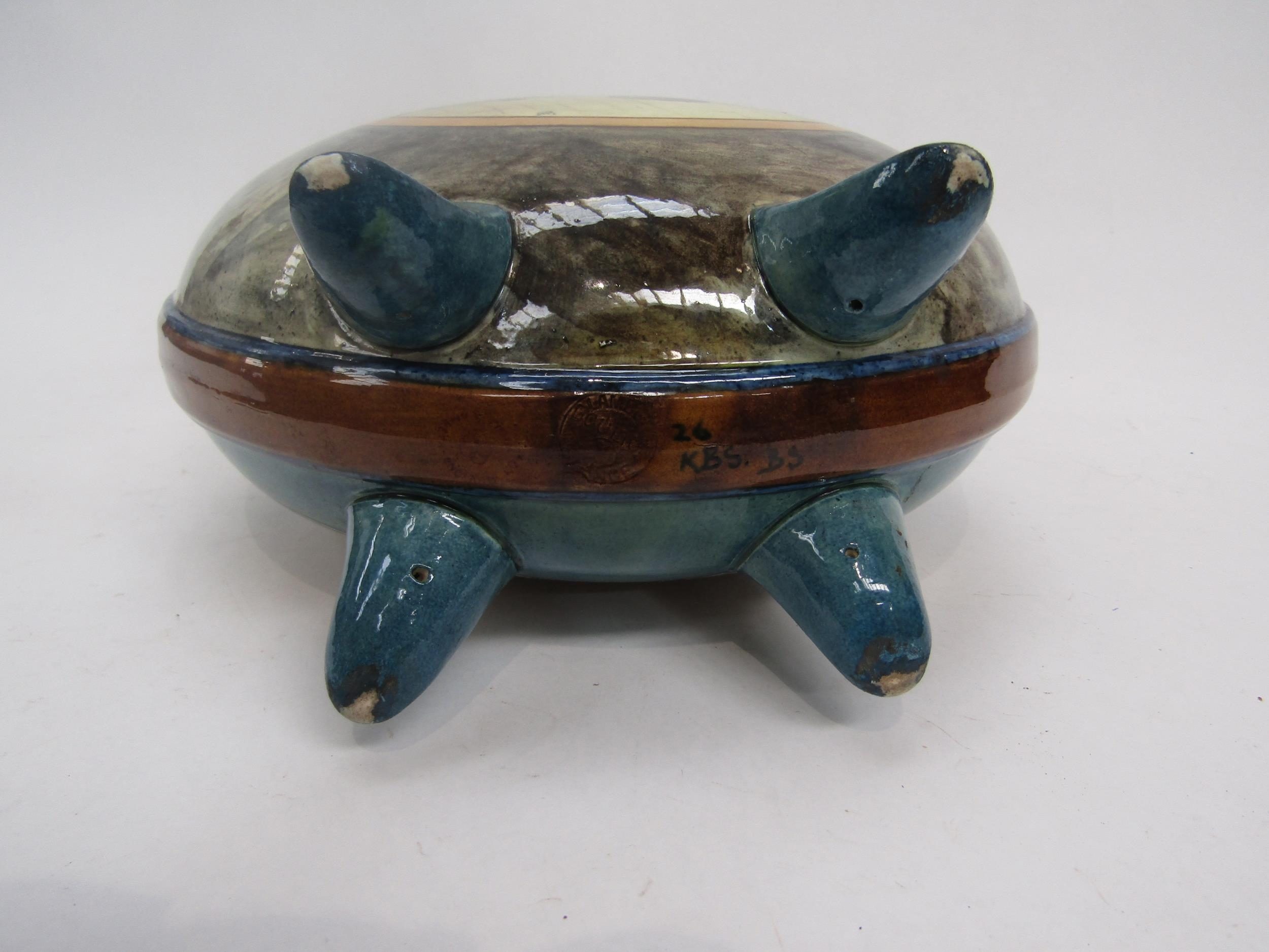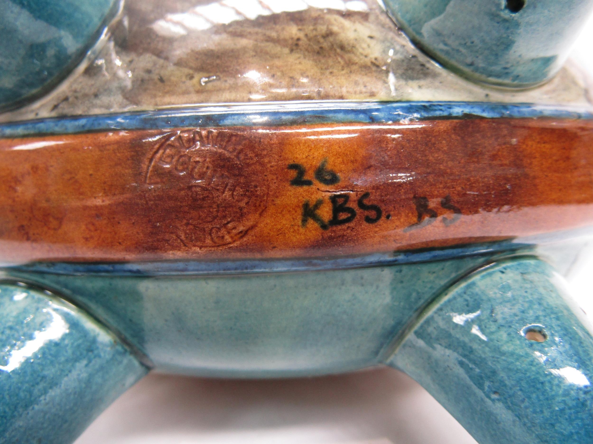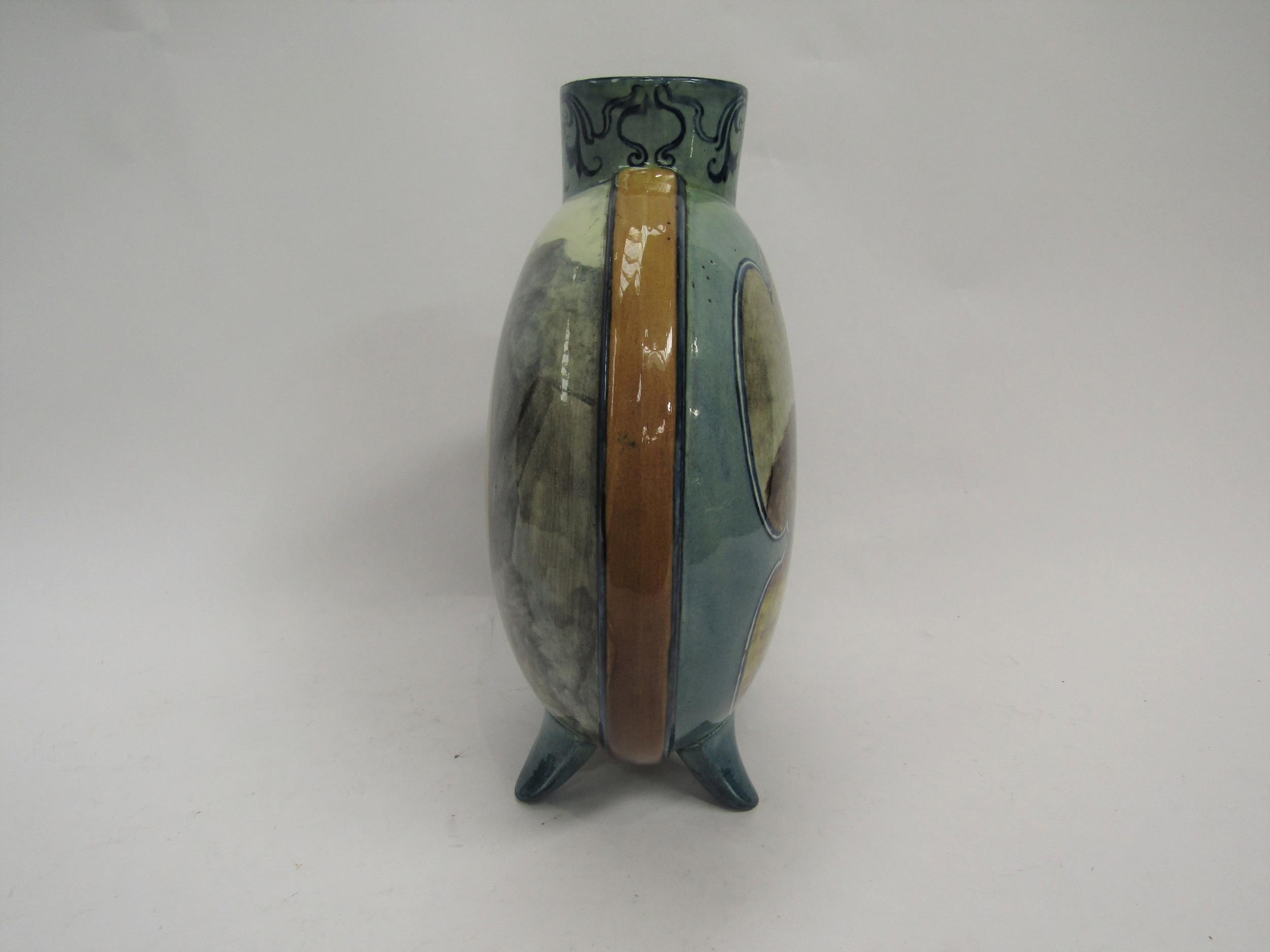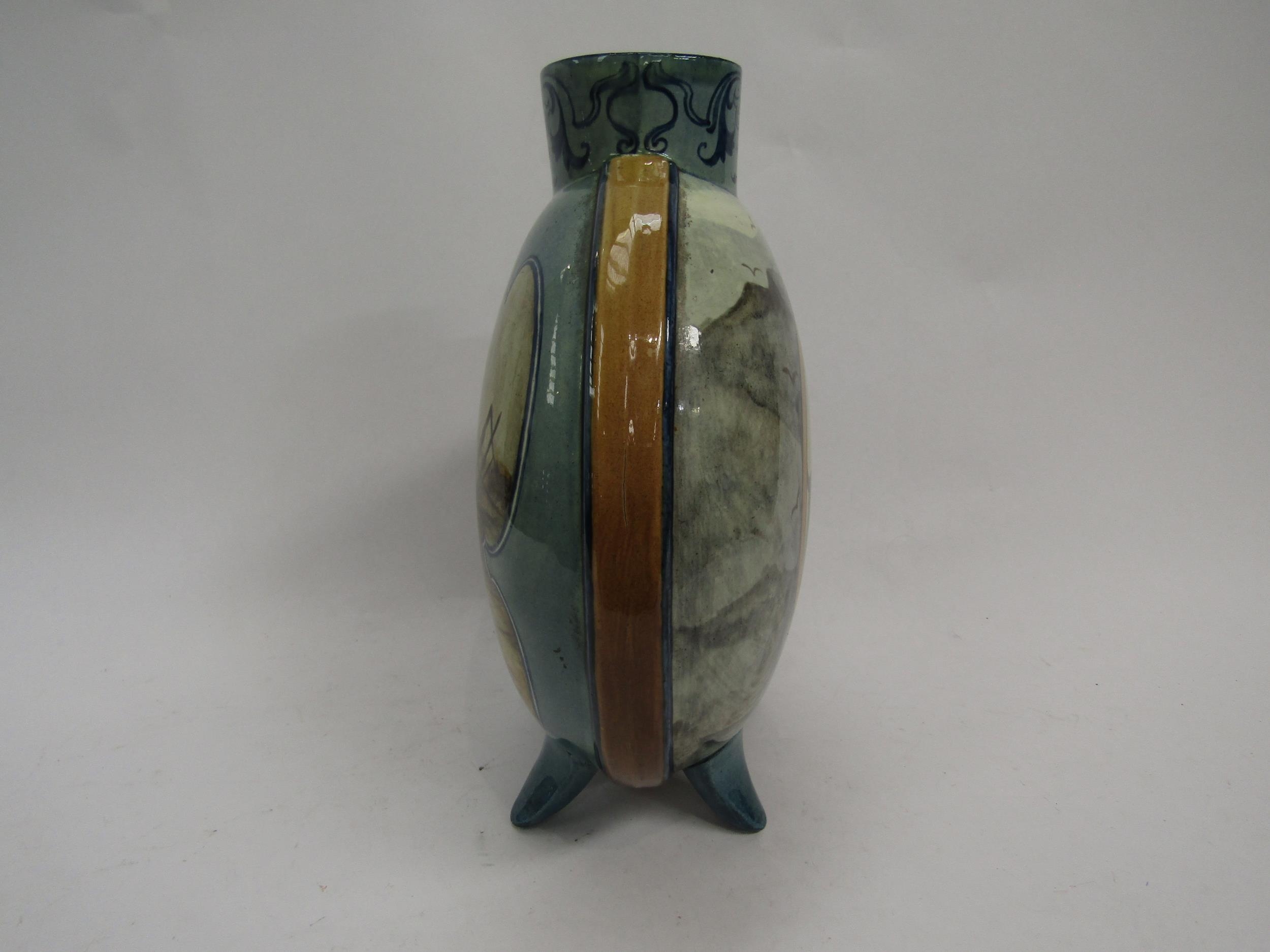 A Doulton Lambeth Hannah Barlow Faience moonflask, decorated with kittens to one side and a cat and dog to other, the painted panels monogrammed HBB. Painted monogram for Katherine Blake Smallfield to base, 34cm high