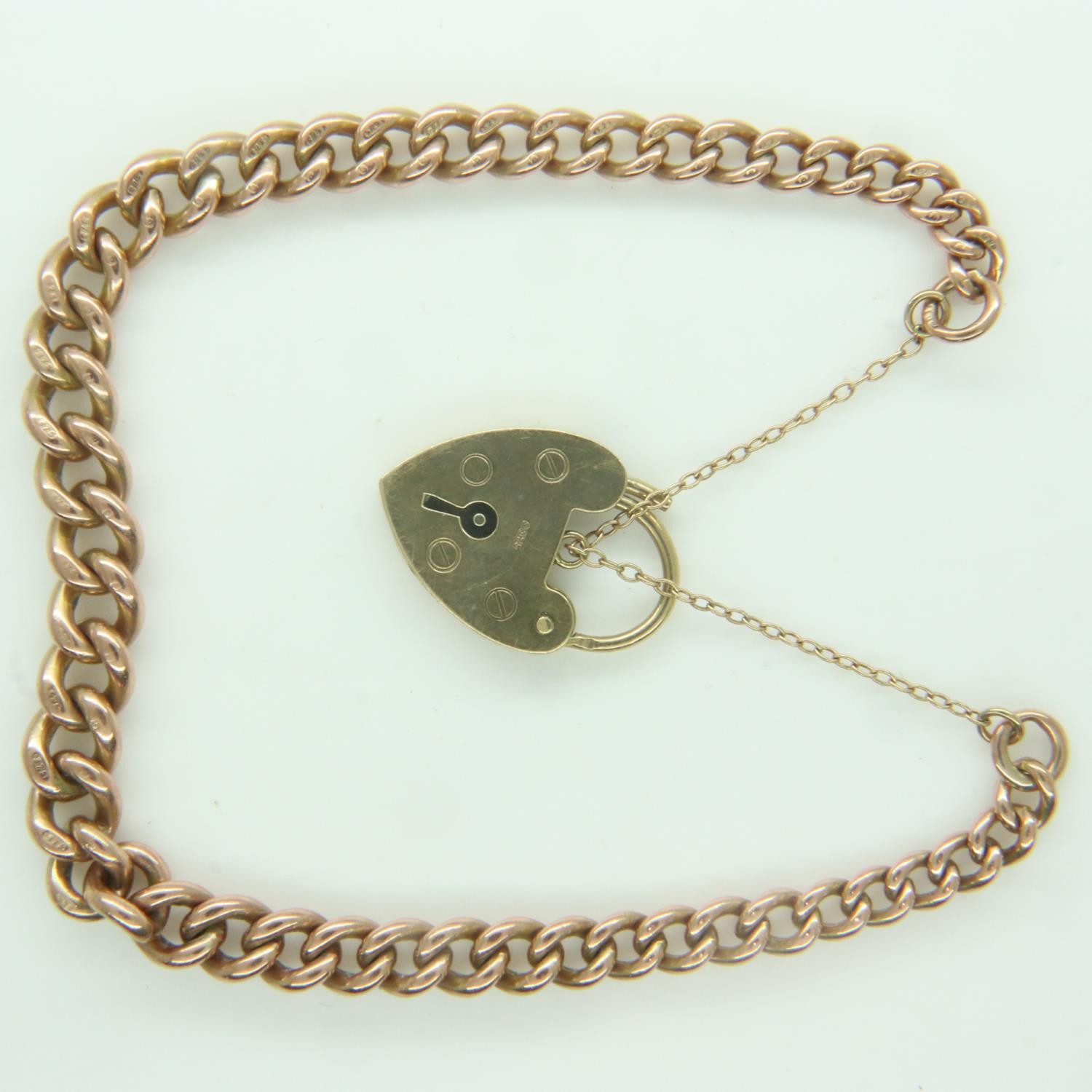 9ct gold bracelet, with padlock clasp and safety chain, 13.2g. P&P Group 0 (£6+VAT for the first lot and £1+VAT for subsequent lots)