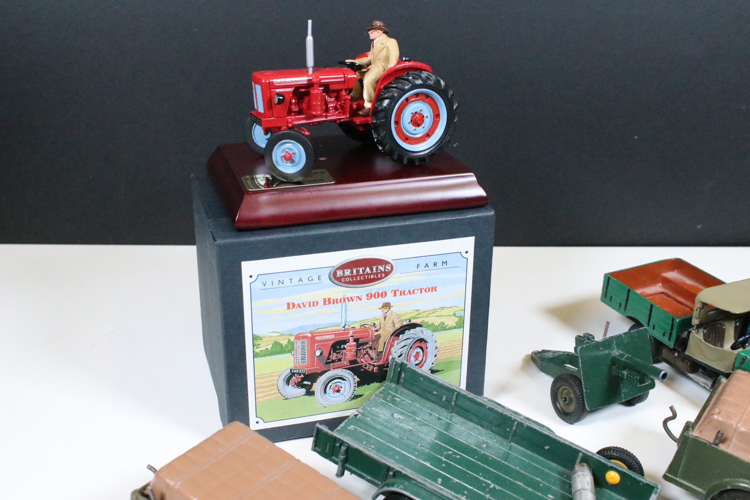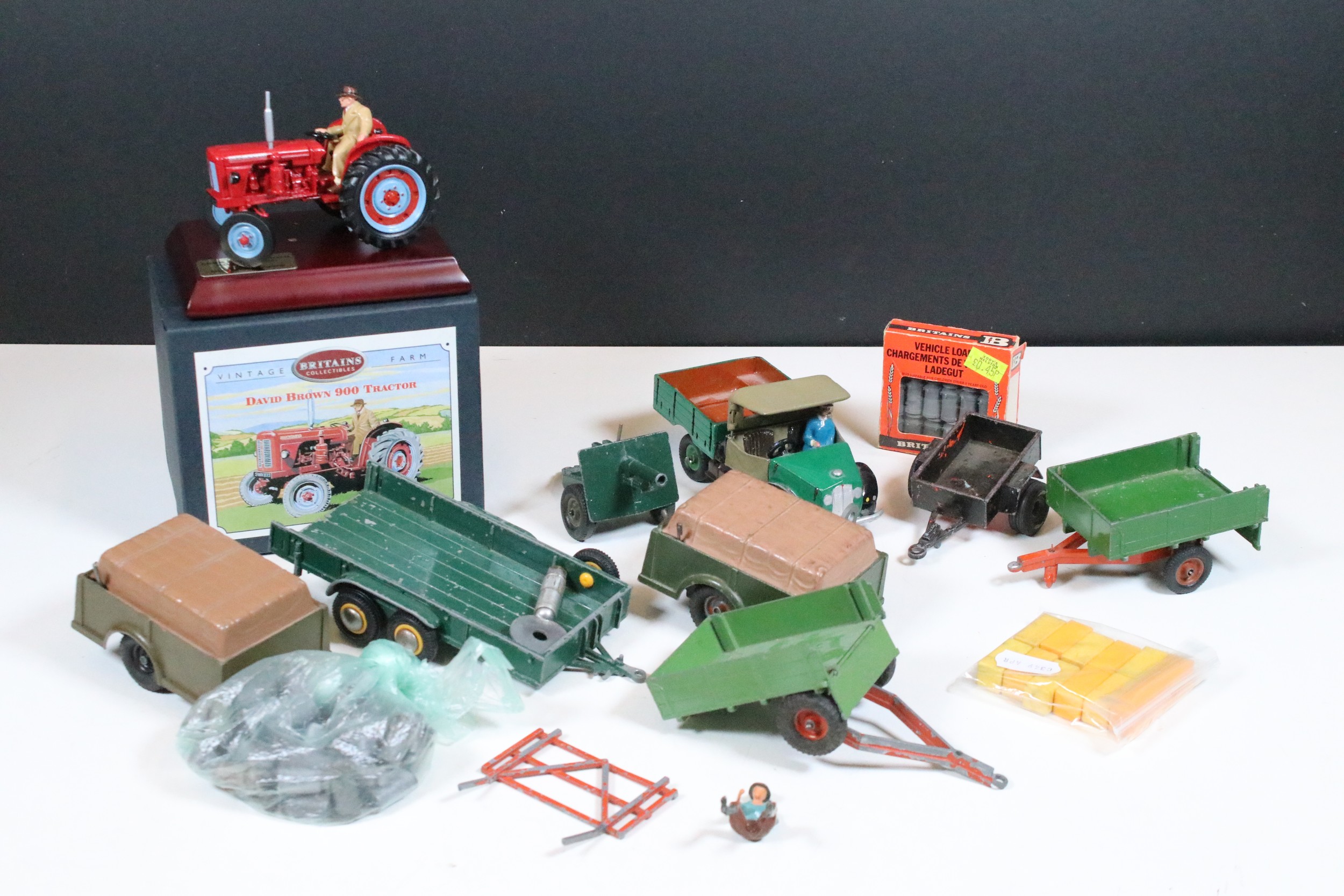 Collection of Britains farming related diecast models to include boxed Britains Collectibles David Brown 900 Tractor, 2 x 2041 Clockwork Trailer, boxed 1740 Vehicle Loads Milk Churns, etc