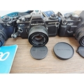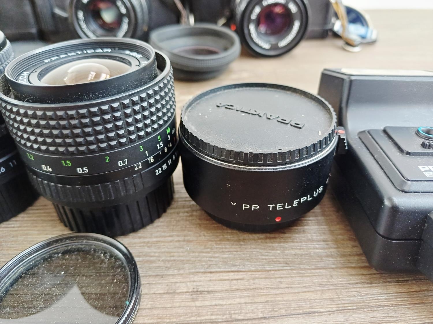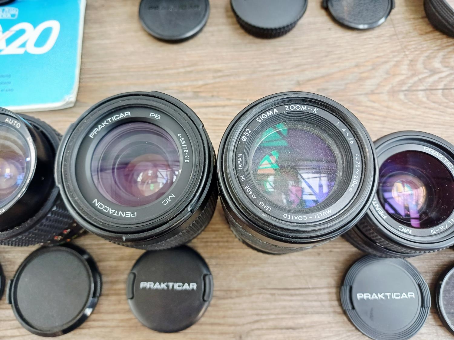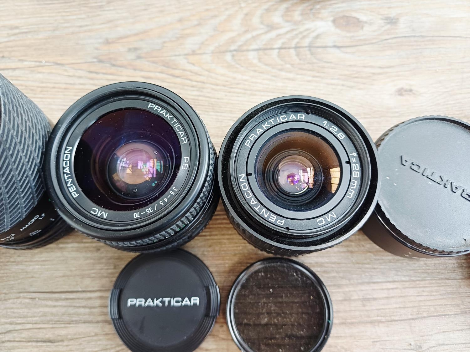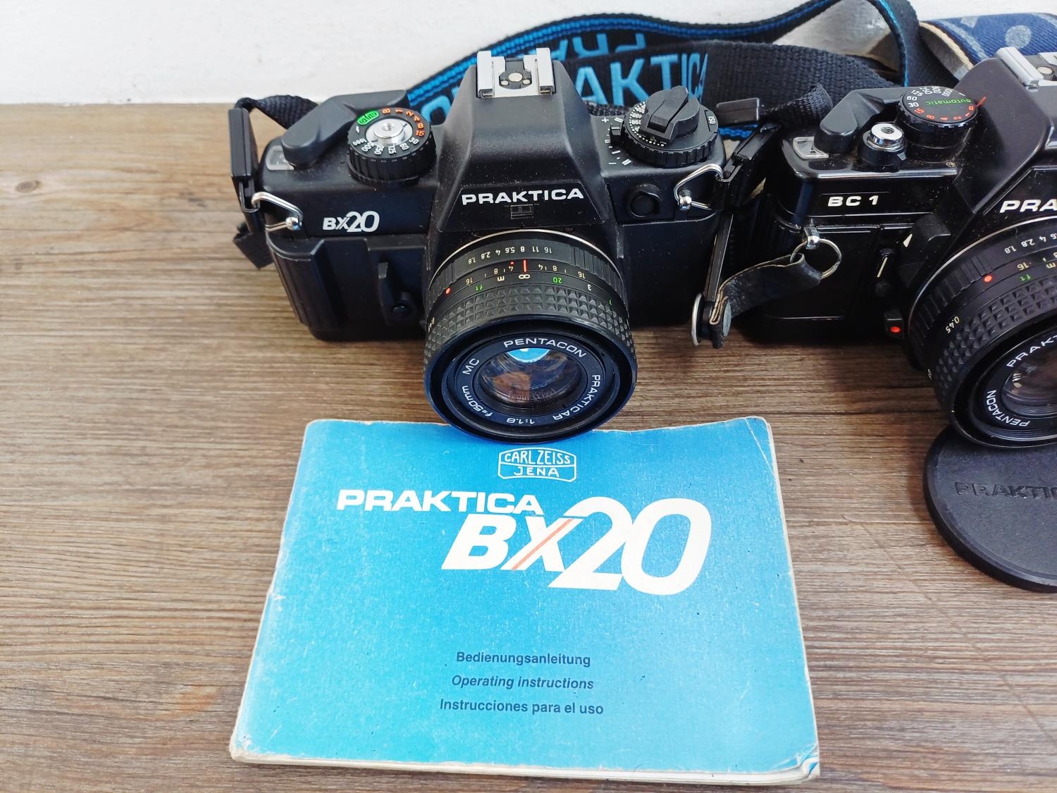 Four Praktica 35mm SLR cameras fitted with Prakticar MC 1:1.8 50mm lenses, two BX20 and two BC1 together with seven compatible lenses to include Prakticar MC 1:2.8 28mm, 1:3.5-4.5 35-70mm and 1:4-5.6 70-210mm etc.