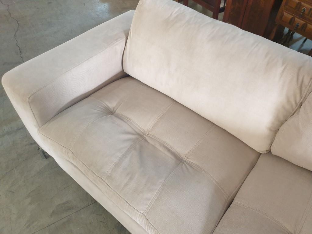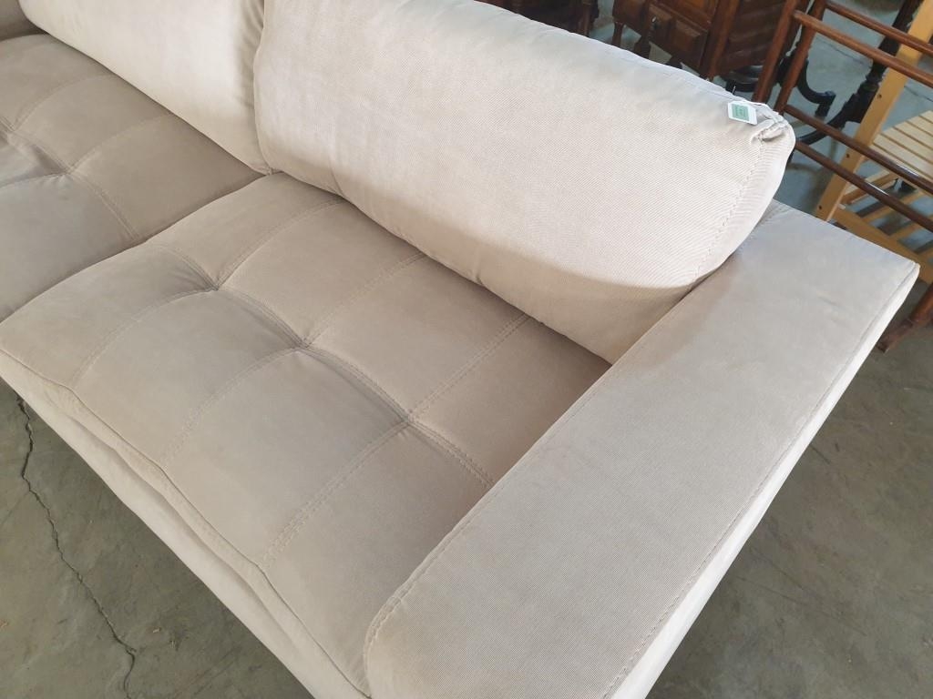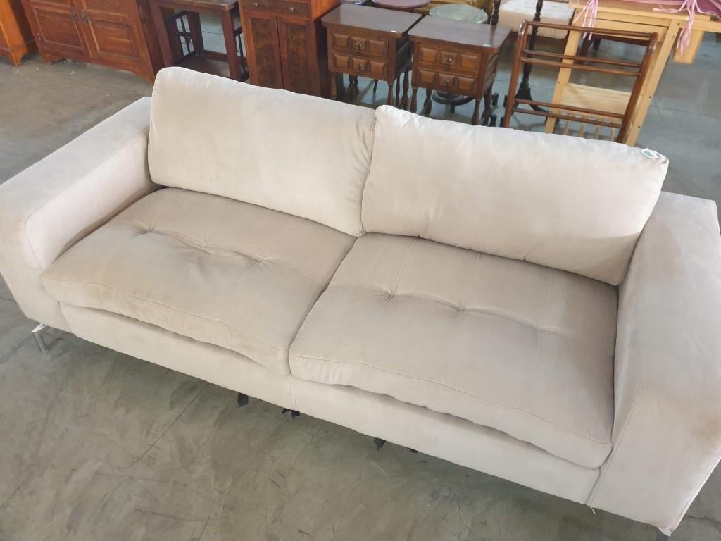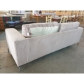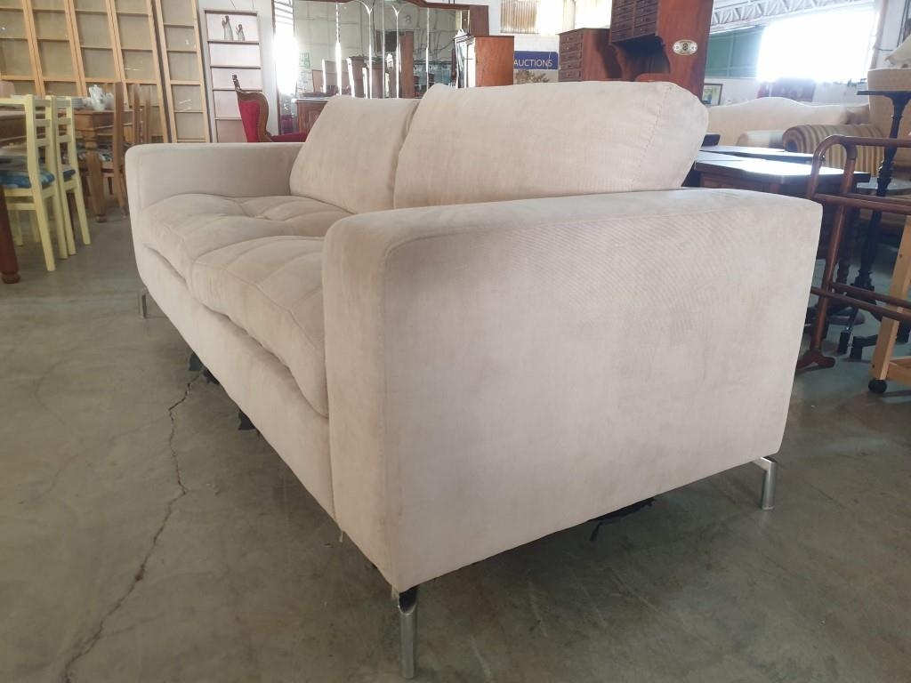 Modern Beige Fabric 3-Seater Sofa with Deep Cushions Over Chrome Legs (Approx. 228 x 93 x 68cm)