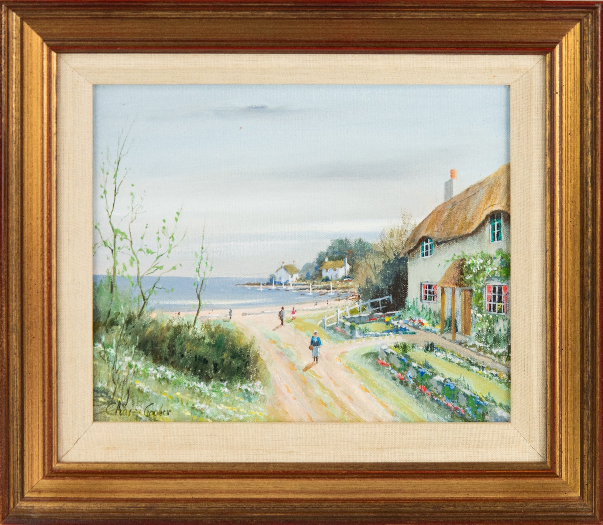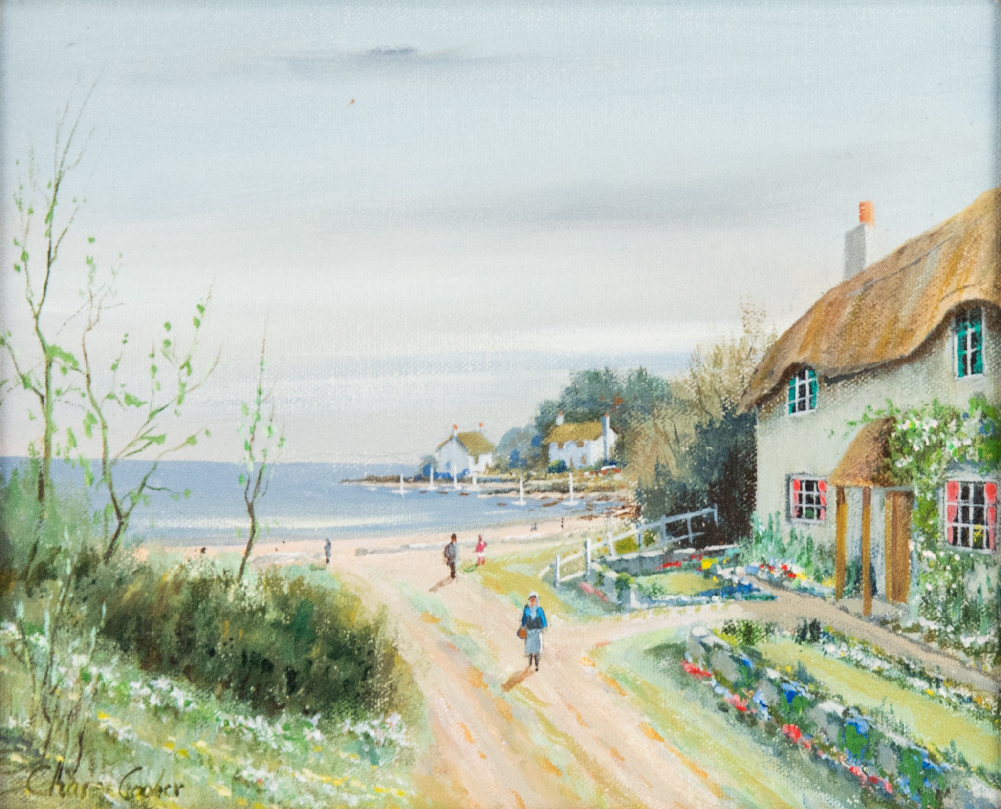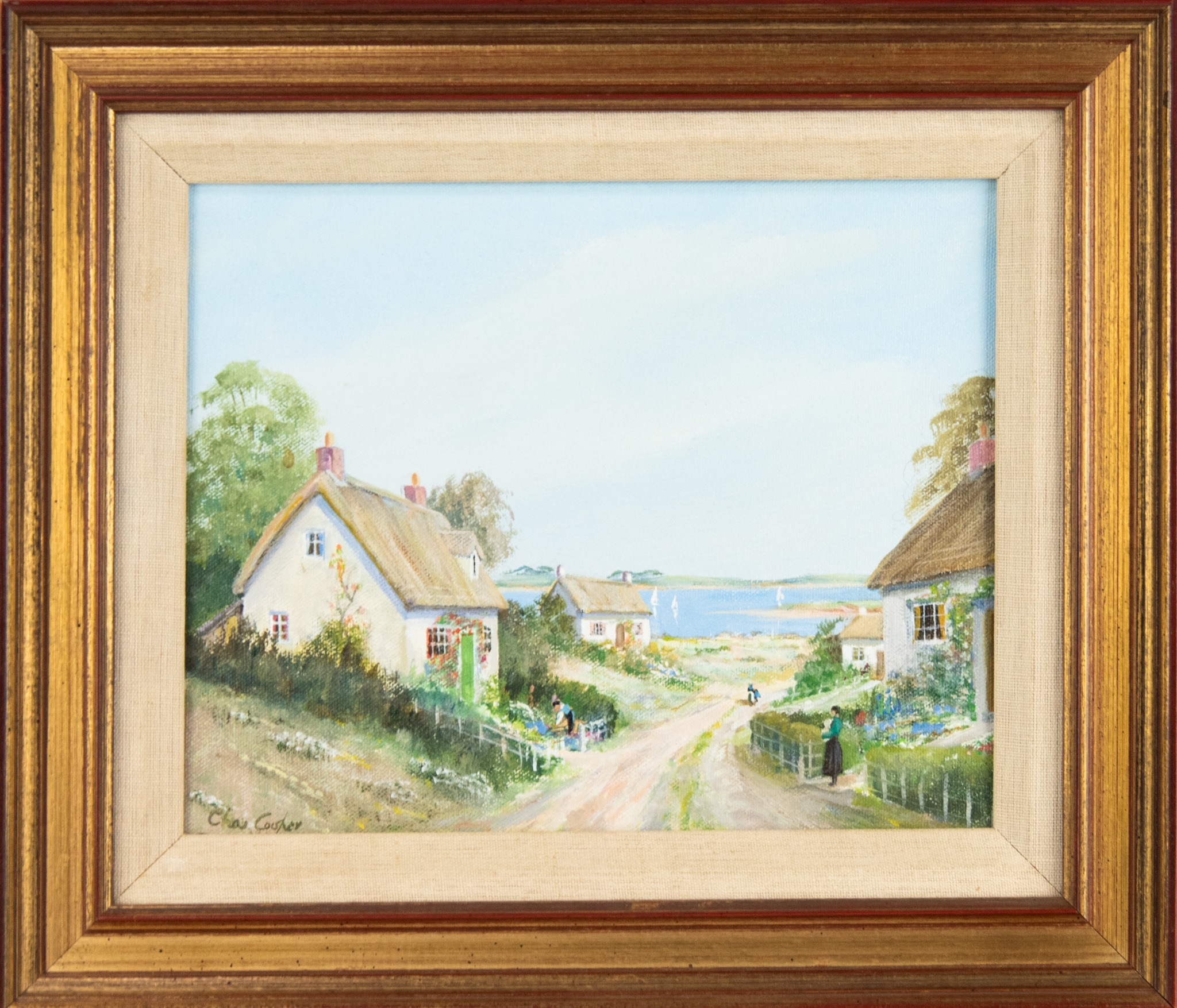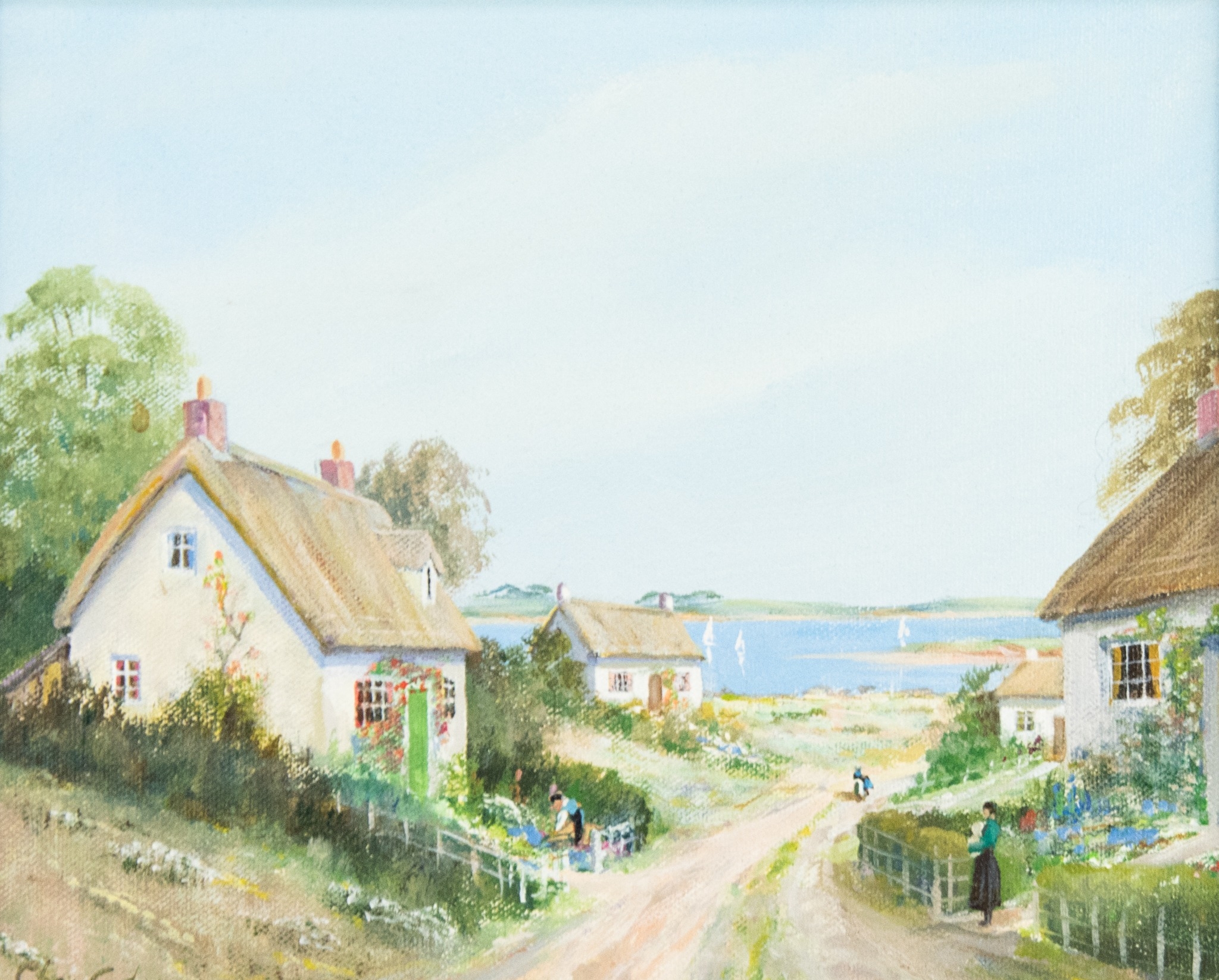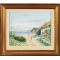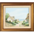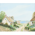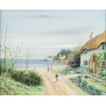 Coastal views with thatched cottages and figures
