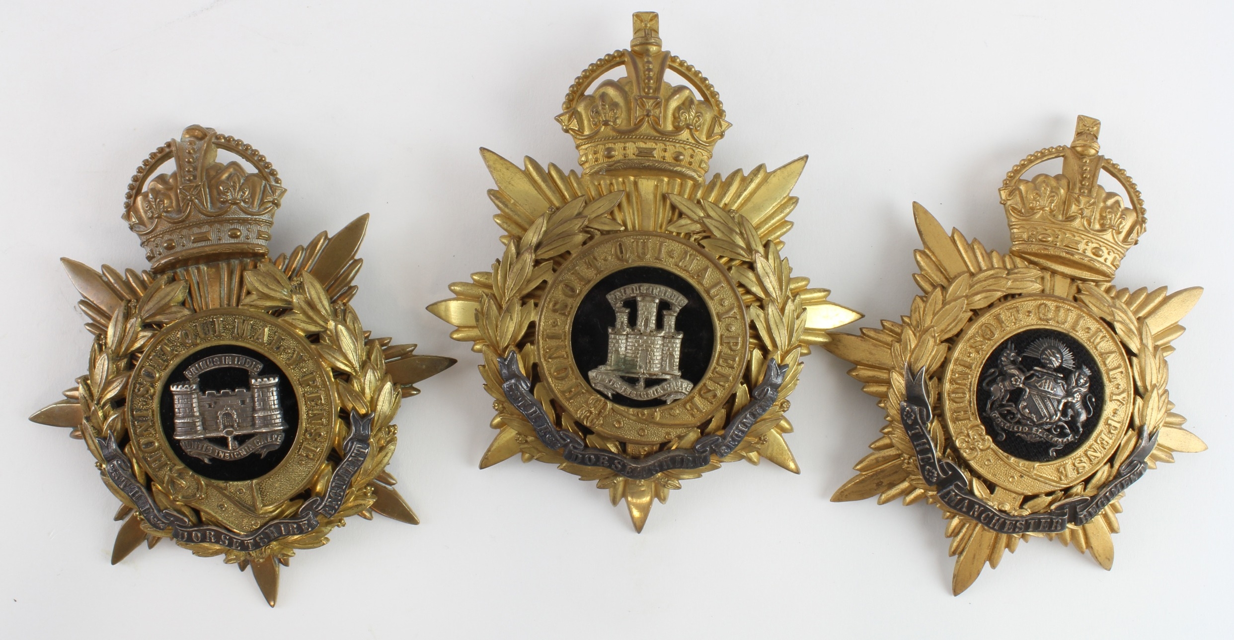 Helmet Plates - all KC, The Manchester Regiment, The Dorsetshire Regiment x2 different (3)