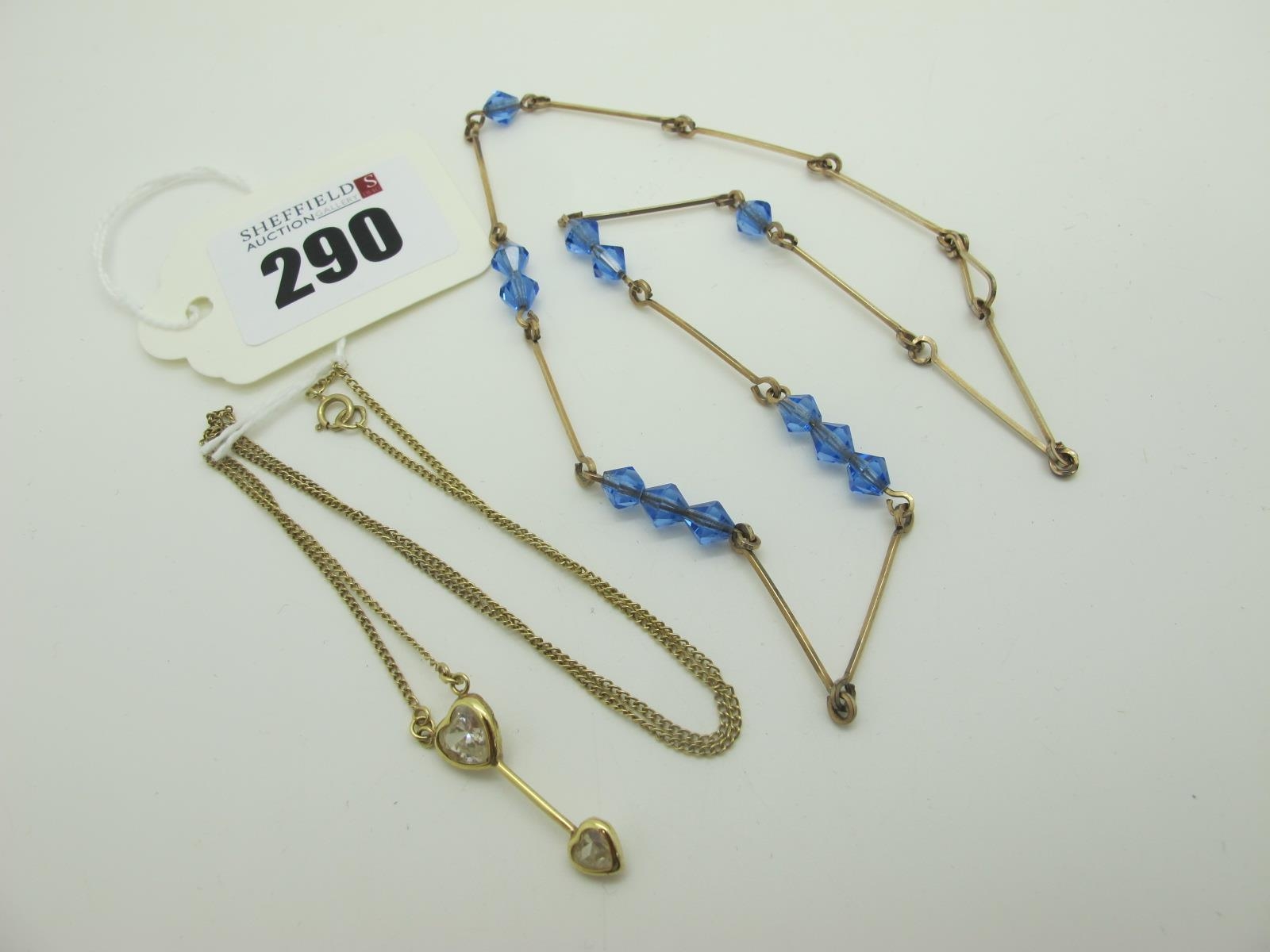 A Modern 9ct Gold Dainty Necklace, suspending heart drop; together with a vintage necklace. (2)