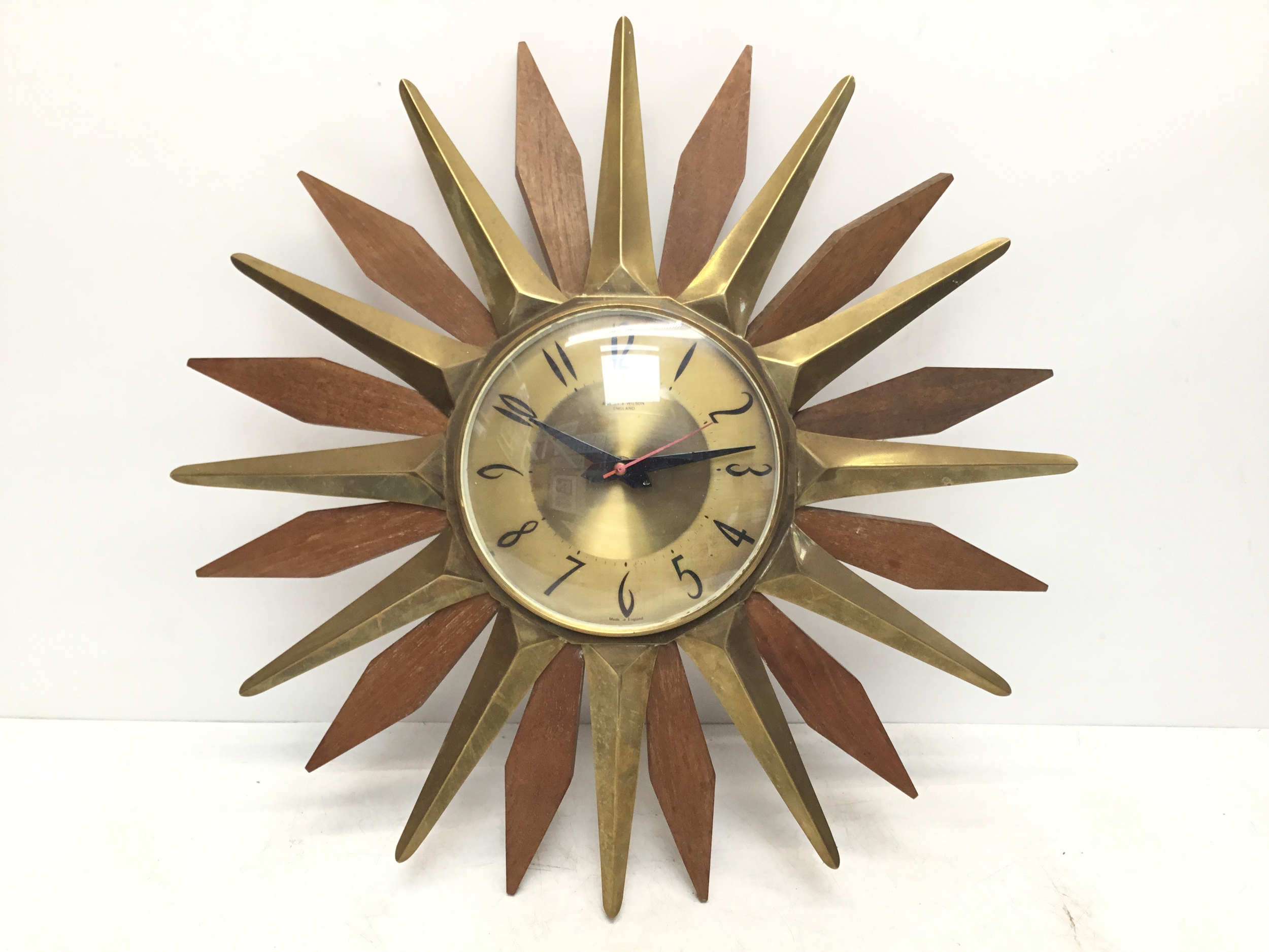 1970's Anstey & Wilson sunburst design wall clock, with Arabic numerals, 48cm in diameter