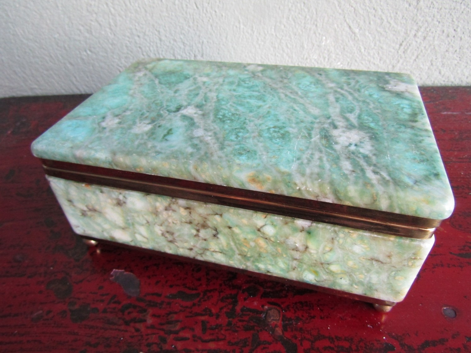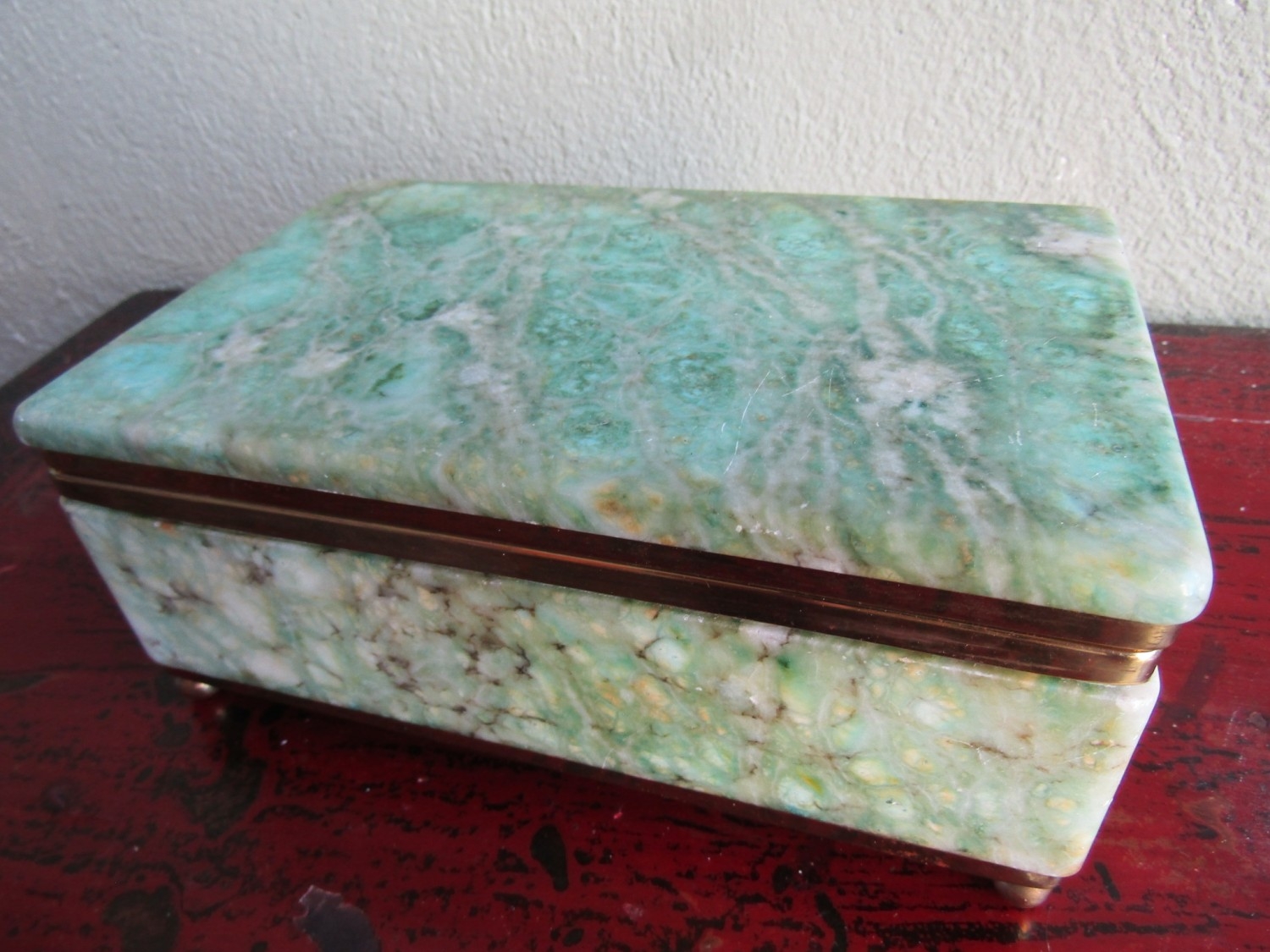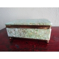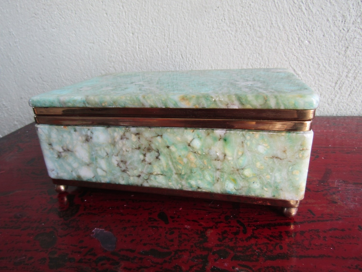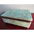 Vintage Agate Brass Bound Ladies Jewellery Box Rectangular Form Hinged Cover Approximately 10 Inches Wide x 5 Inches Deep